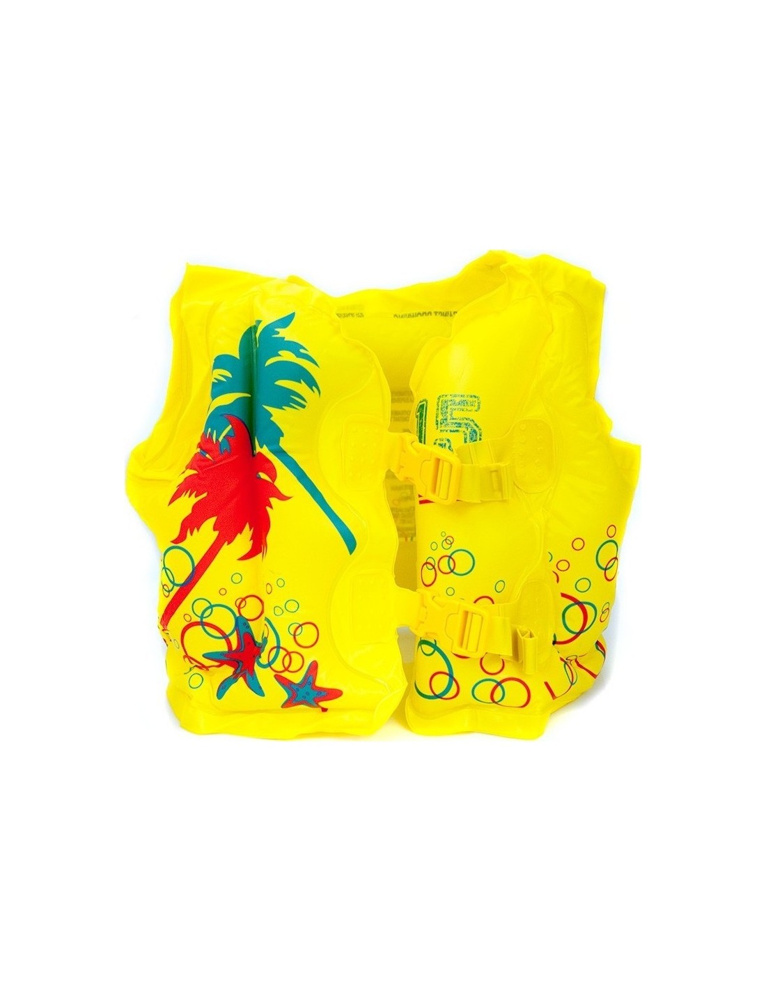 Doskonała kamizelka do pływania Tropical dla dzieci w wieku od 3 do 6 lat (waga ciała od 18 do 30 kg), która pozwoli im cieszyć się wodą bez obawy o zatonięcie. Łatwa do założenia kamizelka posiada 2 przednie regulowane, szybko zapinane klamry, które umożliwiają dostosowanie jej do potrzeb dziecka oraz nadmuchiwany kołnierz. Kamizelka Tropical zbudowana jest z trzech komór powietrznych (w tym kołnierz), wyposażonych w bezpieczne zawory i dwie przednie regulowane, szybko zapinane klamry. Do nadmuchiwania nie należy używać urządzeń na sprężone powietrze, należy regularnie sprawdzać szczelność. Aby uwolnić powietrze należy lekko ścisnąć i przytrzymać zawór. Uwaga: Zachowaj pudełko do dalszego użytku. Ostrzeżenie: Ta kamizelka nie jest urządzeniem ratunkowym, nie chroni w pełni przed utonięciem. Do stosowania w wodzie o głębokości do ramion dziecka. Podczas użytkowania nie zostawiaj dzieci bez opieki dorosłych. Nie stosować u dzieci poniżej 3 lat.