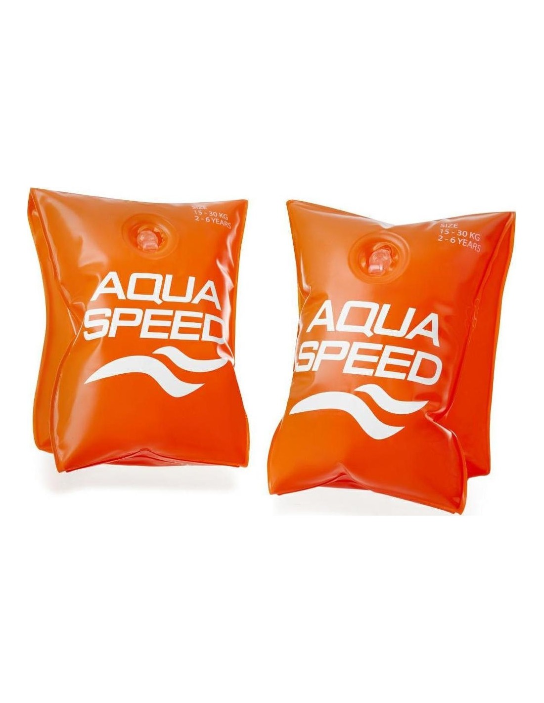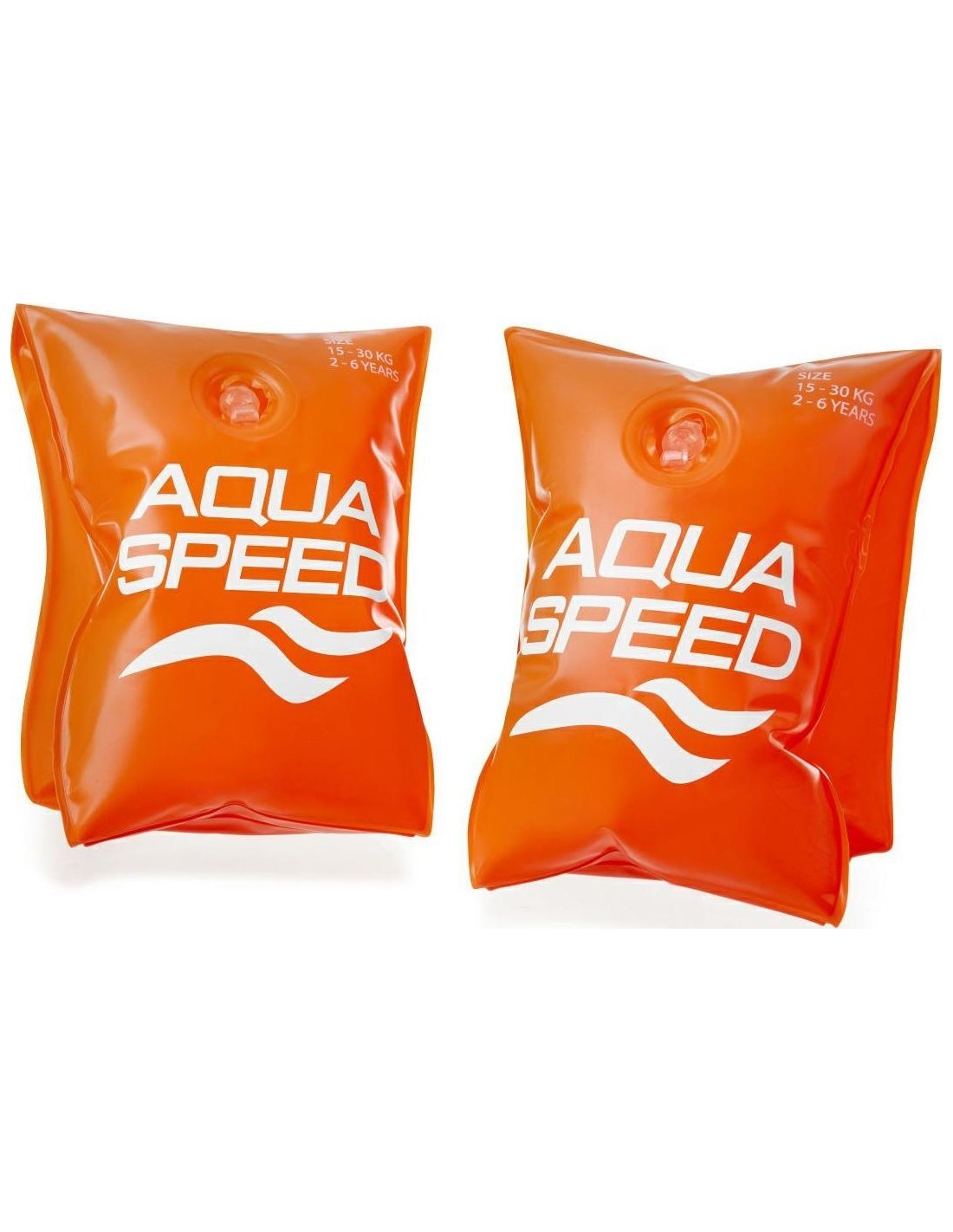 These classic swim armbands from Aquaspeed are made from premium heavy gauge PVC material which is durable and yet soft on the skin. Two air chambers provide good bouyancy. Flashy orange means parents will not loose sight of their child easily. These premium armbands will give children confidence in water while they are learning to swim. IMPORTANT INFORMATION Available in two sizes: Up to 2 years(15 kg max) Between 2 and 6 years (15 to 30 kg max).