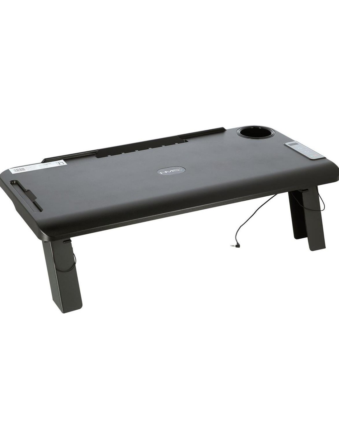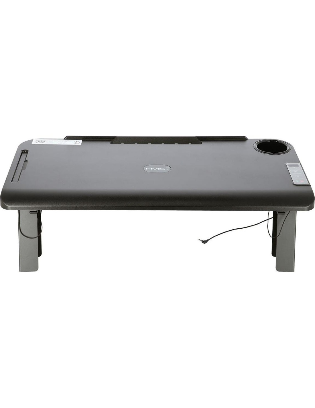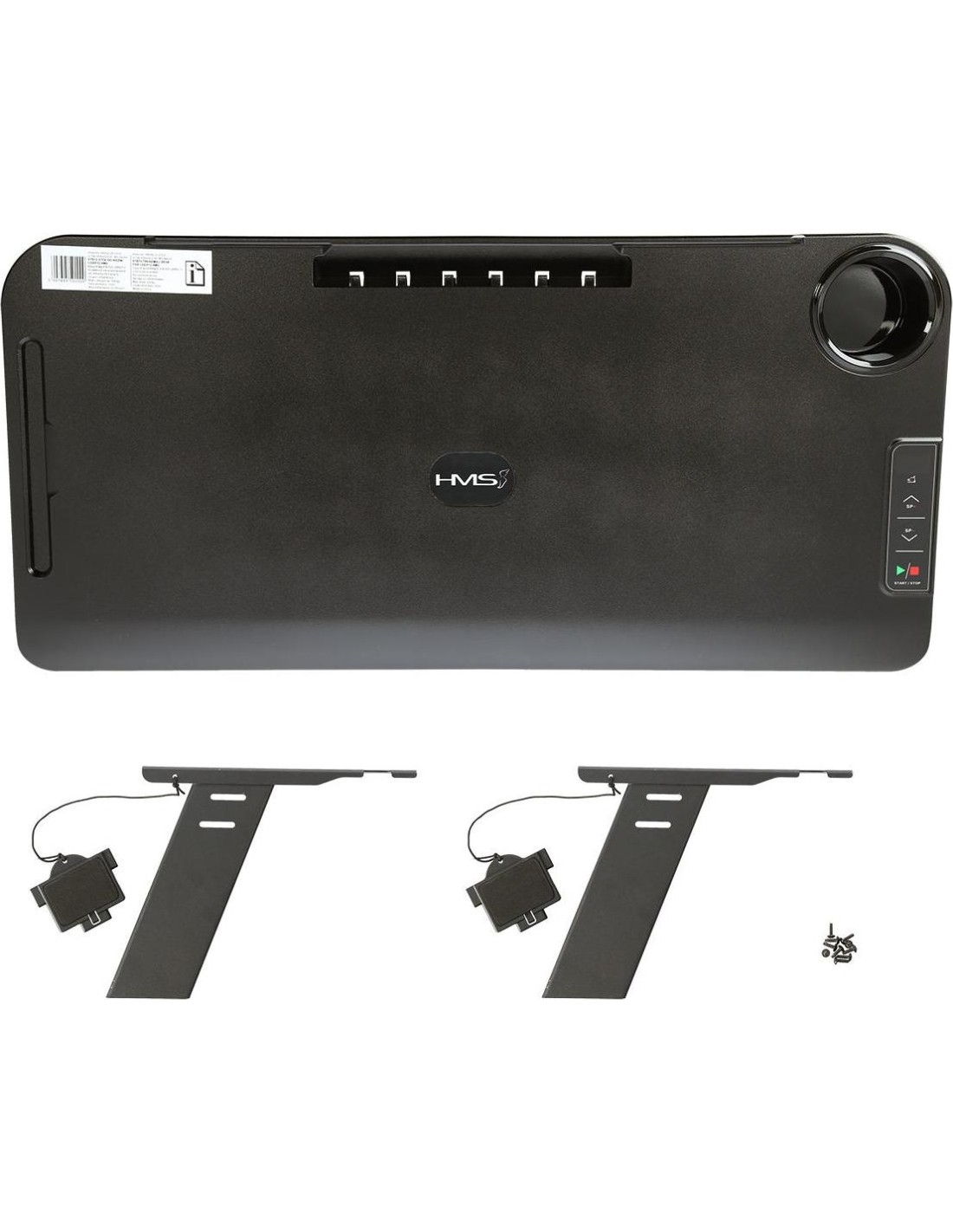 STB12 HMS, to stolik przystosowany do połączenia z bieżnią LOOP12 HMS. Dzięki stolikowi, połączenie pracy i aktywności fizycznej, teraz będzie możliwe. Podłączenie stolika, ogranicza prędkość bieżni do 6 km/h, a więc obsługa laptopa, w trakcie marszu nie będzie problemem. Na stoliku, znajduje się uchwyt na bidon lub kubek, jest również uchwyt na tablet. Dzięki specjalnemu panelowi sterowania, możemy w każdej chwili zwolnić lub wyłączyć bieżnie. Stolik łatwo zamontować, a podłączenie do bieżni, odbywa się przy pomocy jednego kabelka. Takie rozwiązanie, jest świetną alternatywą dla pracy za biurkiem. STB12 HMS, jest świetnym rozwiązaniem dla osób, które do tej pory nie znały sposobu, na połączenie pracy z treningiem. Specyfikacja: Materiał: stal, ABS Wymiary stolika: długość (mm): 405 szerokość (mm): 842 Waga produktu: 5,5 kg Uwagi: Nie przeznaczony do użytku komercyjnego Gwarancja 24 miesiące