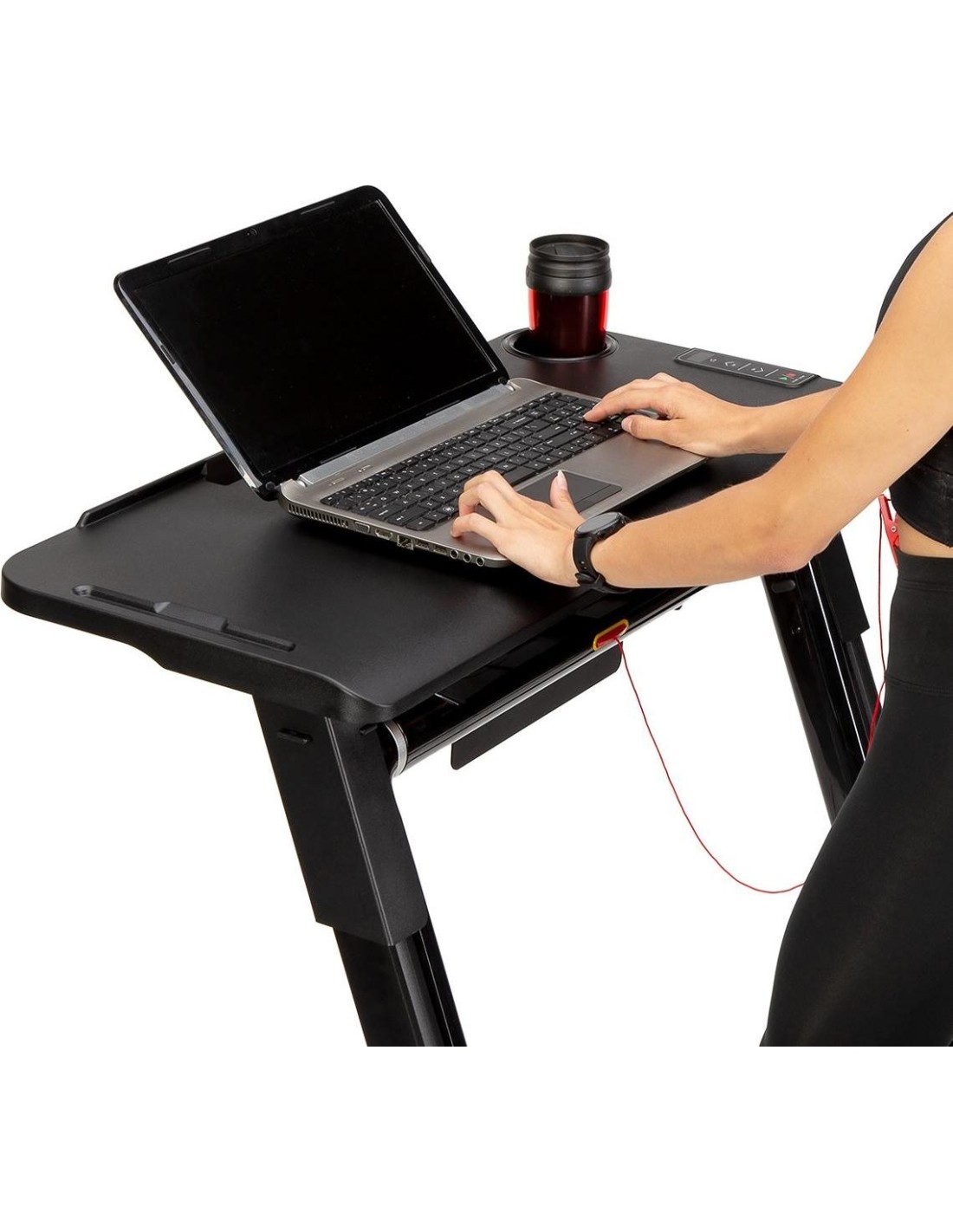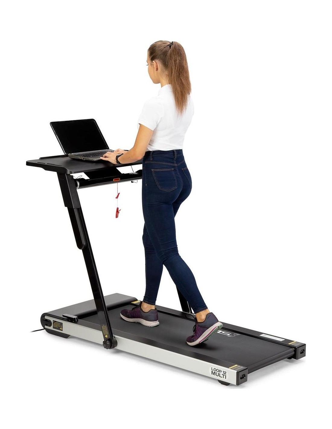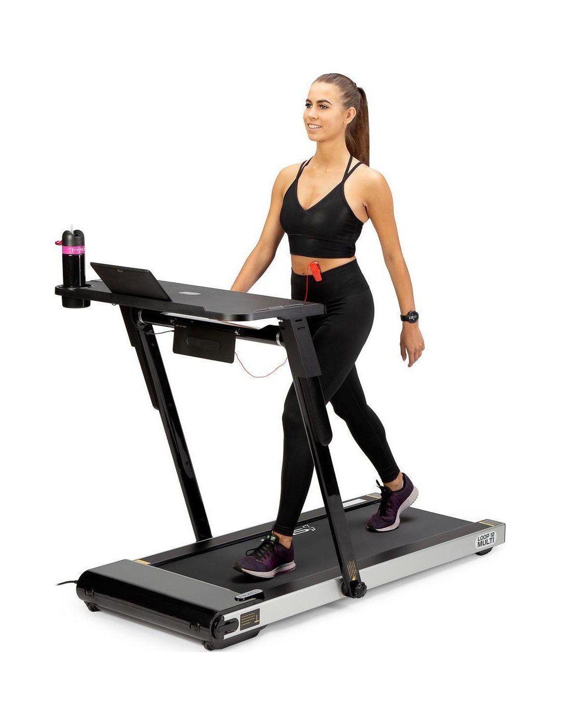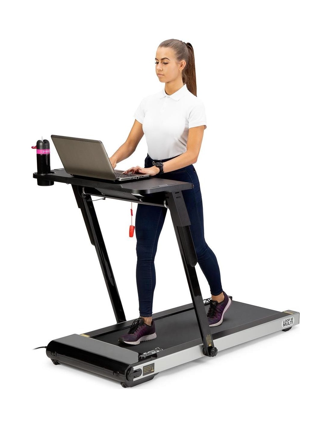 STB12 HMS, to stolik przystosowany do połączenia z bieżnią LOOP12 HMS. Dzięki stolikowi, połączenie pracy i aktywności fizycznej, teraz będzie możliwe. Podłączenie stolika, ogranicza prędkość bieżni do 6 km/h, a więc obsługa laptopa, w trakcie marszu nie będzie problemem. Na stoliku, znajduje się uchwyt na bidon lub kubek, jest również uchwyt na tablet. Dzięki specjalnemu panelowi sterowania, możemy w każdej chwili zwolnić lub wyłączyć bieżnie. Stolik łatwo zamontować, a podłączenie do bieżni, odbywa się przy pomocy jednego kabelka. Takie rozwiązanie, jest świetną alternatywą dla pracy za biurkiem. STB12 HMS, jest świetnym rozwiązaniem dla osób, które do tej pory nie znały sposobu, na połączenie pracy z treningiem. Specyfikacja: Materiał: stal, ABS Wymiary stolika: długość (mm): 405 szerokość (mm): 842 Waga produktu: 5,5 kg Uwagi: Nie przeznaczony do użytku komercyjnego Gwarancja 24 miesiące