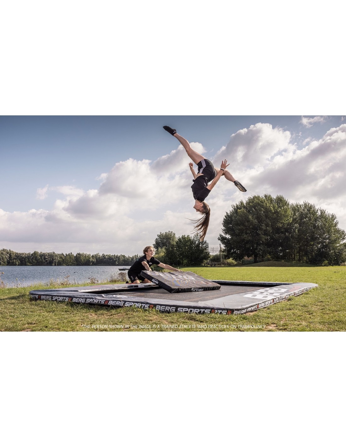 Skakanie na trampolinach to radosne doświadczenie, ale najważniejsze jest bezpieczeństwo. Z tego powodu BERG kładzie duży nacisk na testowanie swoich produktów. Wysokie i solidne siatki BERG gwarantują bezpieczne skakanie, nawet jeśli skacze się najwyżej, jak to możliwe. Wszystkie produkty BERG mają najwyższe międzynarodowe certyfikaty bezpieczeństwa. BERG przeprowadza niezależne testy TUV, Intertek i AiB Vincotte oraz testuje odporność materiałów na warunki pogodowe. Trampoliny są wyposażone w bardzo mocne maty do skakania (odporne na promieniowanie UV i przemakanie), umocowane na solidnych sprężynach. Krawędzie są idealnie dopasowane do maty, co zwiększa bezpieczeństwo i komfort skakania. Dzięki wzmocnieniu spawów ramy oraz zastosowaniu stalowych połączeń, konstrukcja jest jeszcze bardziej stabilna. Wszystkie metalowe elementy są ocynkowane wewnątrz i na zewnątrz, dzięki czemu nie rdzewieją.