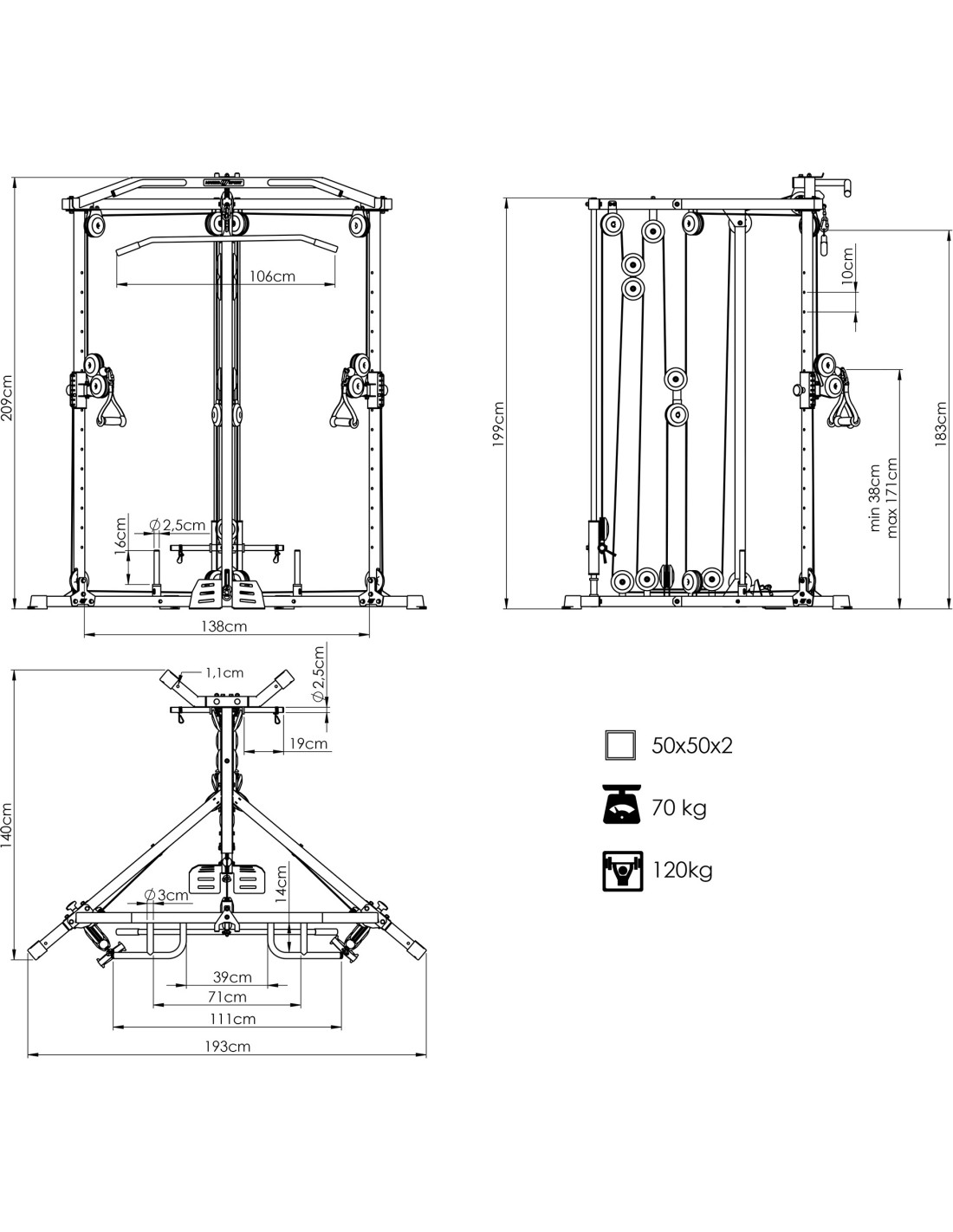 Brama na wolny ciężar z wyciągiem górnym i dolnym MS-W106 2.0 - Marbo Sport