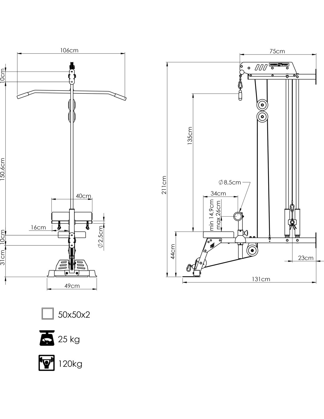 Wyciąg górny i dolny do ściany z siedziskiem i stopami MS-W104 2.0 - Marbo Sport