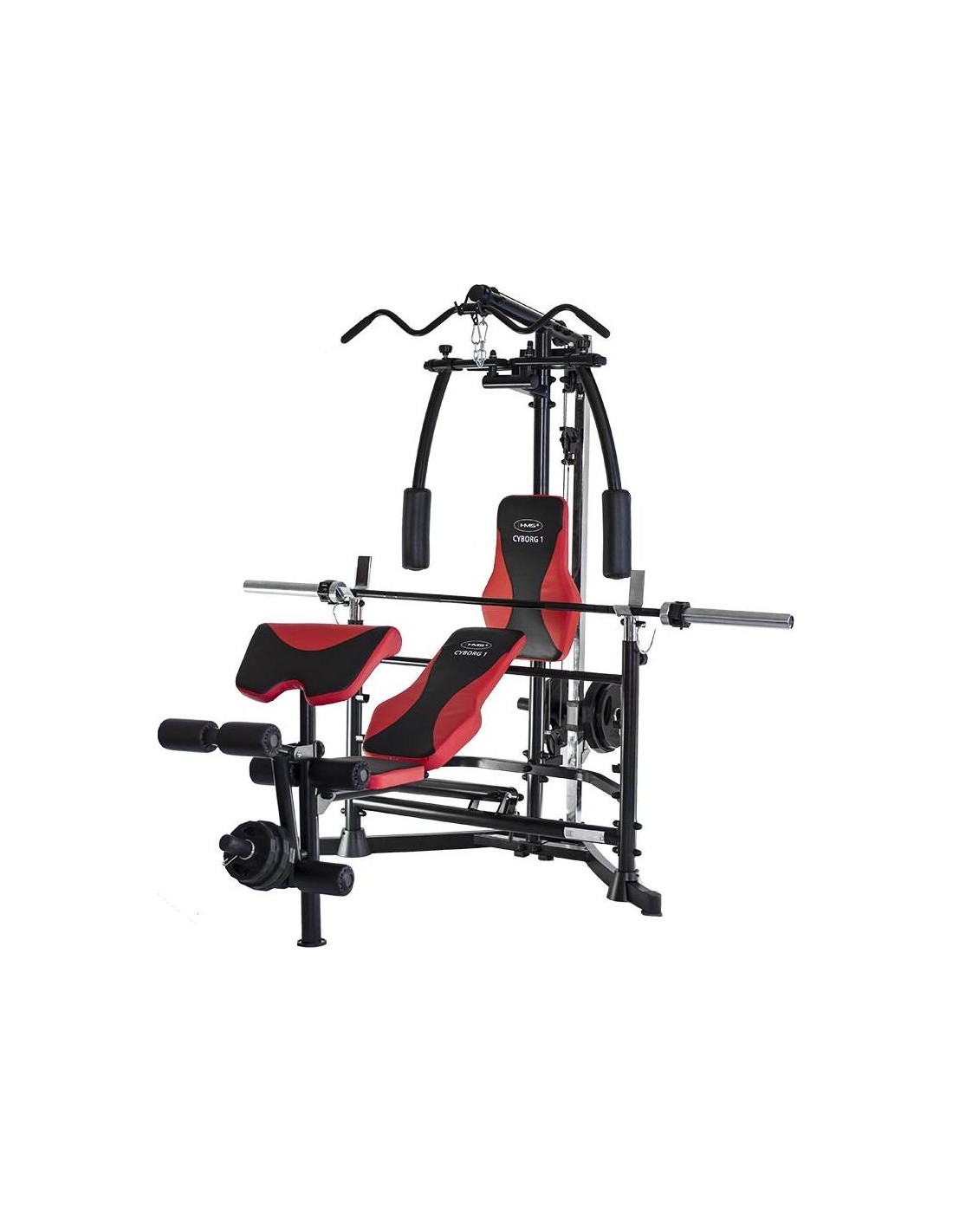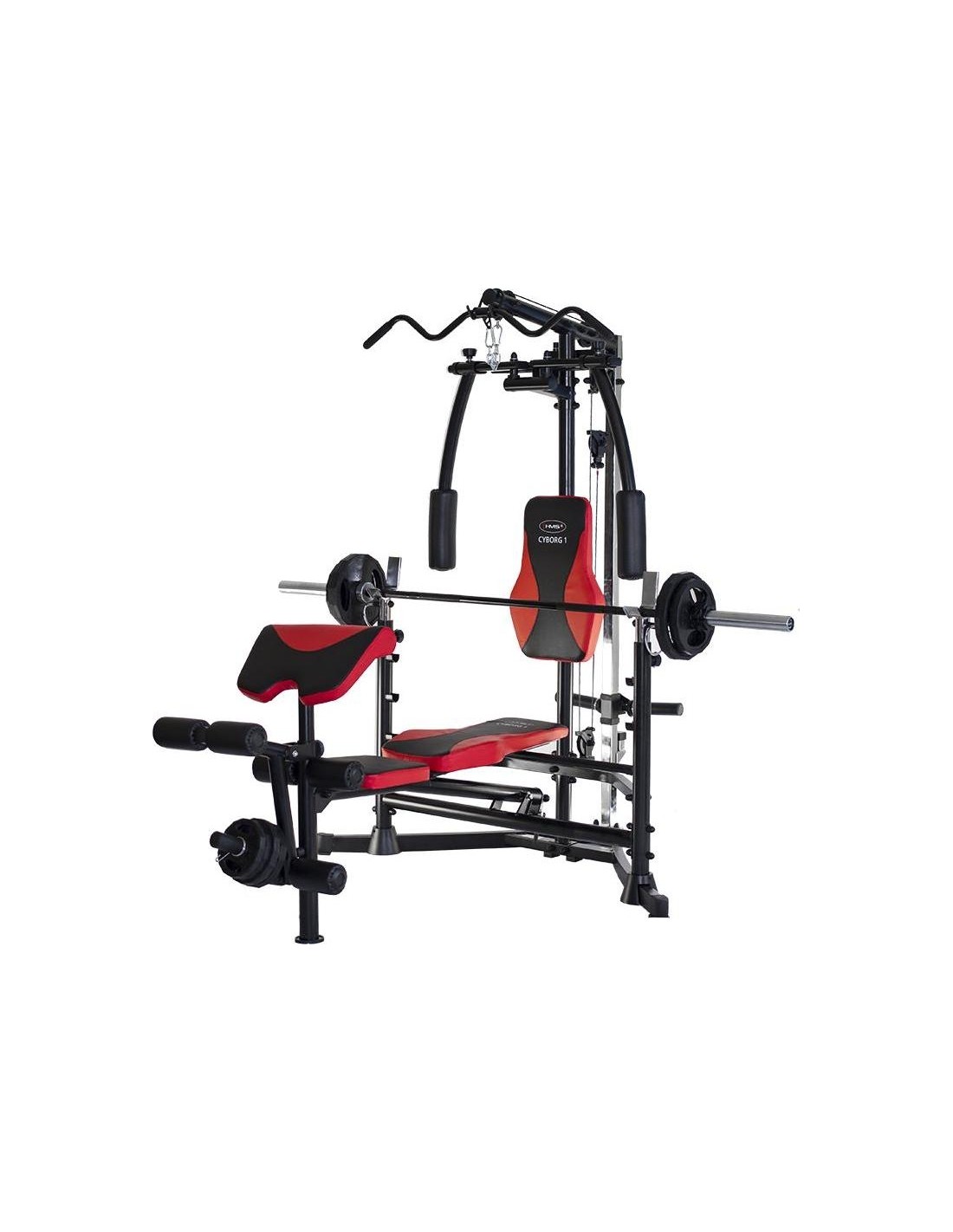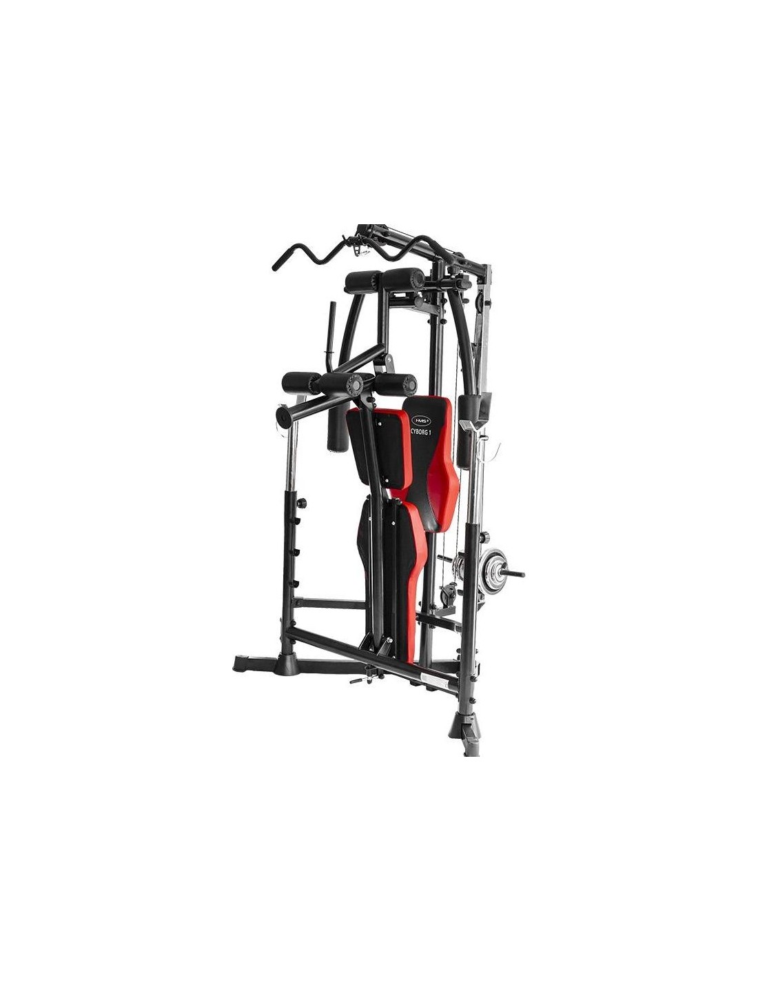 CYBORG 1 HMS to profesjonalny sprzęt do ćwiczeń w warunkach domowych. Jego cechą charakterystyczną jest możliwość używania talerzy olimpijskich lub zwykłych oraz obciążenia wewnętrznego, tzw. low weight. Kolejną zaletą siłowni marki HMS jest możliwość ustawienia ławki, dzięki czemu Cyborg 1 zajmuje mniej miejsca w pomieszczeniu. Produkt posiada również regulację wysokości położenia sztangi. Sprzęt oferuje możliwość zmiany pozycji ramion. CYBORG 1 zapewnia bezpieczne ćwiczenia różnych grup mięśniowych, takie jak w profesjonalnej siłowni. Ławka została przystosowana do tego, aby można było wykonywać lub nie ćwiczenia z podkładką pod ramiona. Siłownia została wykonana z wysokiej jakości materiałów, co gwarantuje dużą stabilność i bezpieczeństwo. Cyborg posiada wygodne siedzisko z 4-stopniową regulacją. Zastosowano wytrzymałą gąbkę oraz nowoczesną tapicerkę z karbonowym wzorem o podwyższonej trwałości. Dzięki temu trening staje się przyjemnością. Sprzęt pozwala na rozwój wszystkich grup mięśniowych: najszerszych grzbietu, piersiowych, trapezowych, posturalnych, pośladków, łokci, ramion, tricepsów i nóg. UWAGA: Drążek i obciążenie nie wchodzą w skład zestawu gimnastycznego.
