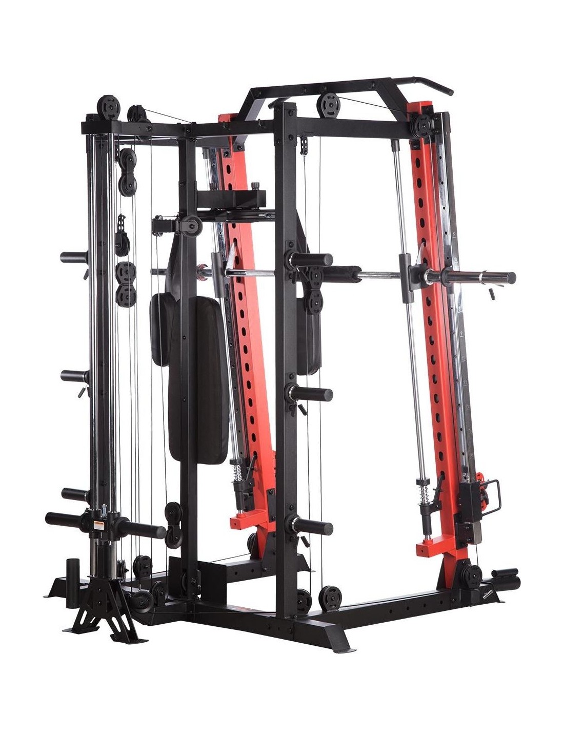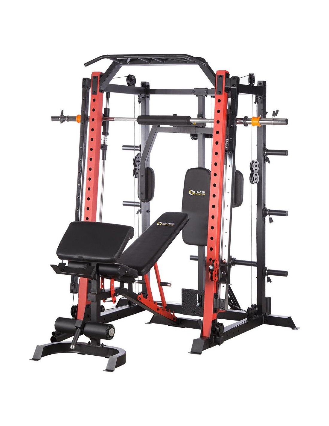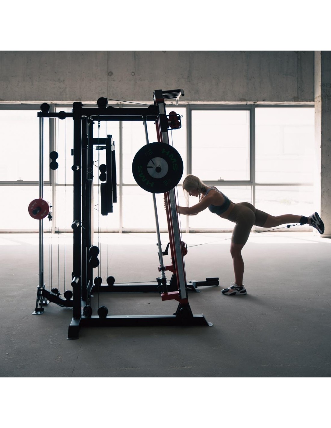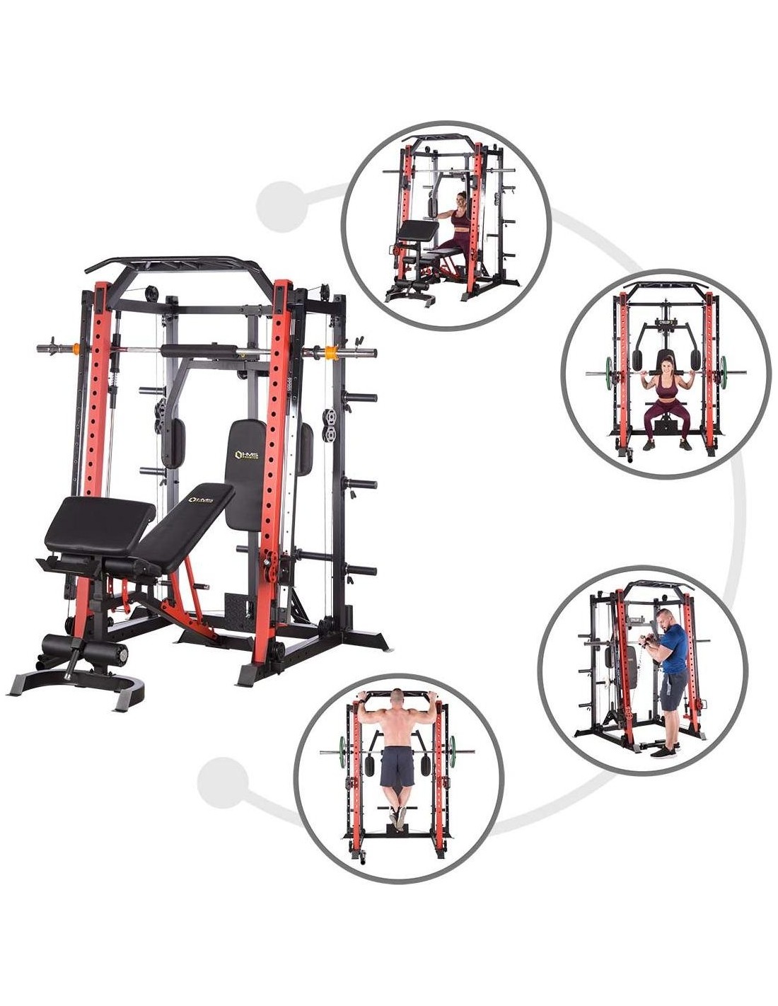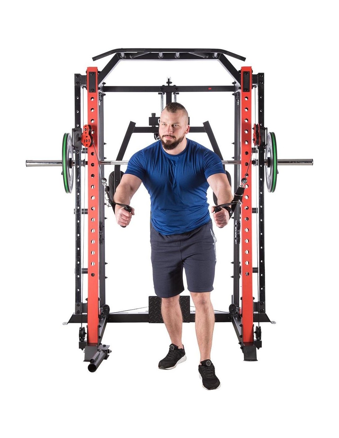 CYKLOP3 HMS, to suwnica klasy Semi Commercial, oznacza to, że idealnie sprawdzi się w małych klubach fitness, ale również do użytku domowego. Materiał najwyższej jakości CYKLOP3, to solidne urządzenie gwarantujące bezpieczny trening. Wytrzymałe grube profile, ze stali najlepszej jakości, zapewniają idealną stabilność sprzętu. Dopracowana pod każdym względem konstrukcja, pozwala łatwo i intuicyjnie korzystać ze sprzętu. Kompleksowy trening CYKLOP3, to nie tylko suwnica. To połączenie suwnicy, drążka do podciągania, butterflya, stojaka na sztangę oraz dwóch wyciągów z regulowaną wysokością. W zestawie z CYKLOPEM3 znajduje się również ławka, wyposażona w możliwość regulacji kąta nachylenia oparcia i siedziska oraz modlitewnik z uchwytem na sztangę. Zbierając wszystkie elementy w całość, otrzymujemy wszechstronny sprzęt, umożliwiający wykonanie ćwiczeń na wszystkie grupy mięśniowe. Efektywność treningu oraz jego możliwości zwiększą się za sprawą dołączonych do zestawu akcesoriów w postaci uchwytów do wyciągu, montowanych poręczy do dipów czy uchwytu landmine na sztangę. Komfort i wygoda Dobry trening to nie tylko solidny ale i wygodny sprzęt. CYKLOP3 posiada wiele udogodnień dla ćwiczącego, między innymi: ławka z regulacjami ustawień, szybka i prosta regulacja wysokości wyciągów czy łatwa blokada gryfu suwnicy. Do gryfu suwnicy została dołączona specjalna gąbka, która zabezpiecza ćwiczącego np. przy wykonywaniu przysiadów. Rękojeści drążka do podciągania są radełkowane dla zwiększenia przyczepności uchwytu. Miękkie oparcie ławki oraz butterflya, pozwoli na długi trening bez uczucia dyskomfortu. Do przechowywania talerzy obciążeniowych, użytkownik ma do dyspozycji funkcjonalnie usytuowane stojaki, a dla bezpieczeństwa do każdego stojaka przewidziany jest sprężynowy zacisk. CYKLOP3 HMS, to suwnica, która sprawdzi się w każdej domowej siłowni i w każdym małym klubie. Z pewnością spełni oczekiwania, wszystkich użytkowników. Specyfikacja: Wymiary produktu: długość: 173 cm szerokość: 159 cm, z gryfem 212 cm wysokość: 219 cm Gryf: długość: 212 cm średnica: 32 mm waga: 17,2 kg Ławka: Długość: 158 cm Szerokość: 66 cm Wysokość: 56,5 - 137 cm Regulacja nachylenia oparcia: 6 poziomów Regulacja nachylenia siedziska: 3 poziomy Regulacja wysokości modlitewnika: 5 poziomów, co 2,5 cm Oparcie: 86 x 30 x 5,5 cm Siedzisko: 43 x 43,5 x 5,5 cm Modlitewnik: 52 x 34,5 x 5,5 cm Butterfly: Oparcie: 67,5 x 31 x 5,5 cm Rozstaw ramion: 85 cm Oparcia na ramionach: 31 x 15 cm Drążek do podciągania: Rozstaw rękojeści: 93 / 67 / 40 / 12,5 Średnica rękojeści: 28 mm Długość jednego rękawa do obciążenia wyciągu: 22,5 cm Długość stojaków na talerze obciążeniowe: 19 cm Regulacja wysokości wyciągów: 15 poziomów Łożyska we wszystkich krążkach Rodzaj obciążenia: talerze obciążeniowe (nie są dołączone do zestawu) Uchwyty do zawieszenia wolnych ciężarów o średnicy 50 i 25 mm Prowadnice gryfu z mechanizmem bezpieczeństwa Regulacja napięcia linek Asekuracja: 15 stopni Podpory na sztangę Możliwość treningu z ławką Maksymalne obciążenie wyciągu: 135 kg, po 67,5 kg na każdy rękaw Wytrzymałość linek wyciągu: 900 kg Maksymalna waga użytkownika: 150 kg Maksymalne obciążenie ławki: 270 kg Waga produktu: netto: 260,5 kg Przyrządy do ćwiczeń: Suwnica Smitha Dwa wyciągi z regulowaną wysokością Drążek do podciągania Butterfly Ławka Uwagi: Gwarancja 12 miesięcy w przypadku użytku komercyjnego Gwarancja 24 miesiące w przypadku użytku domowego