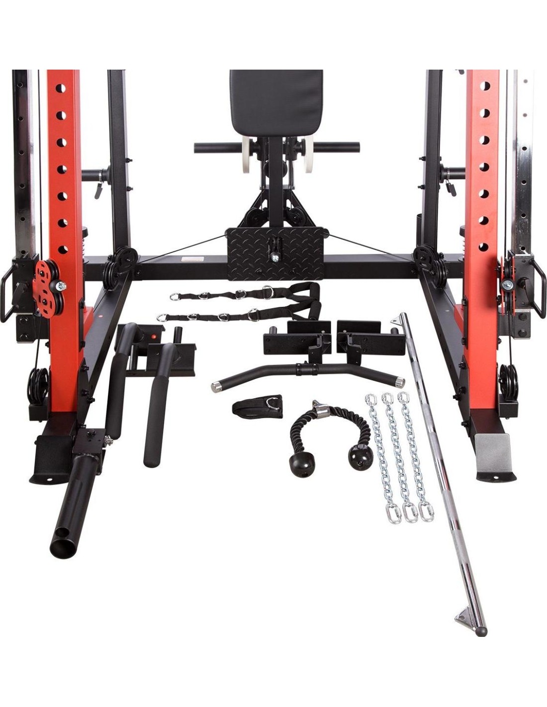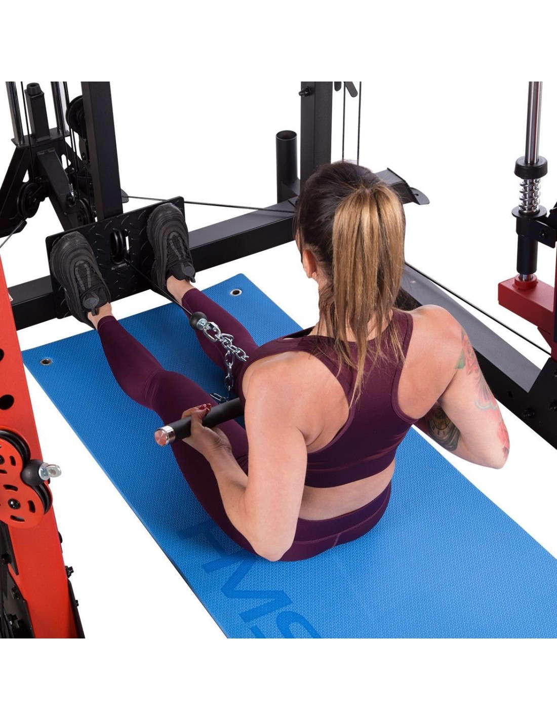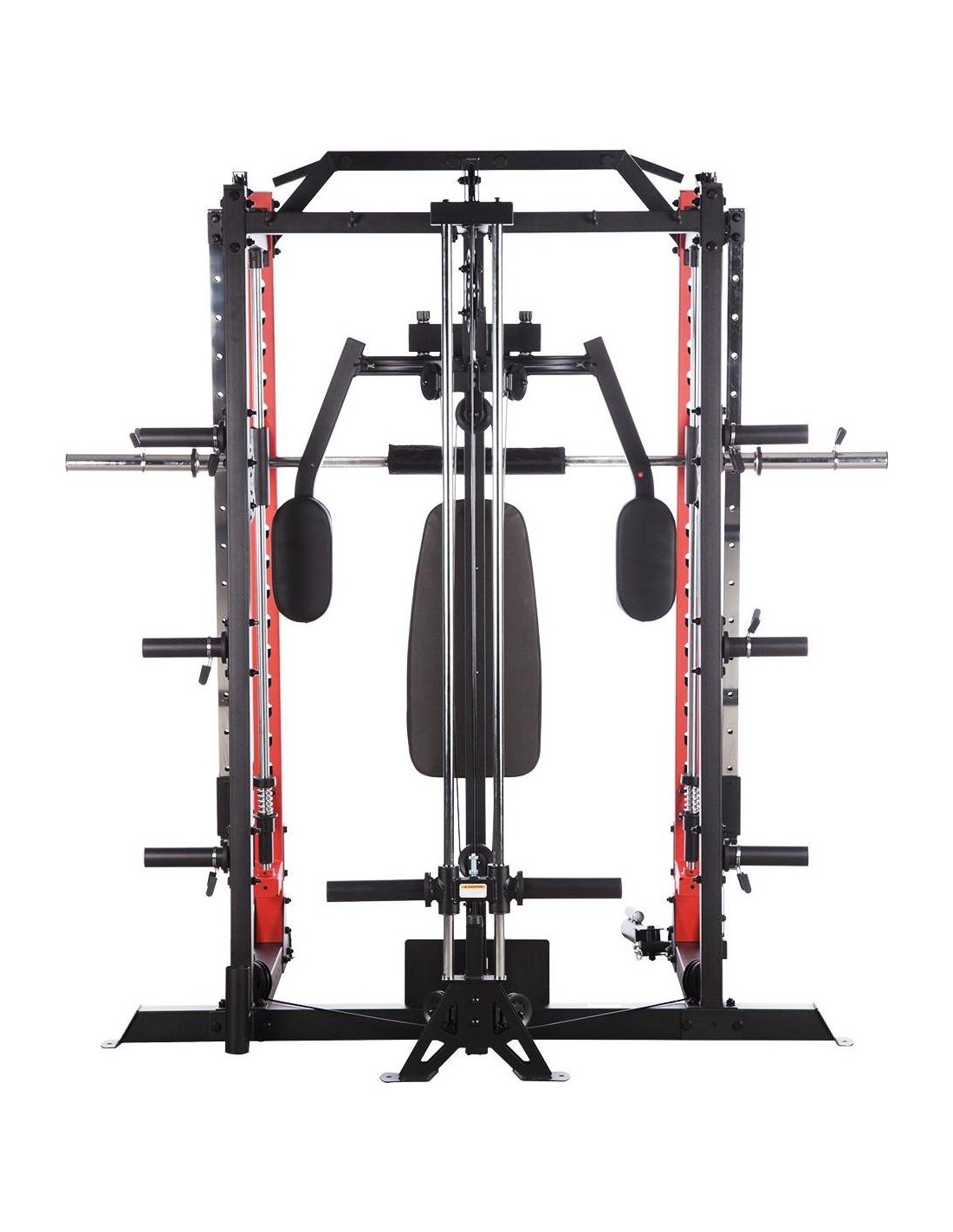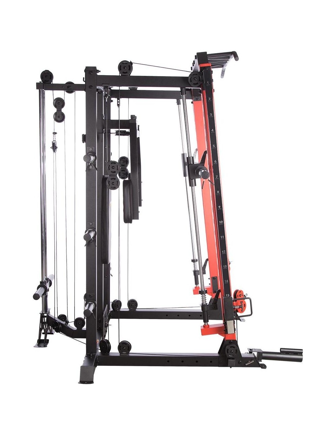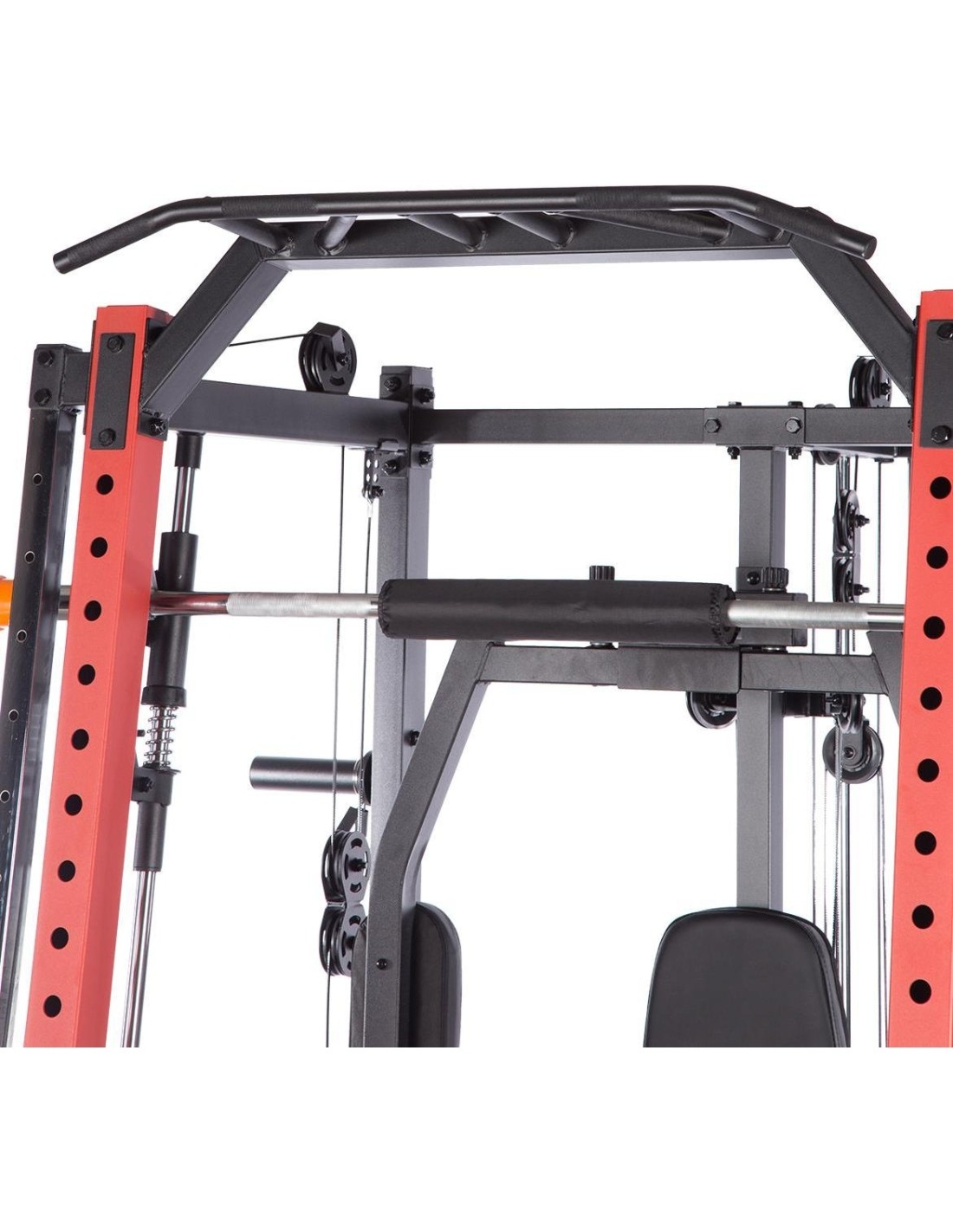 CYKLOP3 HMS, to suwnica klasy Semi Commercial, oznacza to, że idealnie sprawdzi się w małych klubach fitness, ale również do użytku domowego. Materiał najwyższej jakości CYKLOP3, to solidne urządzenie gwarantujące bezpieczny trening. Wytrzymałe grube profile, ze stali najlepszej jakości, zapewniają idealną stabilność sprzętu. Dopracowana pod każdym względem konstrukcja, pozwala łatwo i intuicyjnie korzystać ze sprzętu. Kompleksowy trening CYKLOP3, to nie tylko suwnica. To połączenie suwnicy, drążka do podciągania, butterflya, stojaka na sztangę oraz dwóch wyciągów z regulowaną wysokością. W zestawie z CYKLOPEM3 znajduje się również ławka, wyposażona w możliwość regulacji kąta nachylenia oparcia i siedziska oraz modlitewnik z uchwytem na sztangę. Zbierając wszystkie elementy w całość, otrzymujemy wszechstronny sprzęt, umożliwiający wykonanie ćwiczeń na wszystkie grupy mięśniowe. Efektywność treningu oraz jego możliwości zwiększą się za sprawą dołączonych do zestawu akcesoriów w postaci uchwytów do wyciągu, montowanych poręczy do dipów czy uchwytu landmine na sztangę. Komfort i wygoda Dobry trening to nie tylko solidny ale i wygodny sprzęt. CYKLOP3 posiada wiele udogodnień dla ćwiczącego, między innymi: ławka z regulacjami ustawień, szybka i prosta regulacja wysokości wyciągów czy łatwa blokada gryfu suwnicy. Do gryfu suwnicy została dołączona specjalna gąbka, która zabezpiecza ćwiczącego np. przy wykonywaniu przysiadów. Rękojeści drążka do podciągania są radełkowane dla zwiększenia przyczepności uchwytu. Miękkie oparcie ławki oraz butterflya, pozwoli na długi trening bez uczucia dyskomfortu. Do przechowywania talerzy obciążeniowych, użytkownik ma do dyspozycji funkcjonalnie usytuowane stojaki, a dla bezpieczeństwa do każdego stojaka przewidziany jest sprężynowy zacisk. CYKLOP3 HMS, to suwnica, która sprawdzi się w każdej domowej siłowni i w każdym małym klubie. Z pewnością spełni oczekiwania, wszystkich użytkowników. Specyfikacja: Wymiary produktu: długość: 173 cm szerokość: 159 cm, z gryfem 212 cm wysokość: 219 cm Gryf: długość: 212 cm średnica: 32 mm waga: 17,2 kg Ławka: Długość: 158 cm Szerokość: 66 cm Wysokość: 56,5 - 137 cm Regulacja nachylenia oparcia: 6 poziomów Regulacja nachylenia siedziska: 3 poziomy Regulacja wysokości modlitewnika: 5 poziomów, co 2,5 cm Oparcie: 86 x 30 x 5,5 cm Siedzisko: 43 x 43,5 x 5,5 cm Modlitewnik: 52 x 34,5 x 5,5 cm Butterfly: Oparcie: 67,5 x 31 x 5,5 cm Rozstaw ramion: 85 cm Oparcia na ramionach: 31 x 15 cm Drążek do podciągania: Rozstaw rękojeści: 93 / 67 / 40 / 12,5 Średnica rękojeści: 28 mm Długość jednego rękawa do obciążenia wyciągu: 22,5 cm Długość stojaków na talerze obciążeniowe: 19 cm Regulacja wysokości wyciągów: 15 poziomów Łożyska we wszystkich krążkach Rodzaj obciążenia: talerze obciążeniowe (nie są dołączone do zestawu) Uchwyty do zawieszenia wolnych ciężarów o średnicy 50 i 25 mm Prowadnice gryfu z mechanizmem bezpieczeństwa Regulacja napięcia linek Asekuracja: 15 stopni Podpory na sztangę Możliwość treningu z ławką Maksymalne obciążenie wyciągu: 135 kg, po 67,5 kg na każdy rękaw Wytrzymałość linek wyciągu: 900 kg Maksymalna waga użytkownika: 150 kg Maksymalne obciążenie ławki: 270 kg Waga produktu: netto: 260,5 kg Przyrządy do ćwiczeń: Suwnica Smitha Dwa wyciągi z regulowaną wysokością Drążek do podciągania Butterfly Ławka Uwagi: Gwarancja 12 miesięcy w przypadku użytku komercyjnego Gwarancja 24 miesiące w przypadku użytku domowego