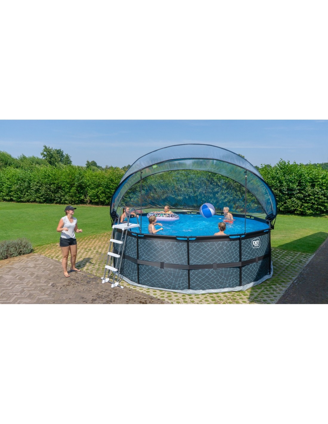 Z kopułą EXIT do basenów nie jesteś już zależny od prognoz pogody. Kopuła utrzymuje brud z dala od wody, a także działa jako zrównoważone rozwiązanie do ogrzewania wody, ponieważ ciepło słoneczne jest zatrzymywane pod kopułą. Kopuła jest łatwa do otwarcia dzięki unikalnemu mechanizmowi zawiasowemu, a ponieważ jest przezroczysta, można nadal mieć oko na to, co dzieje się poza basenem. Z kopułami basenowymi od EXIT Toys możesz cieszyć się pływaniem niezależnie od pogody!