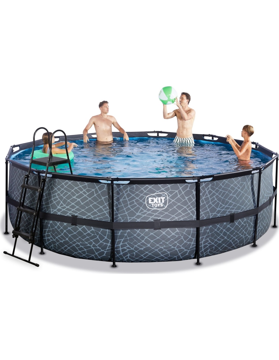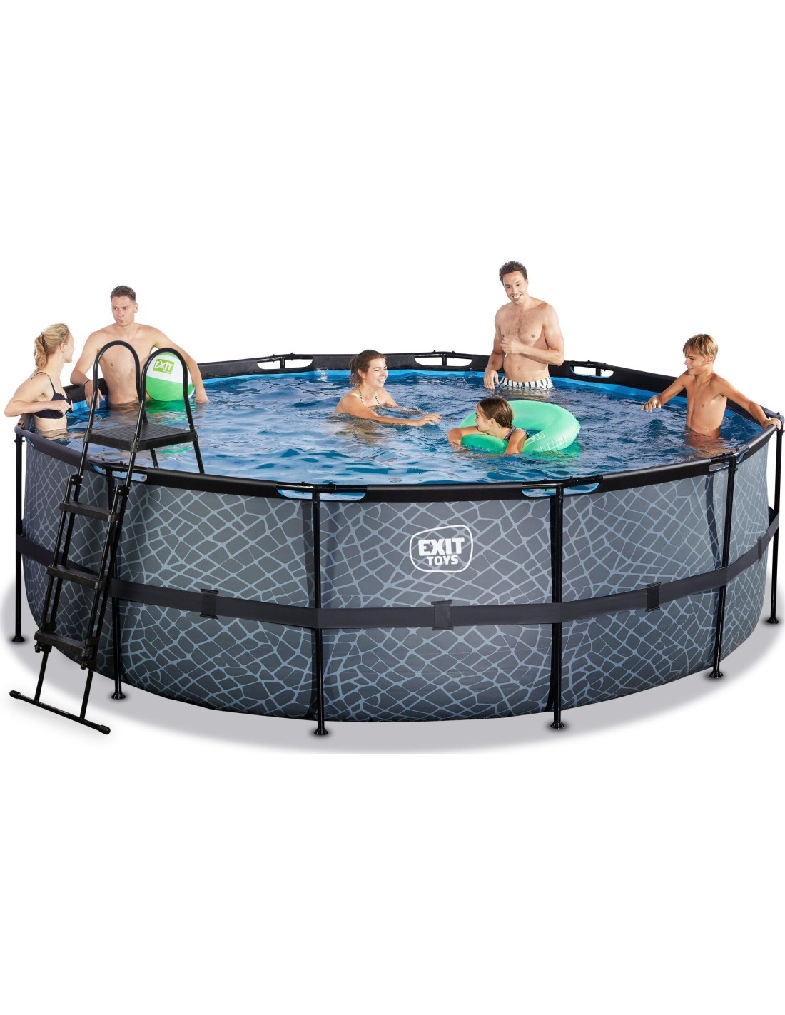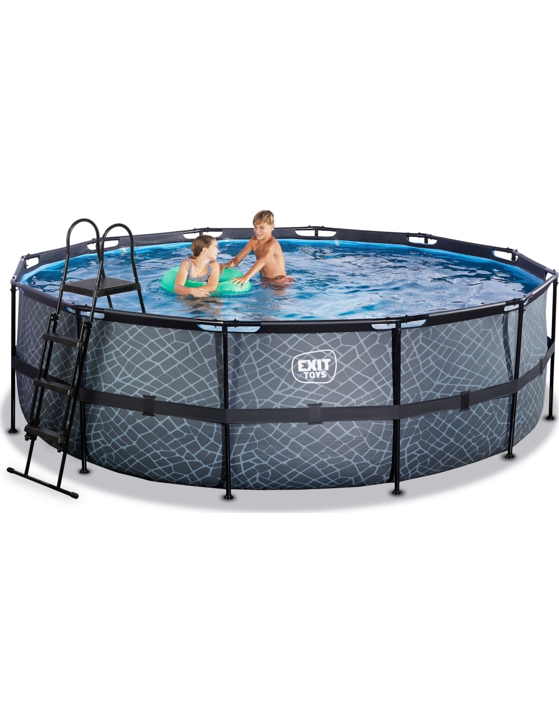 Odkryj jak wytrzymały może być okrągły basen naziemny: Malowana proszkowo stalowa rama i solidne nogi basenu EXIT Stone sprawiają, że basen zawsze pozostaje stabilny i będzie służył przez lata. Dołączona pompa odświeża wodę i utrzymuje ją w ruchu, aby zapobiec jej zanieczyszczeniu. Pompa filtrująca jest łatwa w montażu do basenu, a wkłady filtrujące sprawiają, że woda pozostaje ładna i czysta. Basen EXIT Stone jest zawsze gotowy do pływania!