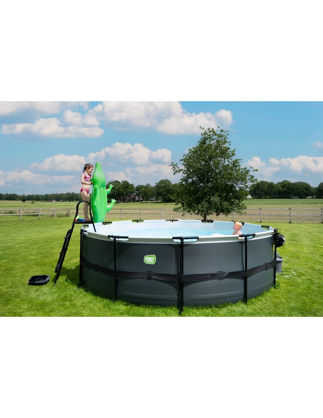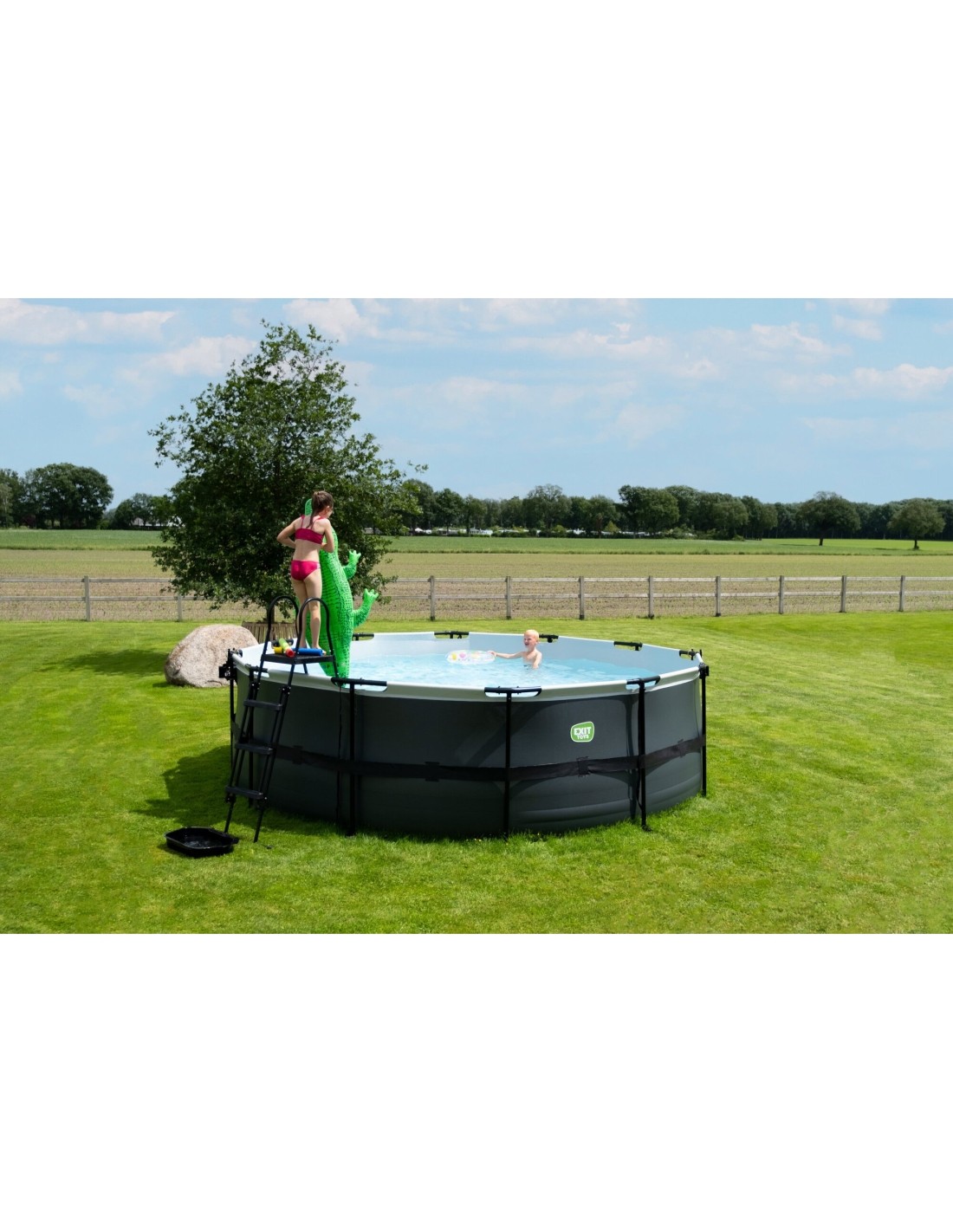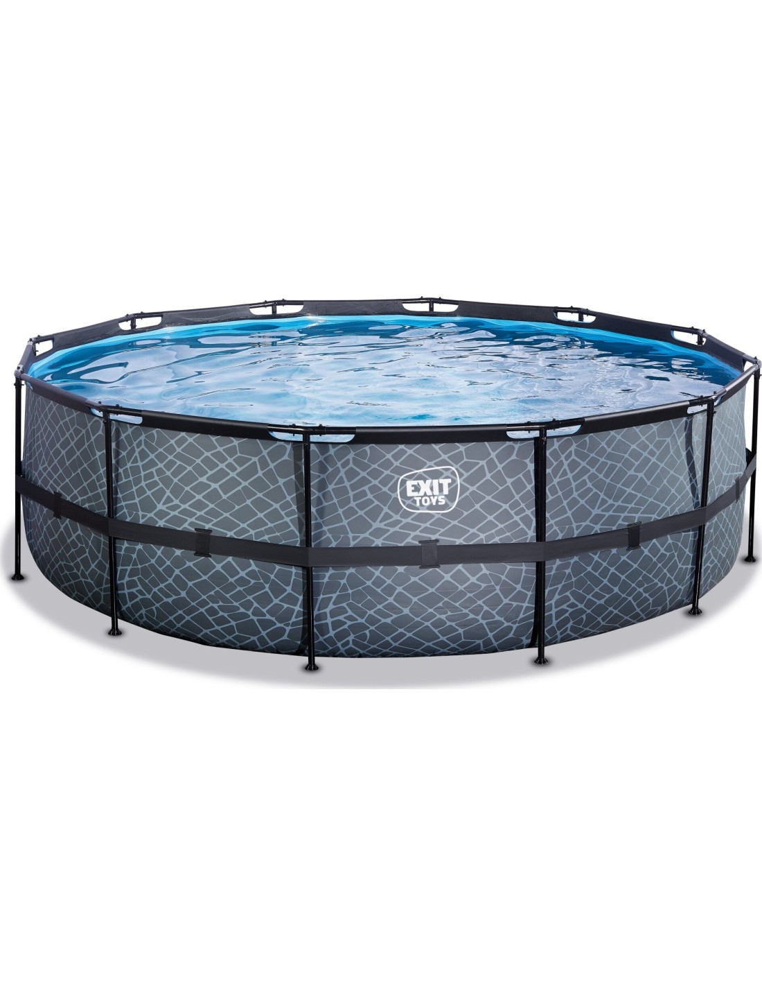 Odkryj jak wytrzymały może być okrągły basen naziemny: Malowana proszkowo stalowa rama i solidne nogi basenu EXIT Stone sprawiają, że basen zawsze pozostaje stabilny i będzie służył przez lata. Dołączona pompa odświeża wodę i utrzymuje ją w ruchu, aby zapobiec jej zanieczyszczeniu. Pompa filtrująca jest łatwa w montażu do basenu, a wkłady filtrujące sprawiają, że woda pozostaje ładna i czysta. Basen EXIT Stone jest zawsze gotowy do pływania!