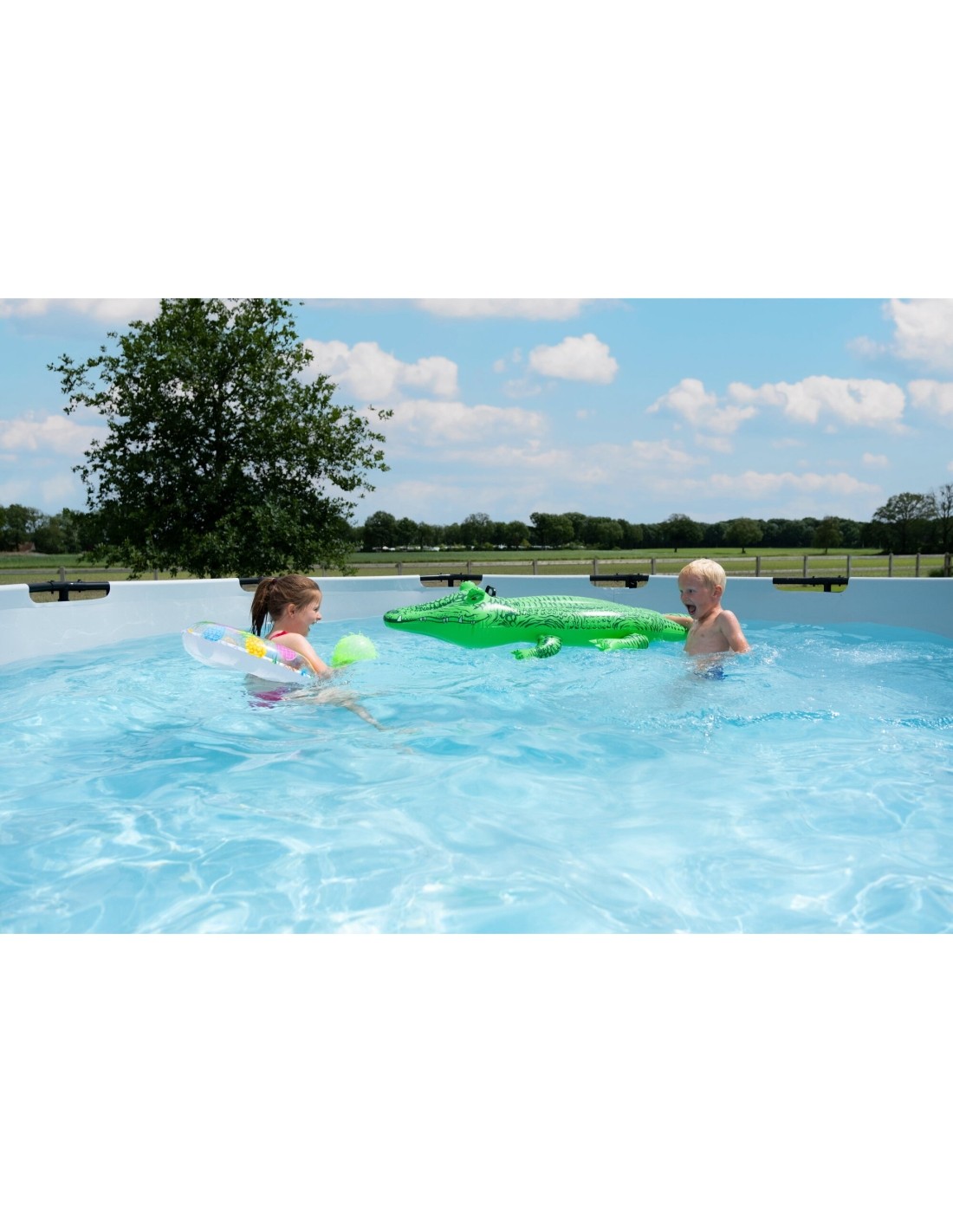 Kamienny basen ma nowoczesny i solidny wzór z kamienia na boku i tworzy wyróżniającą się cechę dla ogrodu. Wnętrze basenu jest niebieskie, aby stworzyć uczucie świeżego basenu. Basen EXIT wyposażony jest w mocne 3-warstwowe ściany, wykonane z PVC i poliestru. Okrągły kształt basenu sprawia, że jest on miły i przytulny oraz zapewnia wystarczająco dużo miejsca, aby zmieścić kilka osób, dzięki czemu można cieszyć się wspaniałymi chwilami razem. Odkryj, kto potrafi najszybciej przepłynąć najwięcej okrążeń, unosić się i relaksować razem na materacu powietrznym lub nurkować, aby zebrać zabawki z dna basenu. Krótko mówiąc: z okrągłymi basenami od EXIT Toys nie doświadczysz ani jednej nudnej chwili.