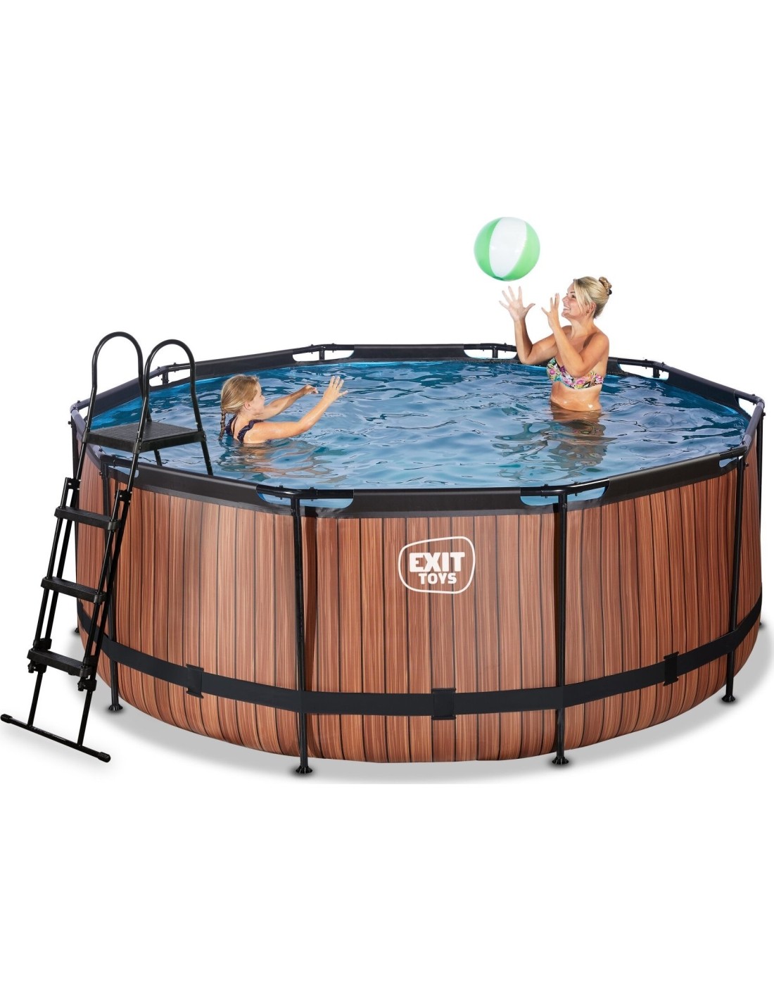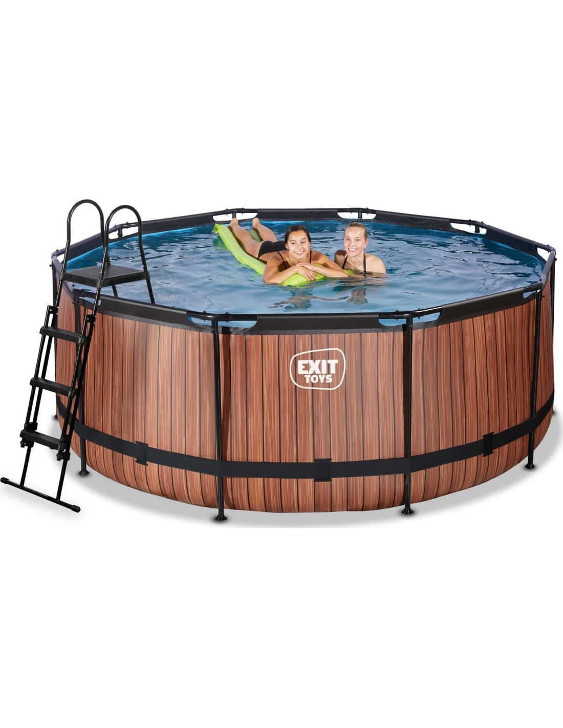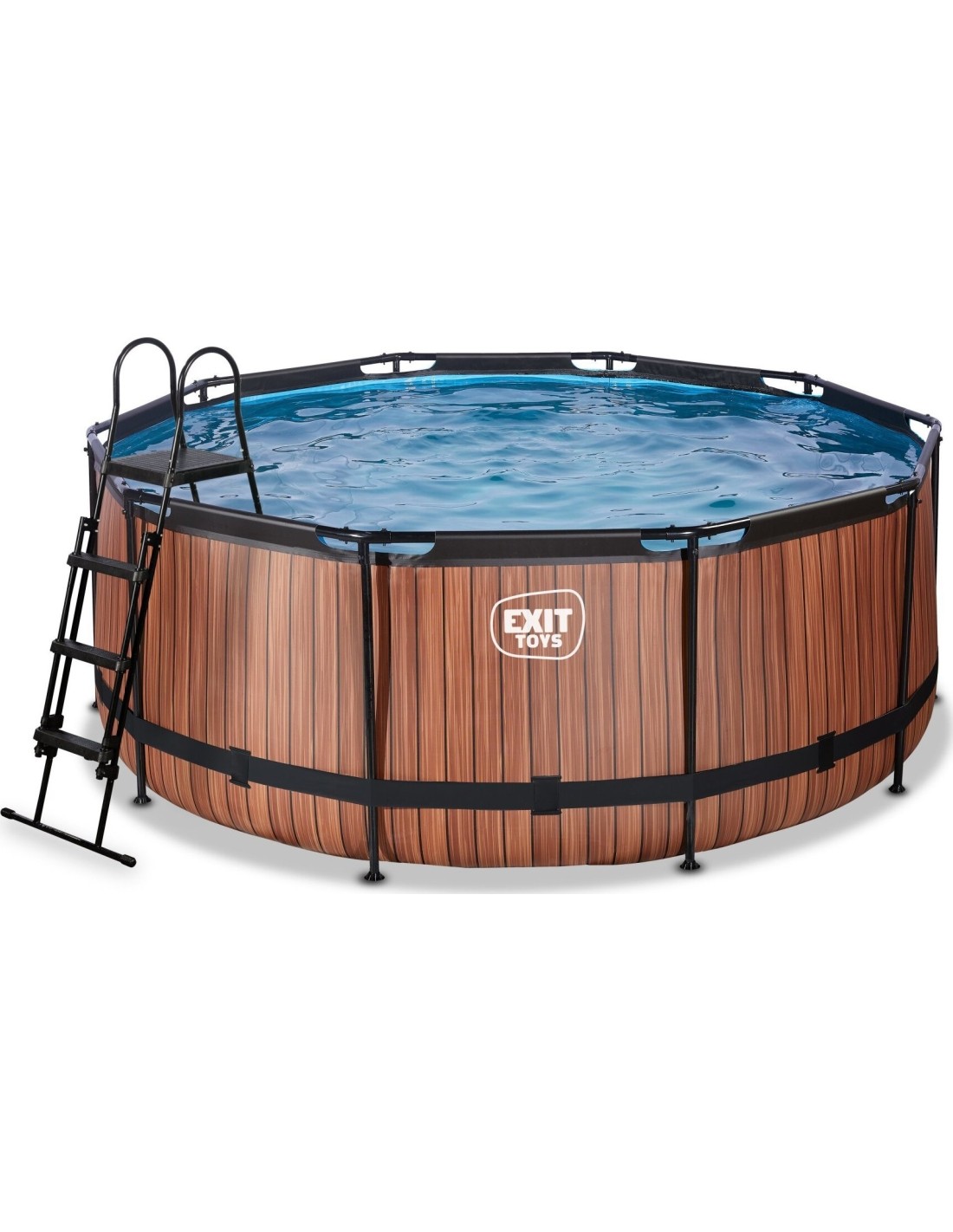 Basen EXIT Wood ø360 x 122 cm to okrągły basen ramowy o drewnianym wyglądzie. W standardzie basen wyposażony jest w pompę z filtrem piaskowym oraz drabinkę basenową, dzięki której można bezpiecznie wejść i wyjść z basenu. Basen ramowy jest wystarczająco przestronny, aby wykorzystać go do relaksu na pływającym materacu powietrznym. A może wolisz pływać pod wodą? Basen EXIT Wood ma 122 centymetry głębokości, co pozwala na rzeczywiste zanurzenie się w nim. Z basenem ramowym od EXIT Toys z pewnością przeżyjesz najlepsze wodne przygody we własnym ogrodzie!