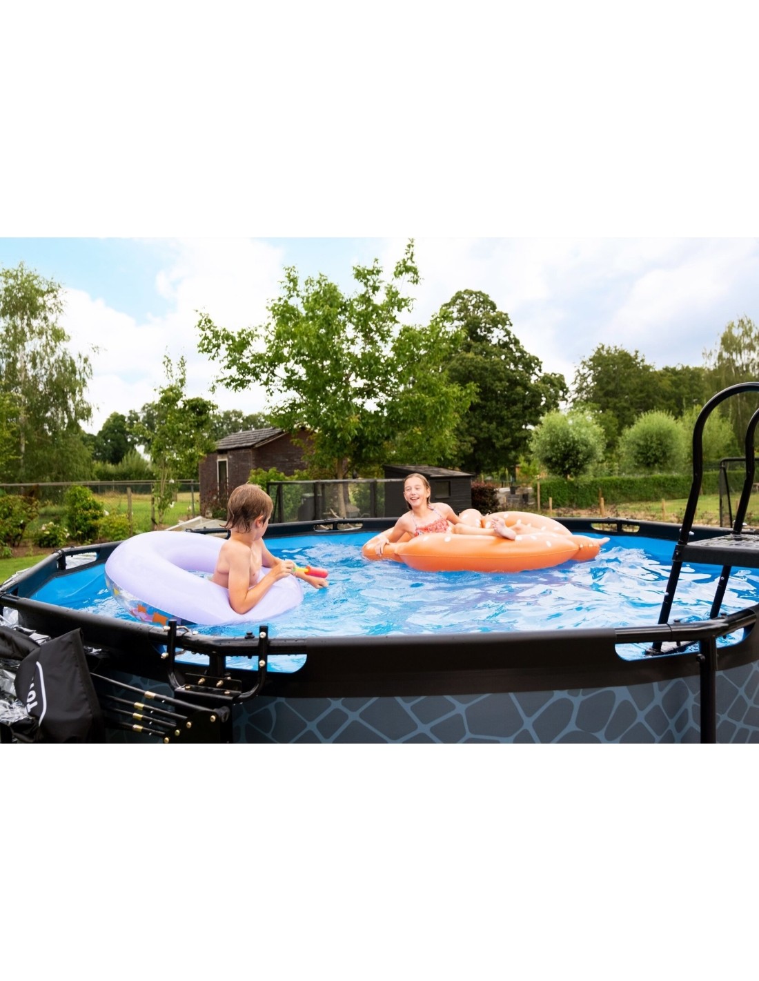 Basen Wood ma nowoczesny i solidny drewniany wzór na boku, który tworzy wyróżniającą się cechę dla ogrodu. Wnętrze basenu jest niebieskie, aby stworzyć uczucie świeżego basenu. Basen EXIT wyposażony jest w mocne 3-warstwowe ściany, wykonane z PVC i poliestru. Okrągły kształt basenu sprawia, że jest on miły i przytulny oraz zapewnia wystarczająco dużo miejsca, aby zmieścić kilka osób, dzięki czemu można cieszyć się wspaniałymi chwilami razem. Odkryj, kto potrafi najszybciej przepłynąć najwięcej okrążeń, unosić się i relaksować razem na materacu powietrznym lub nurkować, aby zebrać zabawki z dna basenu. Krótko mówiąc: z okrągłymi basenami od EXIT Toys nie doświadczysz ani jednej nudnej chwili.