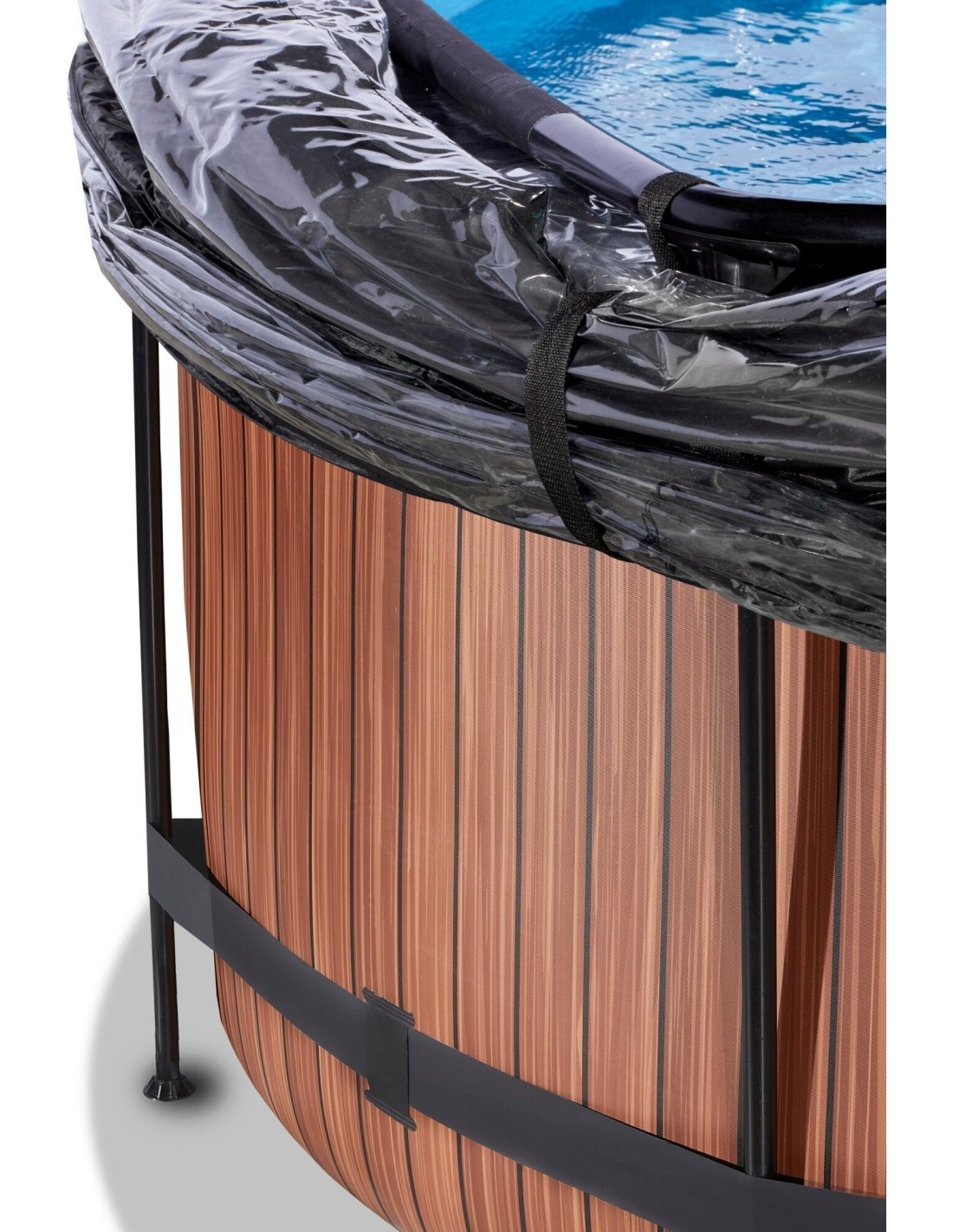 Odkryj jak wytrzymały może być okrągły basen naziemny: Malowana proszkowo stalowa rama i solidne nogi basenu EXIT Wood zapewniają, że basen zawsze pozostaje stabilny i będzie służył przez lata. A dostarczony system cyrkulacji wody dopełnia basen. Wysokiej jakości pompa filtra piaskowego oczyszcza z basenu nawet najmniejsze drobiny zanieczyszczeń, pompując z dużą mocą wodę przez złoże filtracyjne. Dzięki temu piasek, szkodniki czy algi nie pozostają w filtrze. Basen EXIT Wood jest zawsze gotowy do pływania!