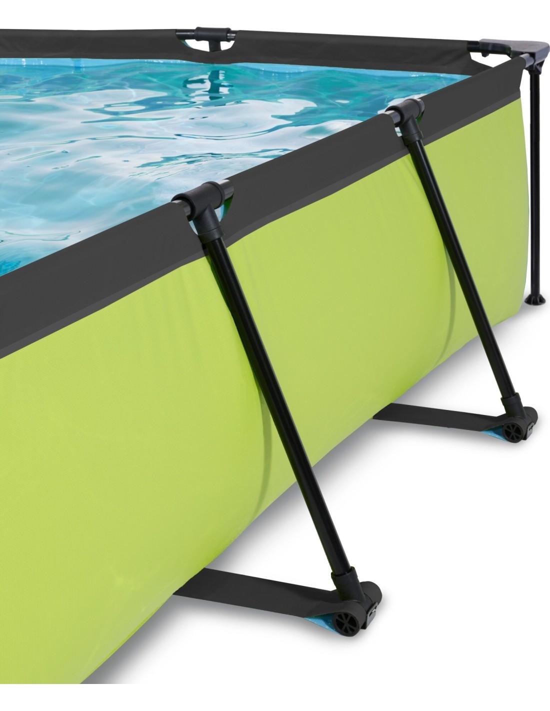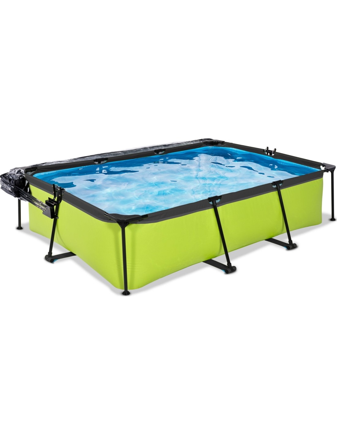 >.Odkryj, jak wytrzymały może być prostokątny basen naziemny: Malowana proszkowo stalowa rama i solidne narożniki basenu EXIT Lime sprawiają, że basen zawsze pozostaje stabilny i będzie służył przez lata. Dołączona pompa odświeża wodę i utrzymuje ją w ruchu, aby zapobiec jej zanieczyszczeniu. Basen EXIT Lime jest zawsze gotowy do pływania!