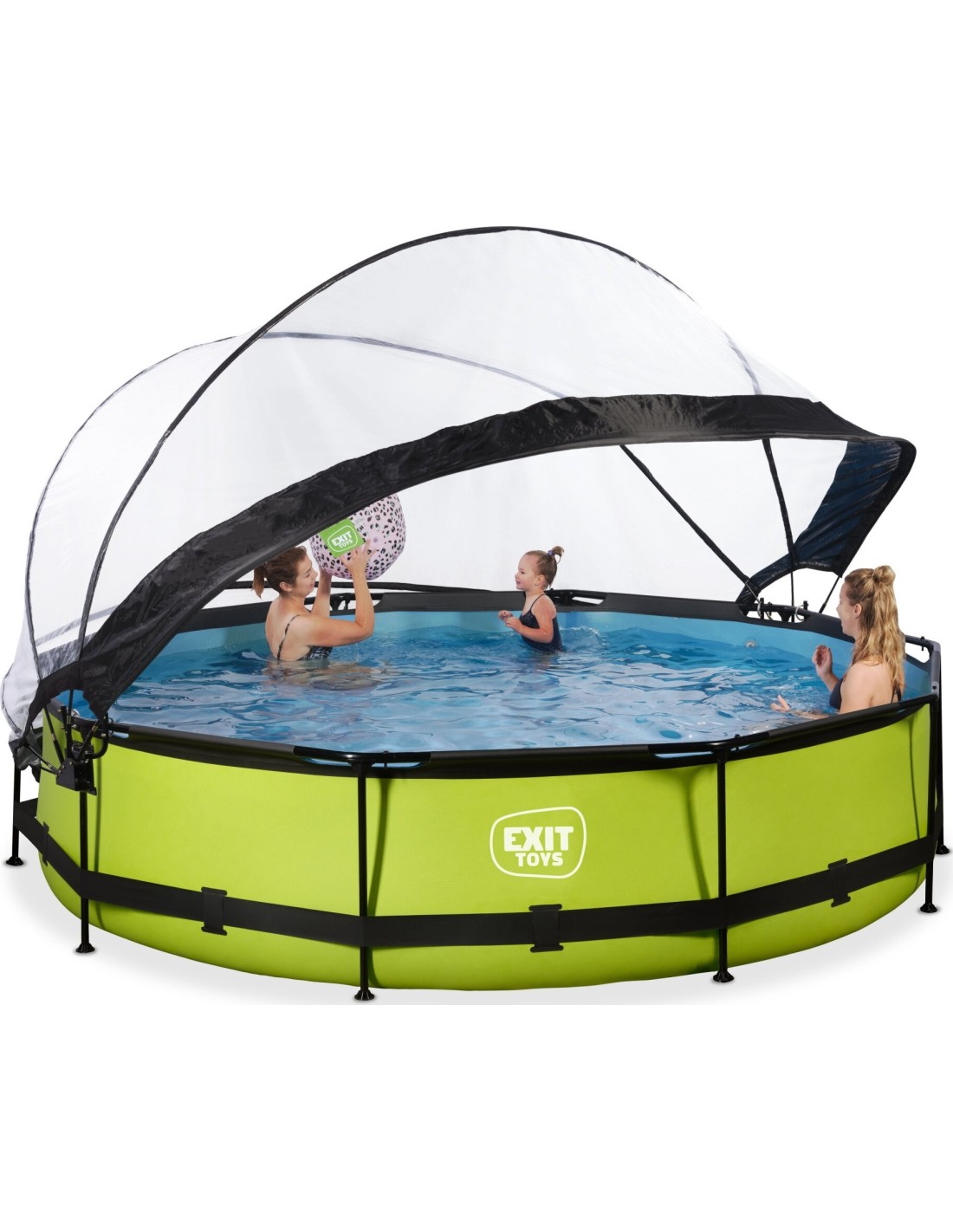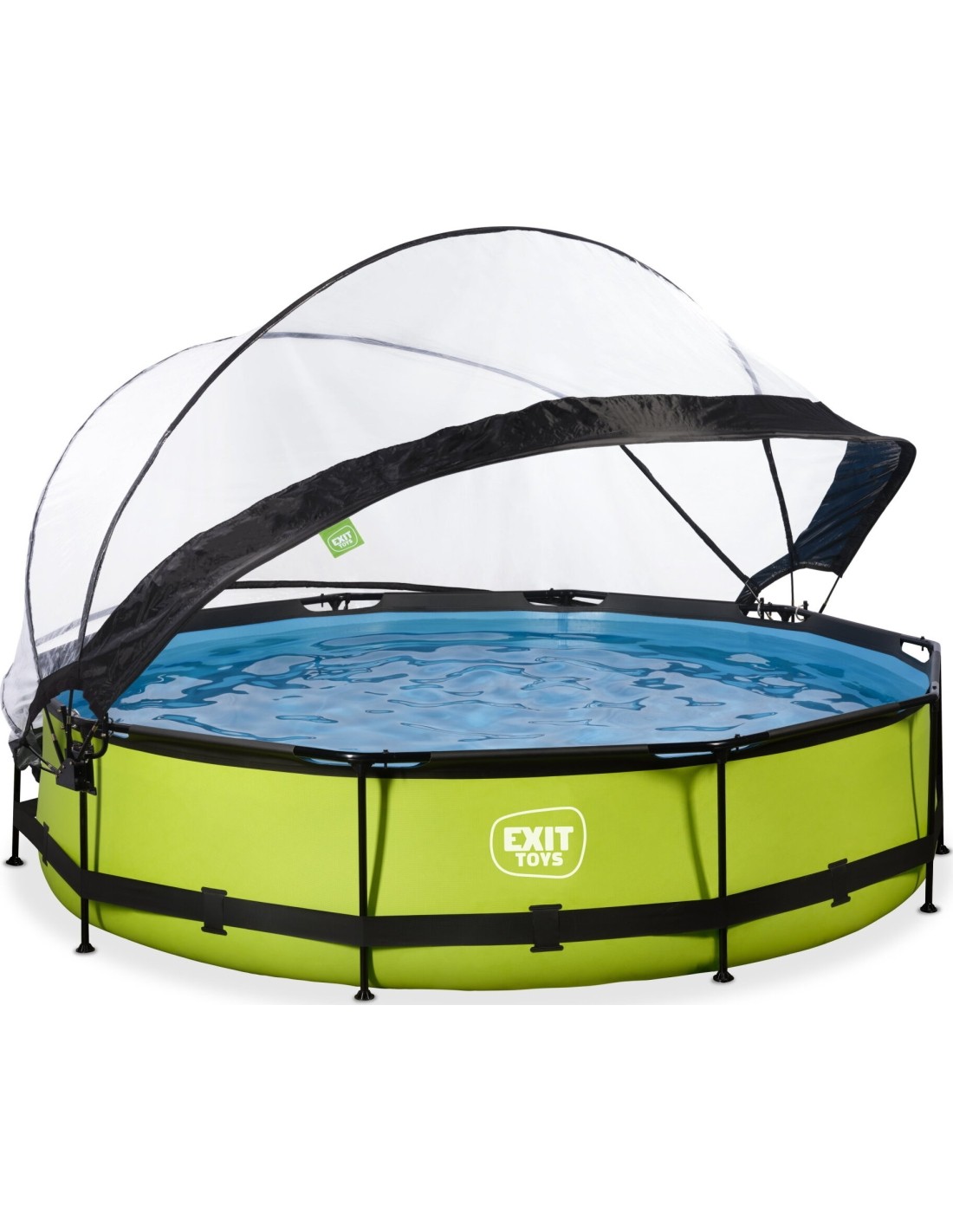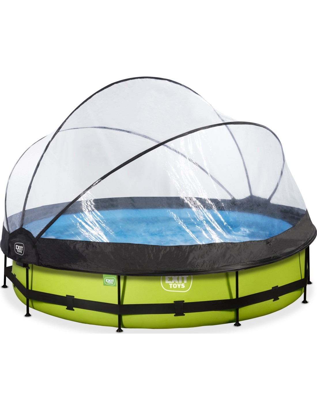 .Basen EXIT Lime ø360x76cm to okrągły basen stelażowy w zielonym kolorze z kopułą. Basen zawiera pompę filtrującą i naprawdę wyróżnia się swoim orzeźwiającym, limonkowym kolorem. Czy szukasz zabawnego, ale także unikalnego i wysokiej jakości basenu do swojego ogrodu? Zrób furorę z okrągłymi basenami od EXIT Toys!