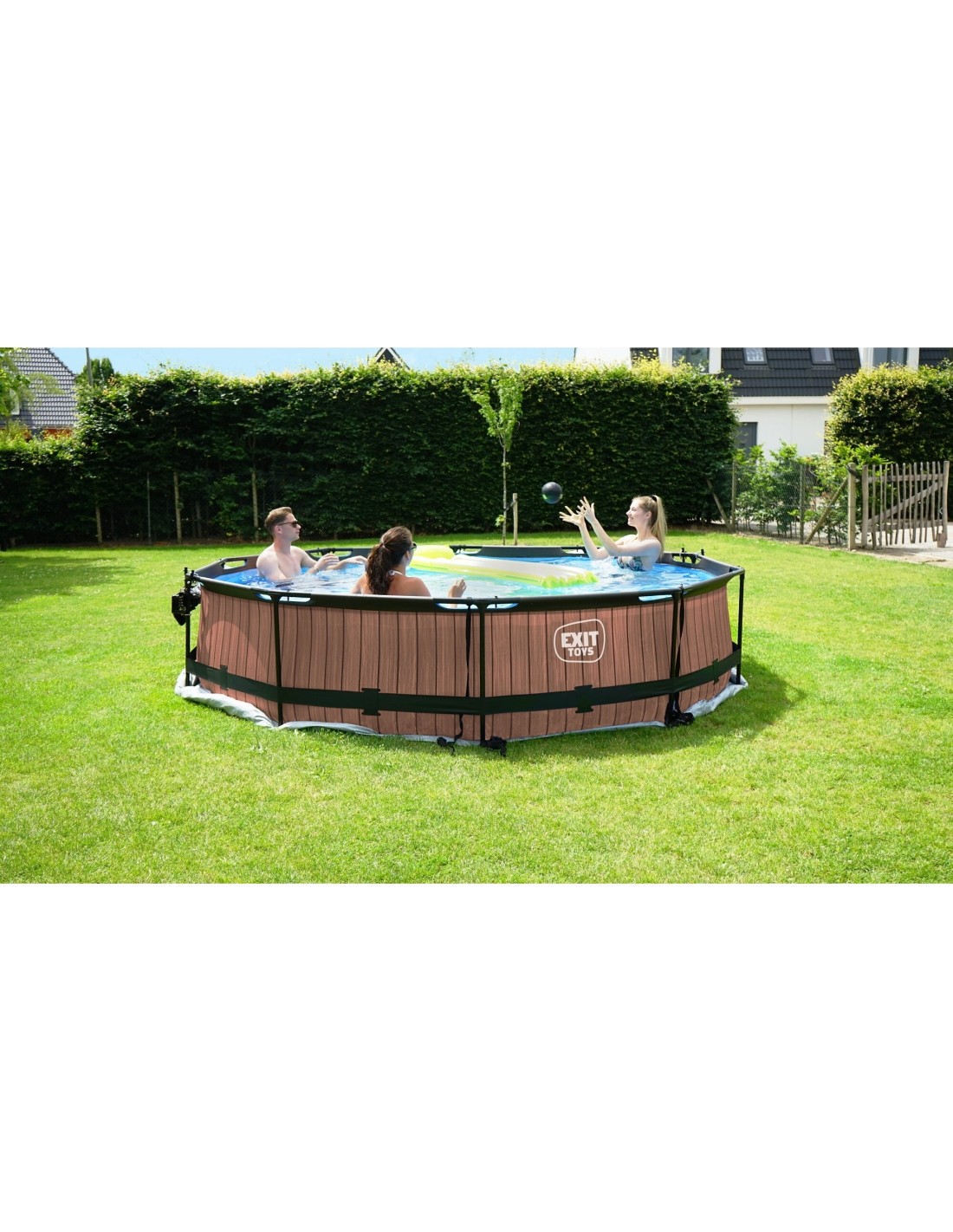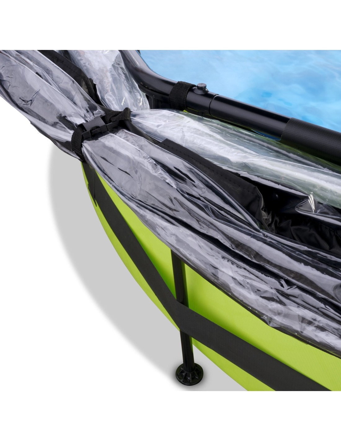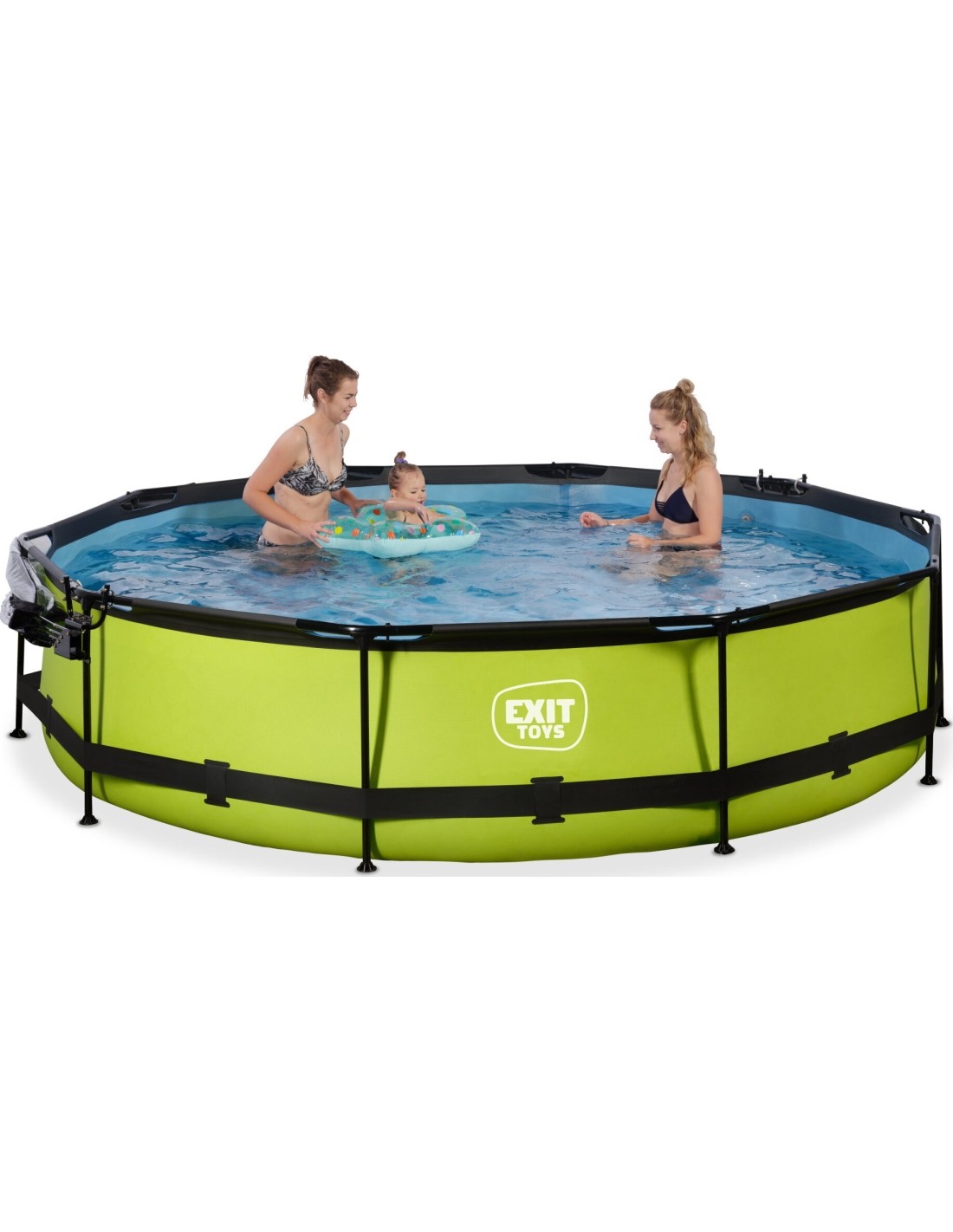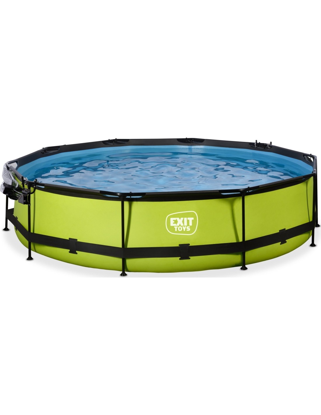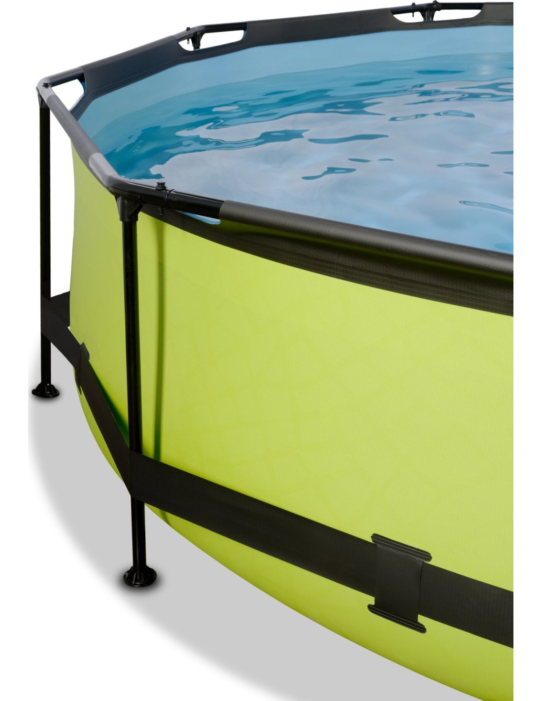 >.Odkryj, jak wytrzymały może być okrągły basen naziemny: Malowana proszkowo stalowa rama i solidne nogi basenu EXIT Lime sprawiają, że basen zawsze pozostaje stabilny i będzie służył przez lata. Dołączona pompa odświeża wodę i utrzymuje ją w ruchu, aby zapobiec jej zanieczyszczeniu. Basen EXIT Lime jest zawsze gotowy do pływania!