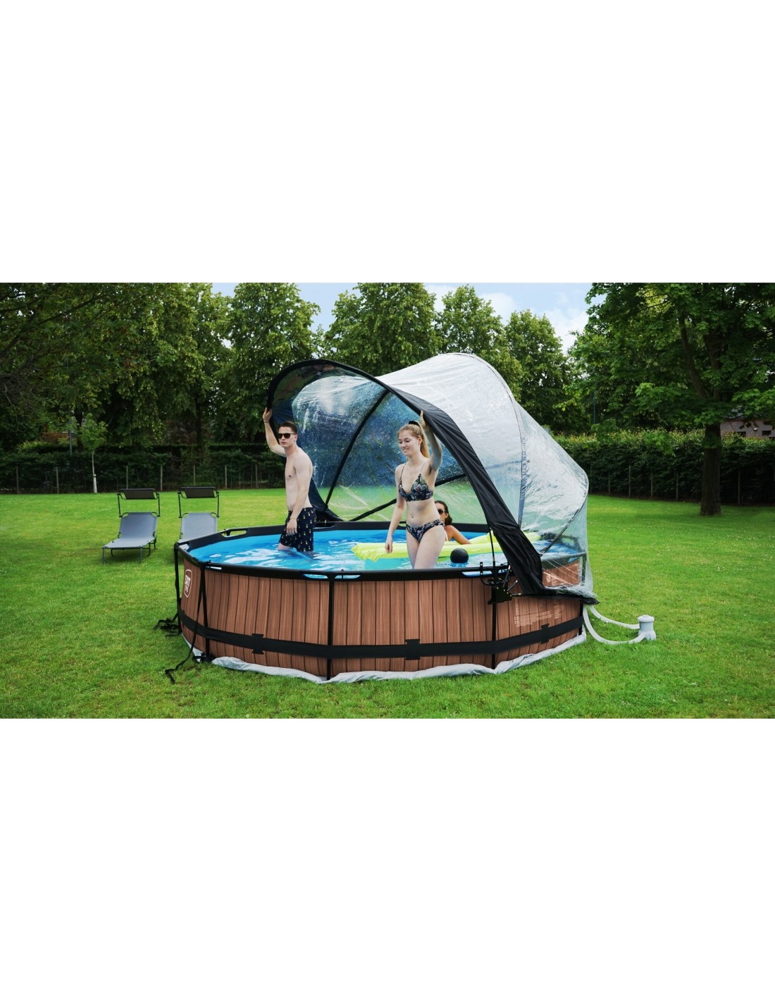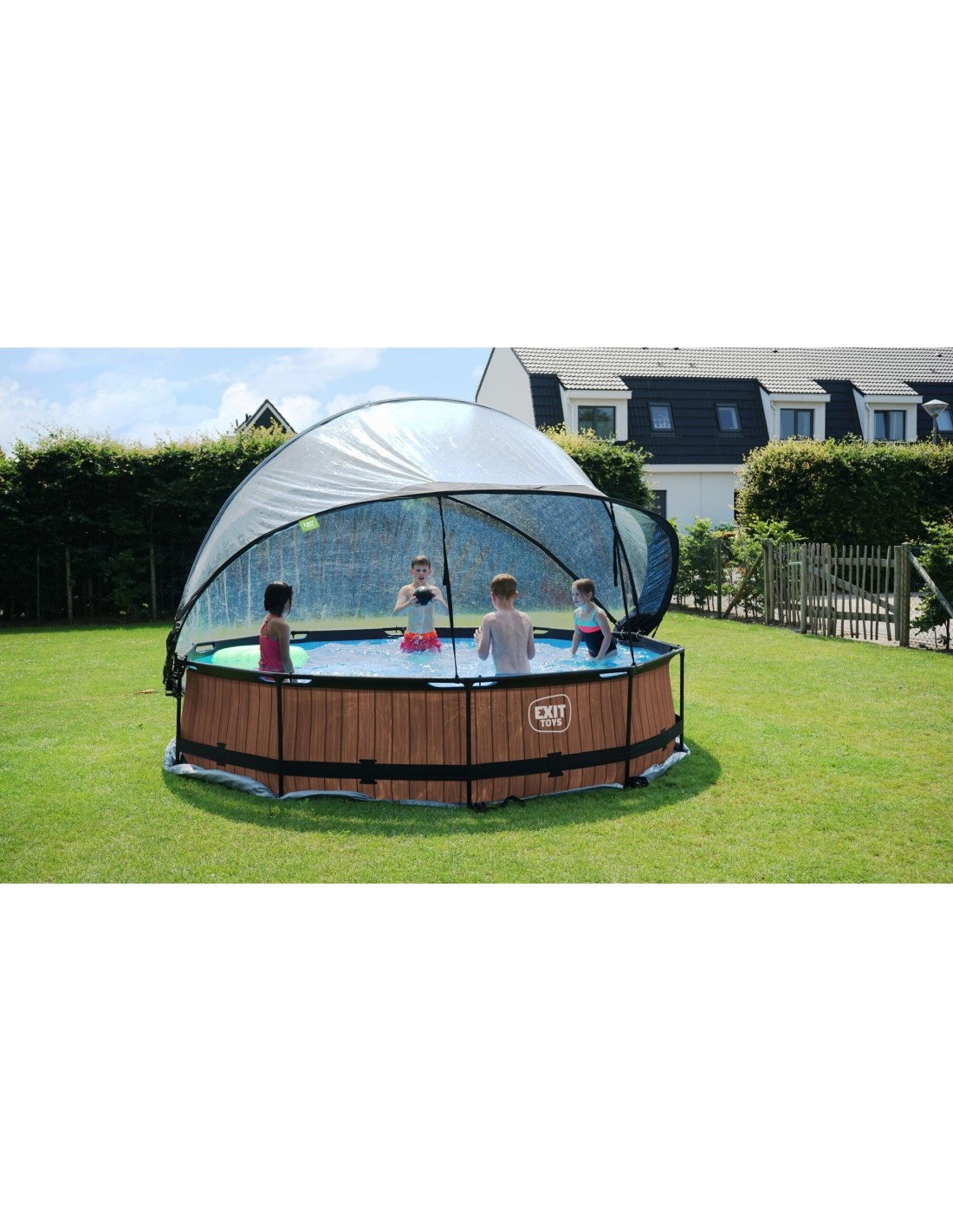 .Dzięki kopule EXIT do basenów nie jesteś już zależny od prognoz pogody. Kopuła utrzymuje brud z dala od wody, a także działa jako zrównoważone rozwiązanie do ogrzewania wody, ponieważ ciepło słoneczne jest zatrzymywane pod kopułą. Kopuła jest łatwa do otwarcia dzięki unikalnemu mechanizmowi zawiasowemu, a ponieważ jest przezroczysta, można nadal obserwować, co dzieje się poza basenem. Tak więc: ciesz się swoim basenem niezależnie od pogody.