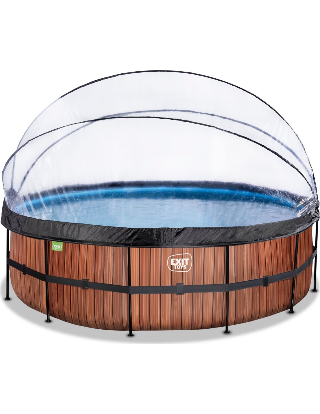 EXIT Basen drewniany ø488x122cm z pompą filtrem piaskowym i kopułą oraz pompą ciepła - brązowy