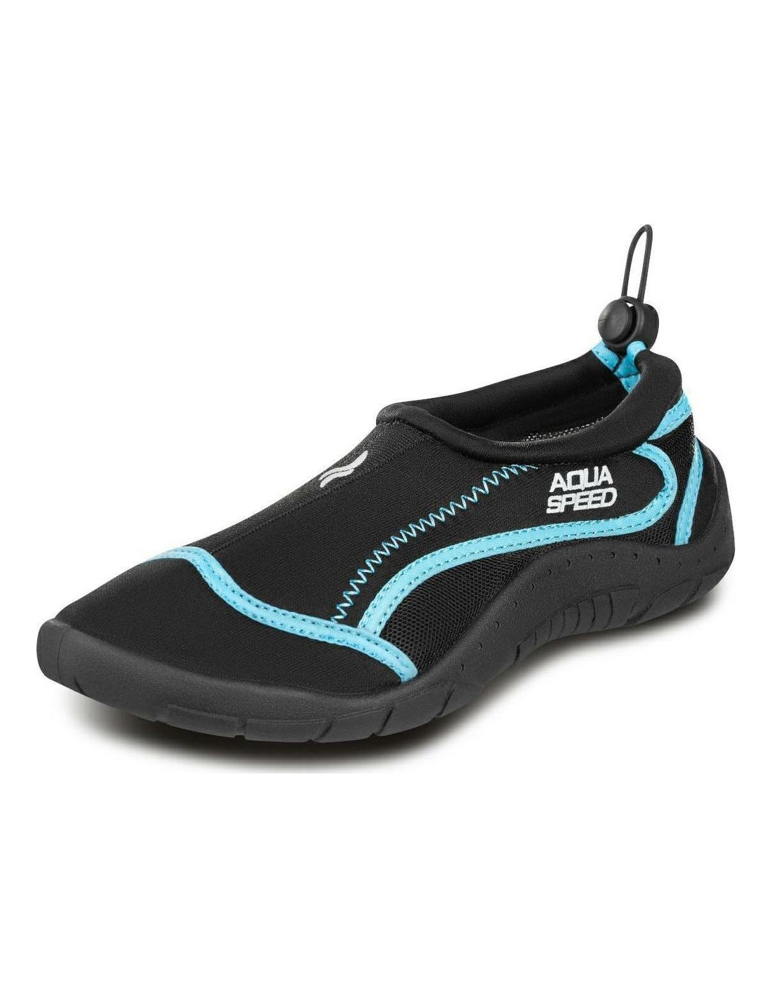 This vibrant aquashoe model from Aqua Speed is great for protecting your feet on the beach and in the sea (from sea urchin spikes, debris, sharp rocks) and for wearing while snorkeling, swimming, rafting, kayaking etc. On the heel it has an elastic strap with a stopper for perfect fit and hard sole with traction to reduce slipping (however you should thread wet and slippery surfaces with caution!). The upper part of the shoe has mesh fabric insetrs for breathability and drainage. Made of materials resilient to operation of salty water and sun. Warning: Aquashoe does not fully protect from slipping, it should not be used on wet, slippery poolsides and other slippery surfaces!