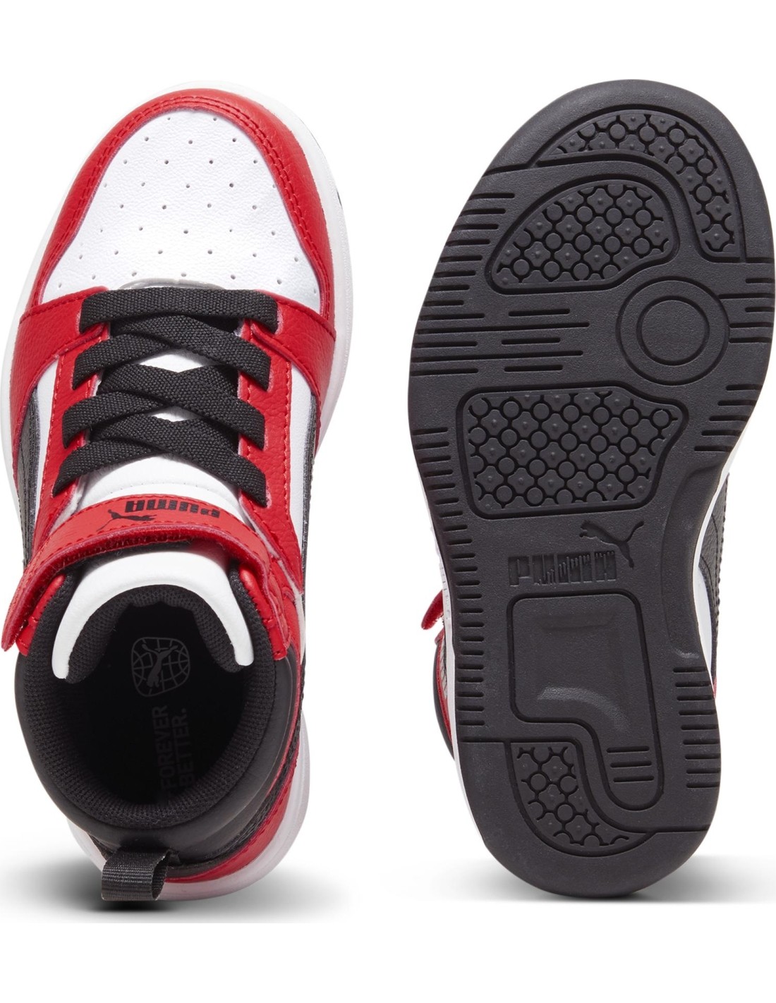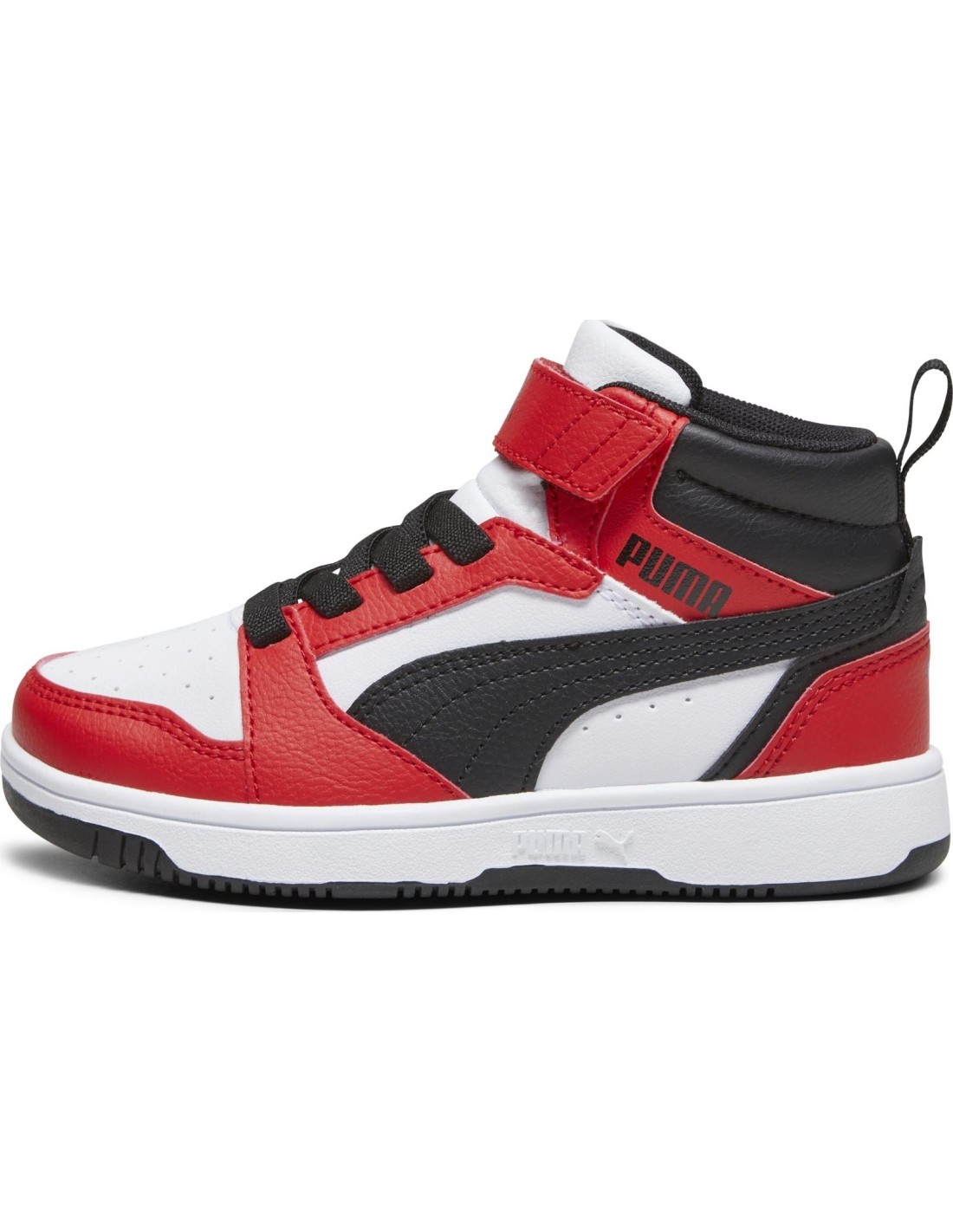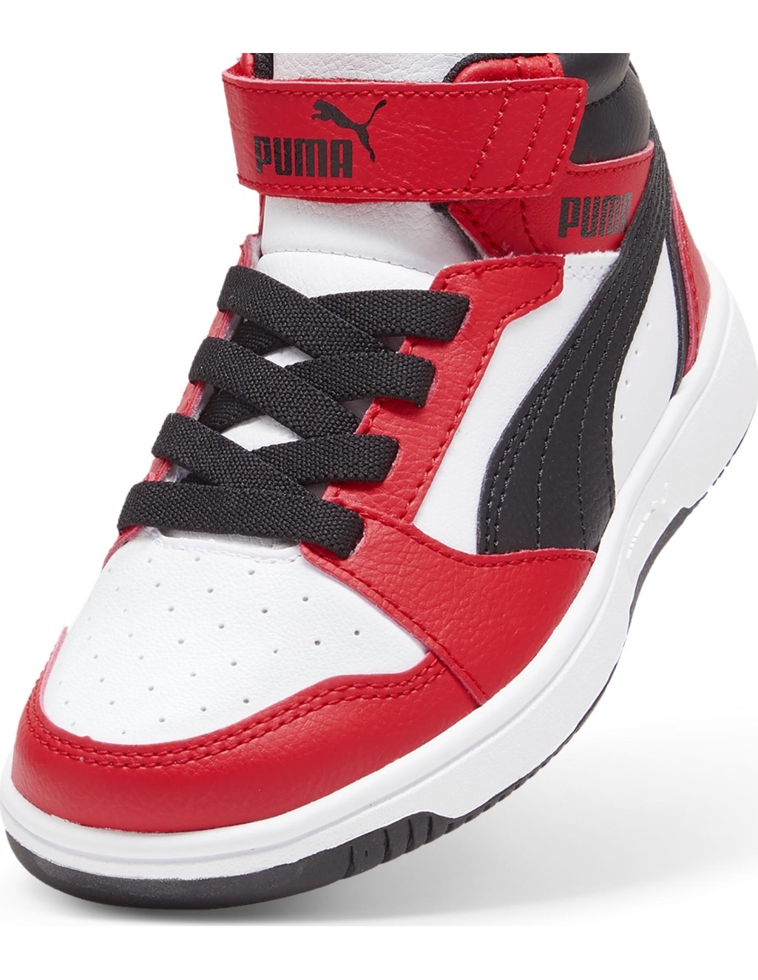 Puma Avalynė Vaikams Rebound V6 Mid Jr White Black Red 393832 03. Auliniai batai vaikams. Ilgesnis batų aulas leidžia sutvirtinti čiurną. Nors jos stabilumas gerokai padidėja, tai nesutrikdo įprastos judėjimo laisvės. Tai ypač aktualu atvėsus orams ir pasirodžius pirmajam šaltukui. Auliniai batai leidžia visapusiškai mėgautis mėgstama fizine veikla ar laisvalaikiu. SoftFoam+ vidpadis.