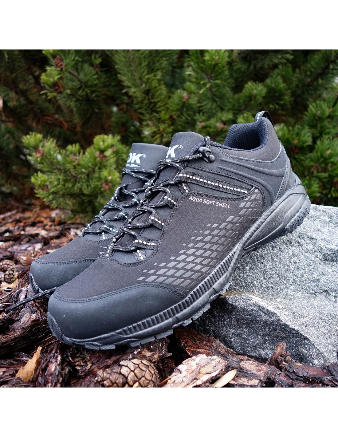 SOFTSHELL medžiagos – neperpučiama, labai elastinga ir pasižymi geromis, atsparumo mechaniniam poveikiui savybėmis, bateliai ilgai išlieka neperšlampami ir nepraleidžia šalčio, pėda juose puikiai kvėpuoja.