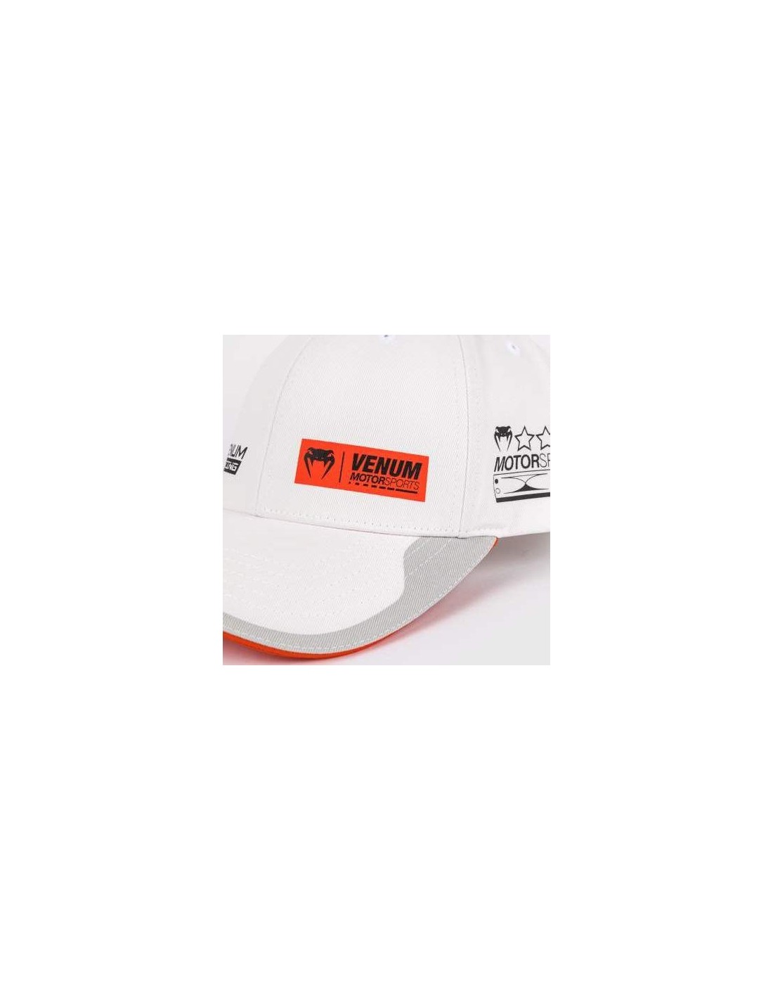 Introducing Venum Motorsports, a full range of premium apparel to mark Venum’s adrenaline-fueled entry into the world of automotives.Since 2005, Venum has championed those who thrive at the extremes: risk takers and relentless competitors. Now Venum is speeding into motorsports in the same spirit, with bold lifestyle pieces and performance gear.The Venum Motorsport Cap in Ice is a classic snapback cap in cotton twill fabric. Featuring orange and black printed and embroidered patches inspired by Venum motorsports, this cap is track ready! Technical features: Classic snapback capCotton twill fabricSnapback closure system (plastic fastener with pins)Venum logoScreen printed graphics.