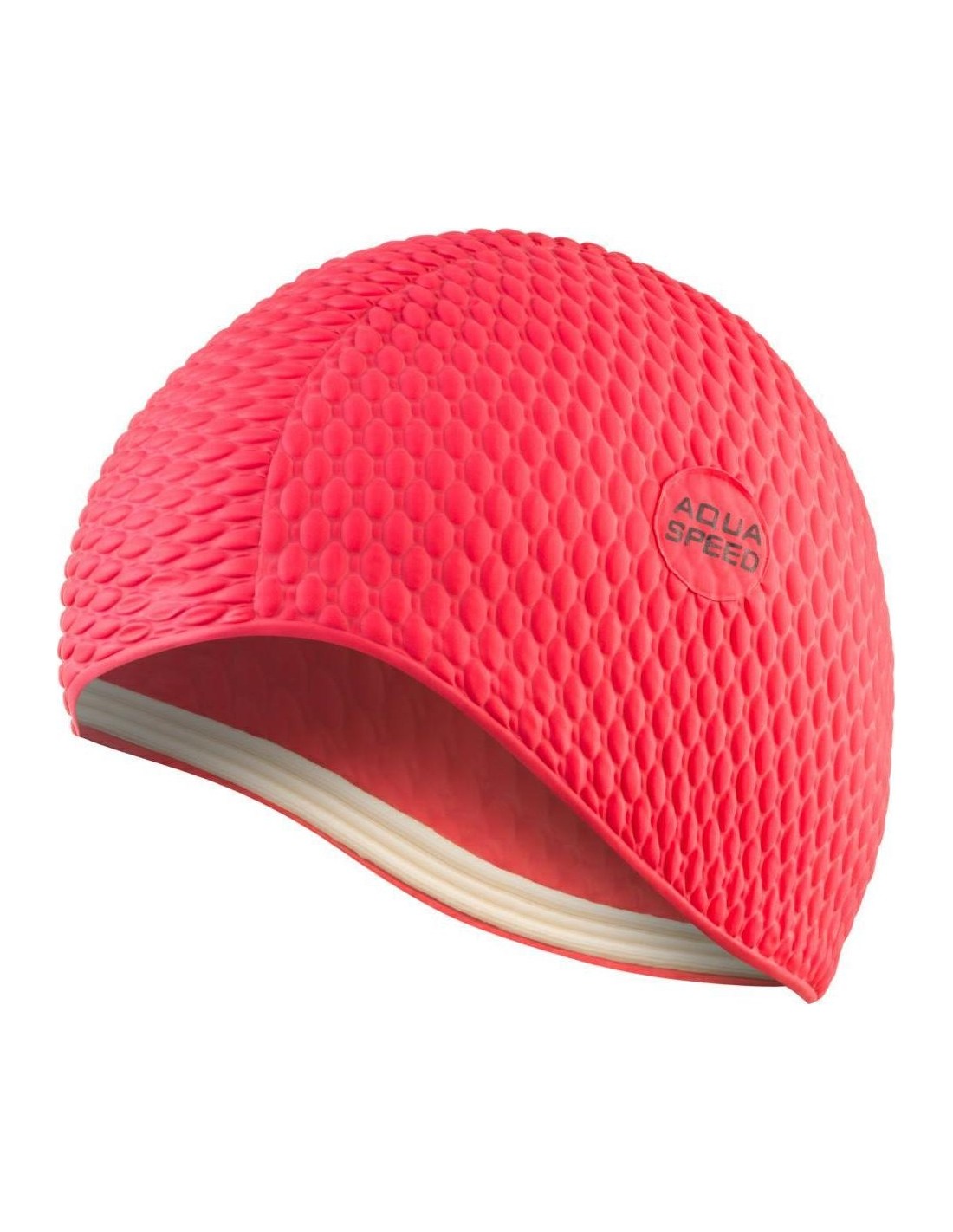 Women's BOMBASTIC swim cap from Aquaspeed is a perfect choice for ladies with long hair, who are looking for a roomy and comfortable fit. Available in a wide variety of lively colours, BOMBASTIC is also a must-have for style-conscious swimmers. Thick rubber material the cap is made of, as well as air-filled bubbles on the cap mean that this piece of headgear is warmer than a standard cap, so it is perfect for use in open waters and outdoor pools.