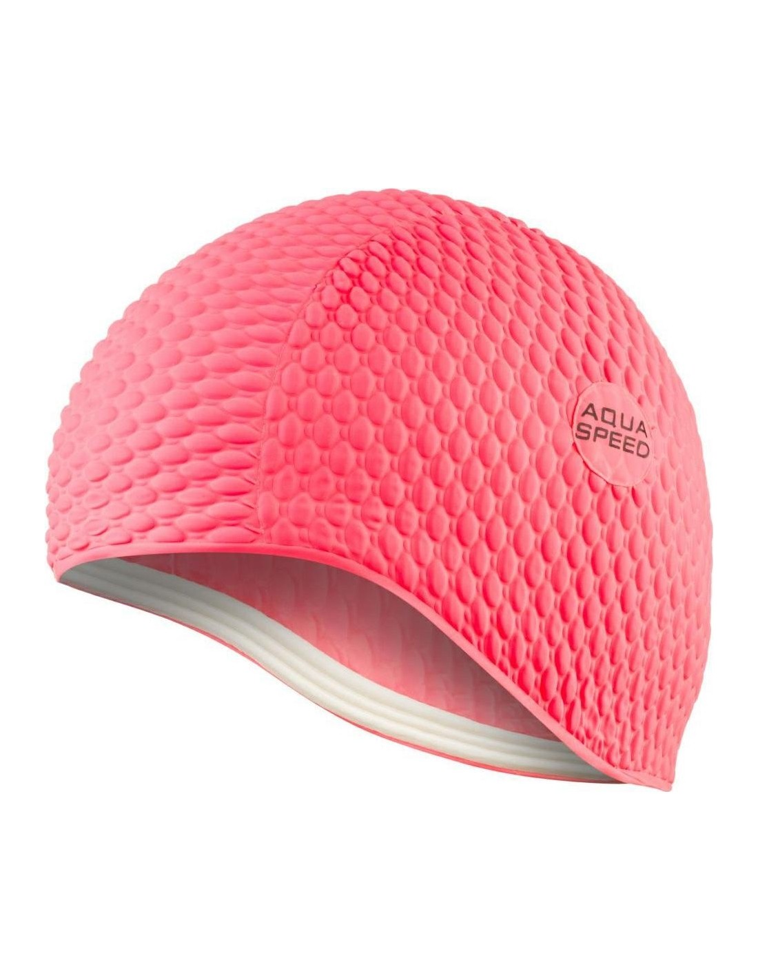 Women's BOMBASTIC swim cap from Aquaspeed is a perfect choice for ladies with long hair, who are looking for a roomy and comfortable fit. Available in a wide variety of lively colours, BOMBASTIC is also a must-have for style-conscious swimmers. Thick rubber material the cap is made of, as well as air-filled bubbles on the cap mean that this piece of headgear is warmer than a standard cap, so it is perfect for use in open waters and outdoor pools.