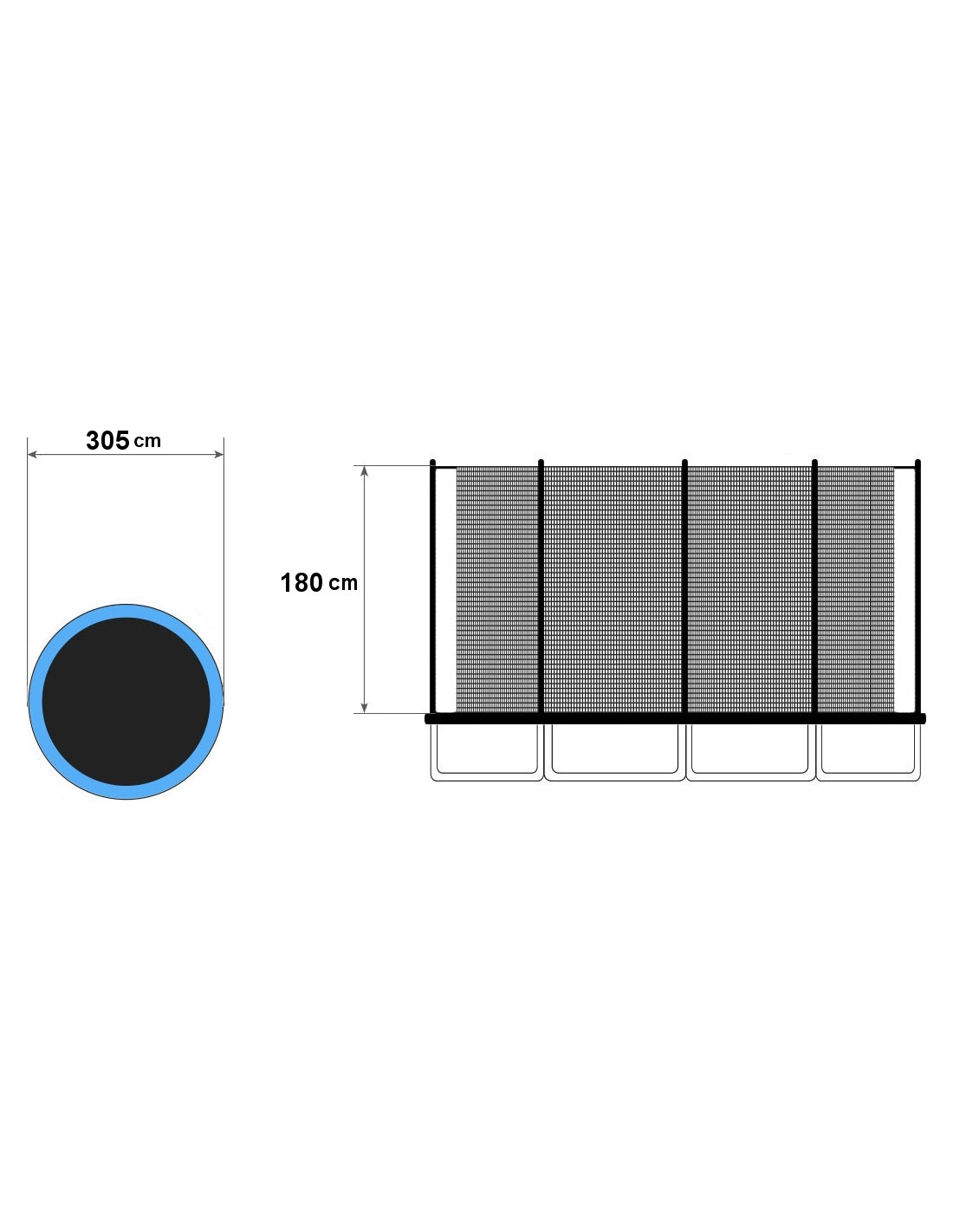 - Średnica trampoliny: 300/ 305/ 312 /10 ft