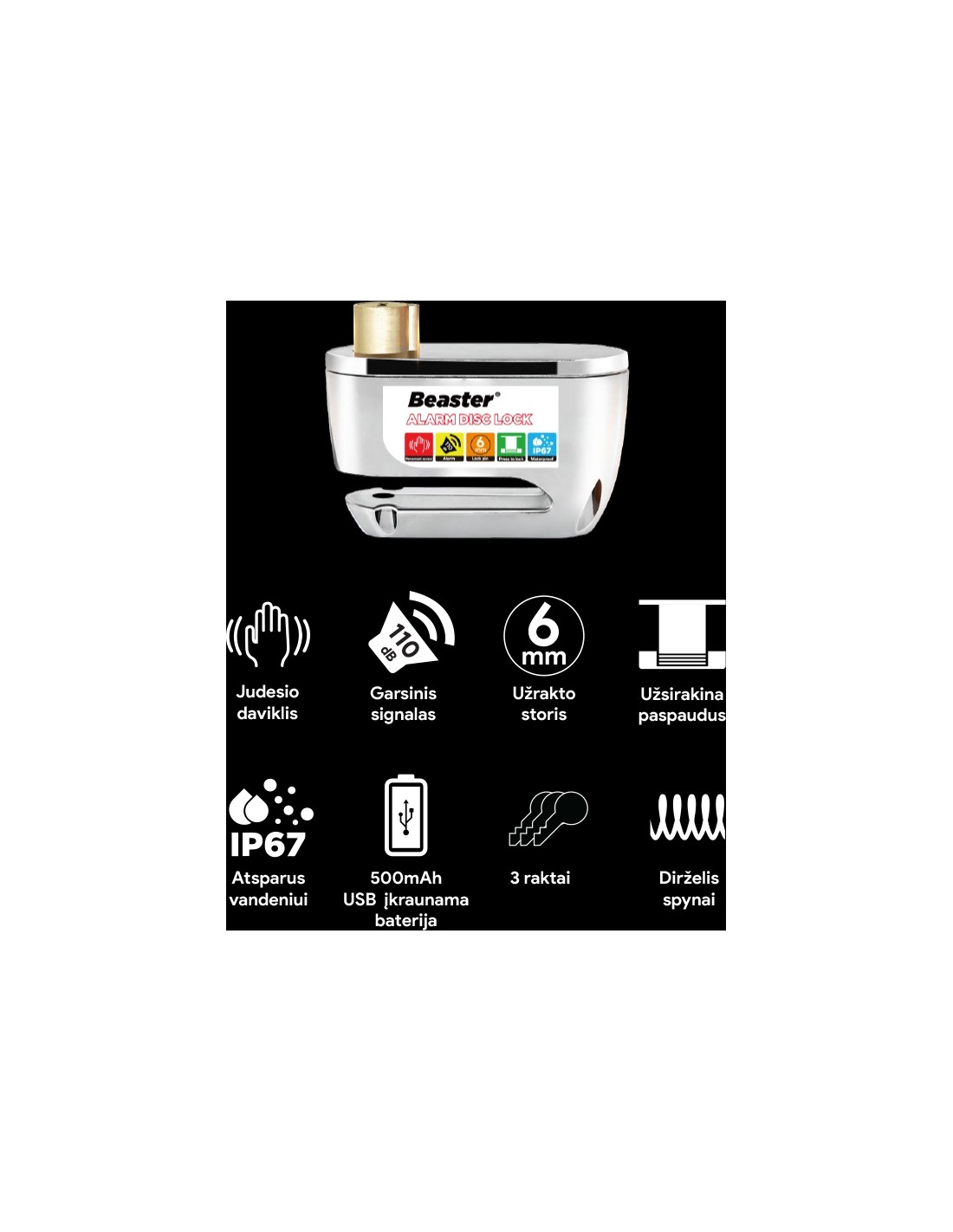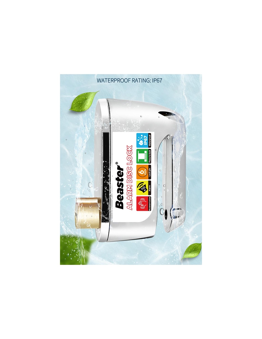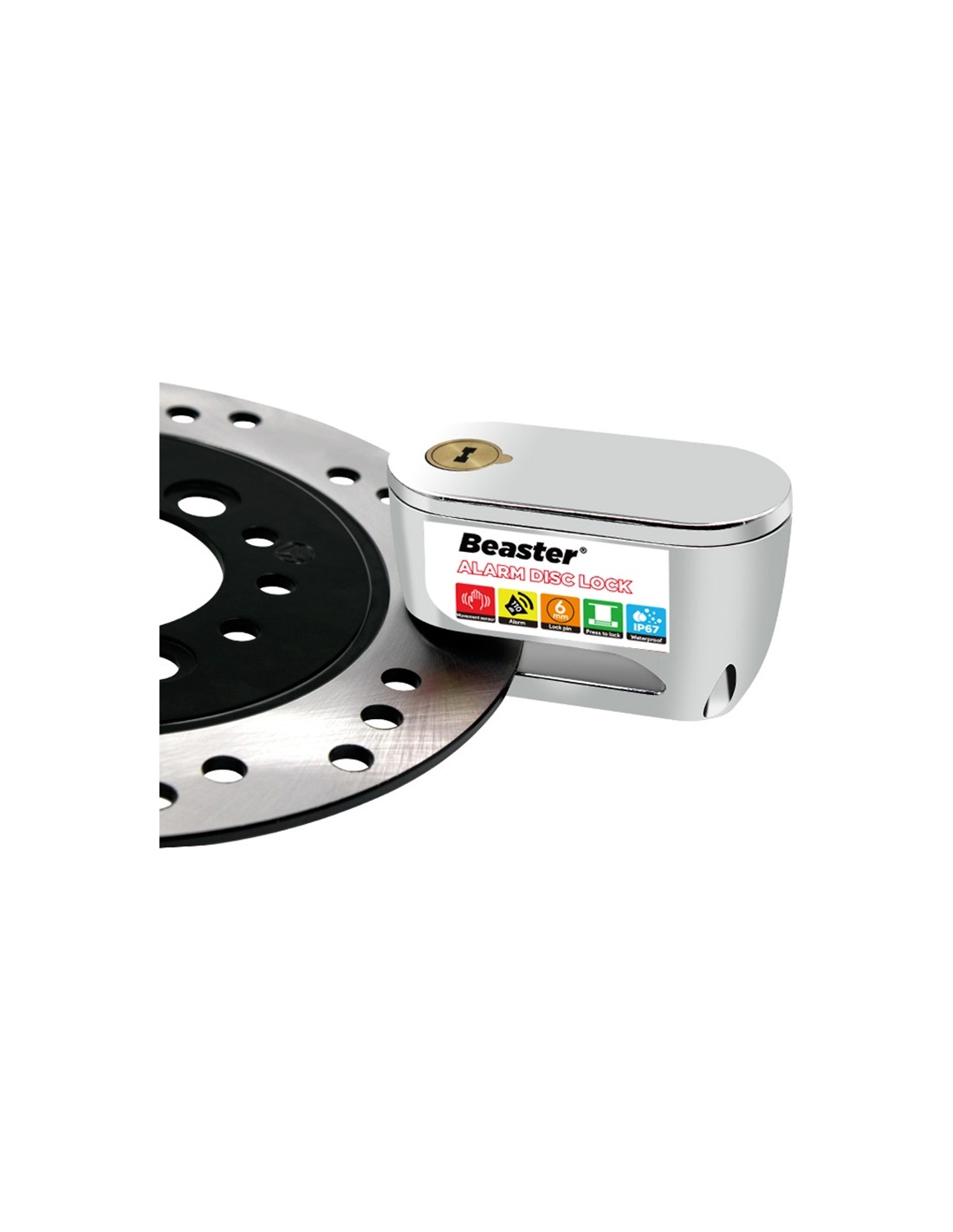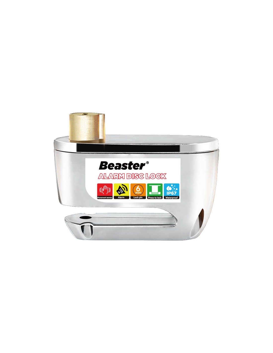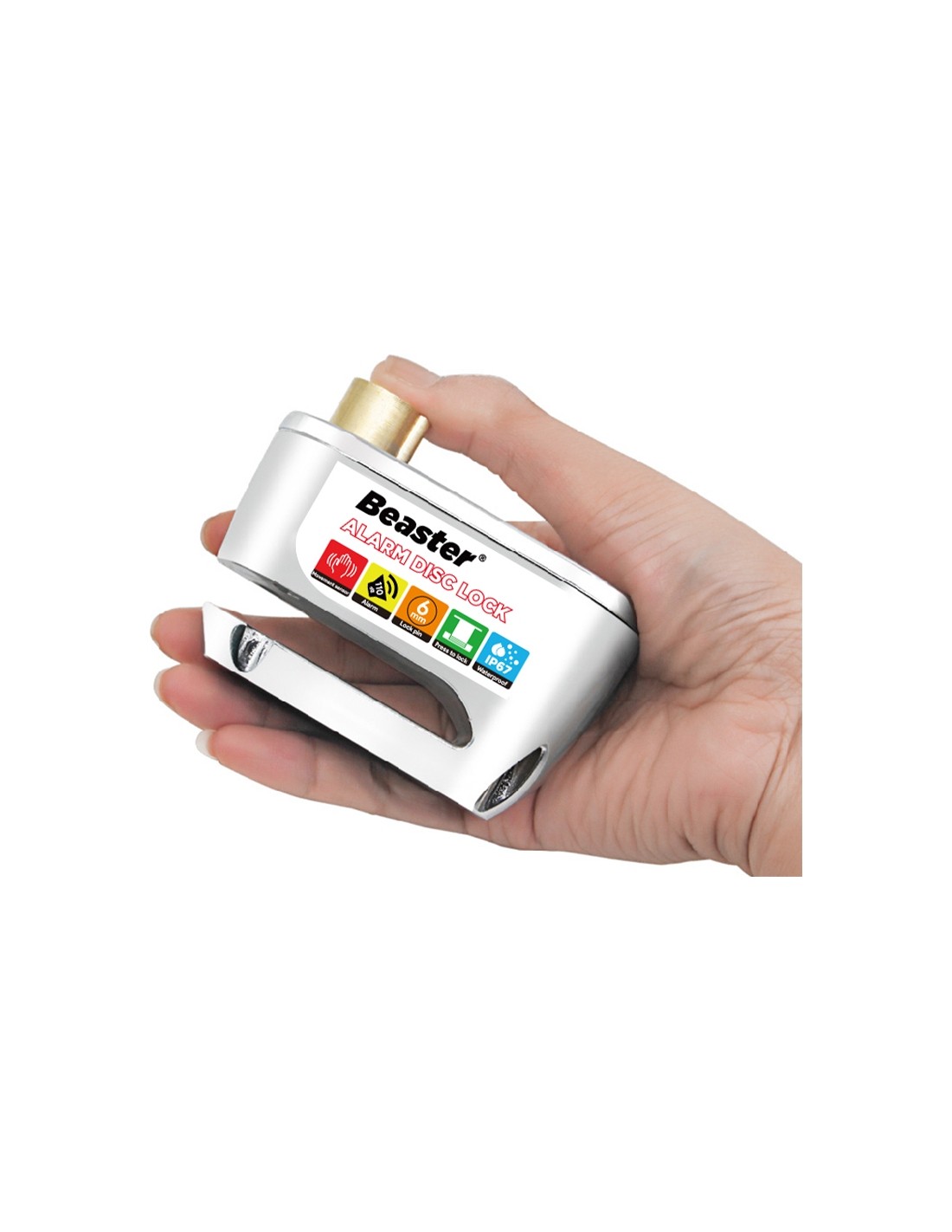 „Beaster“ stabdžių disko užraktas su signalizacija užtikrins saugų jūsų elektrinio paspirtuko laikymą. Su šiuo nuo judesio aktyvuojamos signalizacijos užraktu jūs jausitės visiškai saugūs. Užrakte įmontuota 110 decibelų signalizacija, kurią taip pat galima ir išjungti, tokiu atveju užraktas bus naudojamas be signalizacijos. Šis stabdžių užraktas tinka paspirtukams su diskiniais stabdžiais.