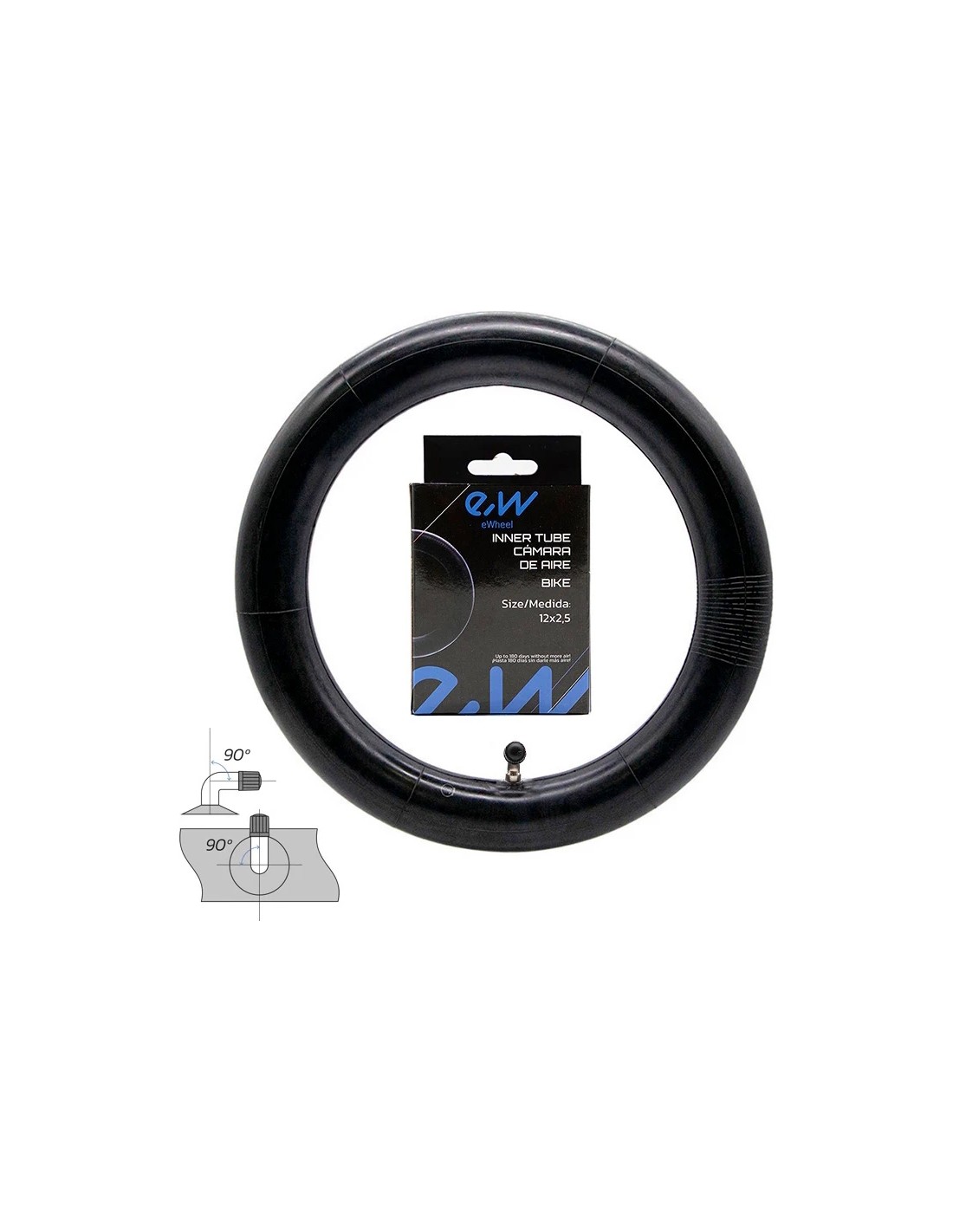 The Tube Ewheel 12” is made of a high-quality material and ready for immediate use. It’s equipped with a 90-degree Schrader valve and is compatible with many e-scooters, children’s bikes, strollers, and wheelchairs.