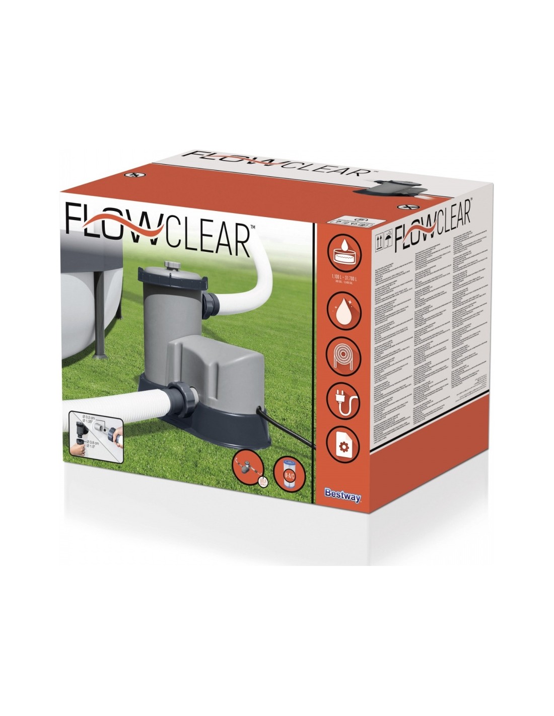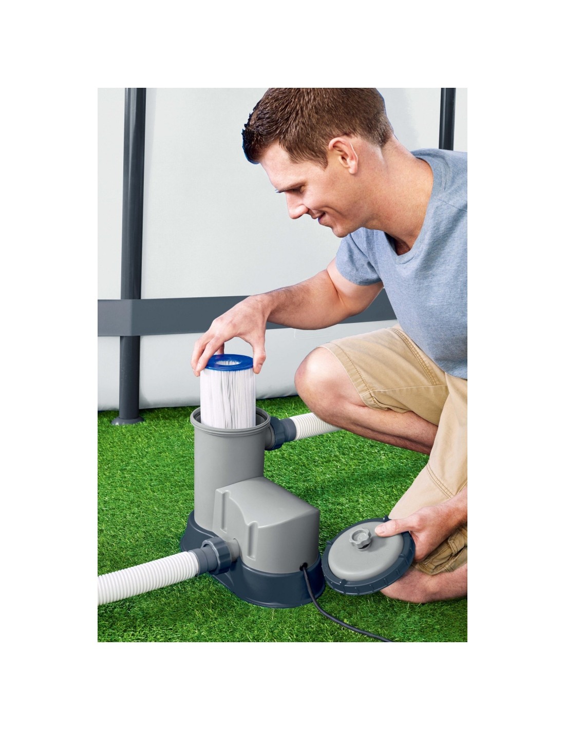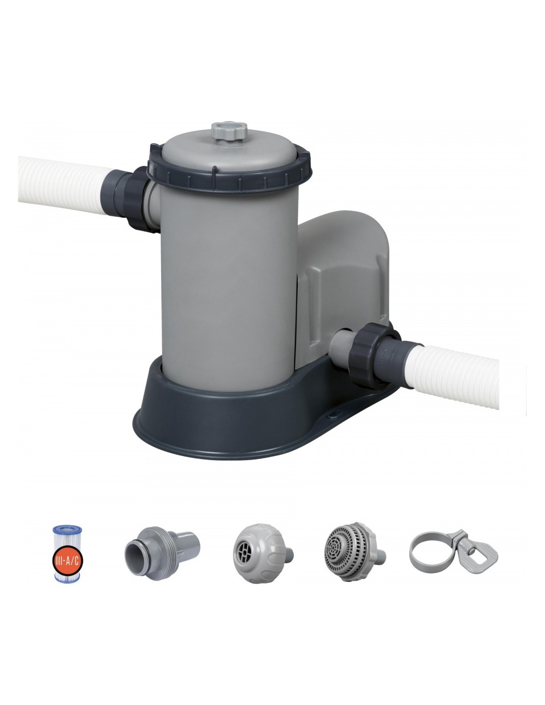 Filtrująca pompa basenowa od Bestway jest zasilana wkładami z wymiennych filtrów typu III. Dzięki temu użytkownik może mieć pewność, że woda w basenie zawsze będzie czysta oraz bezpieczna dla zdrowia – po zużyciu filtra wystarczy w łatwy sposób go wymienić.