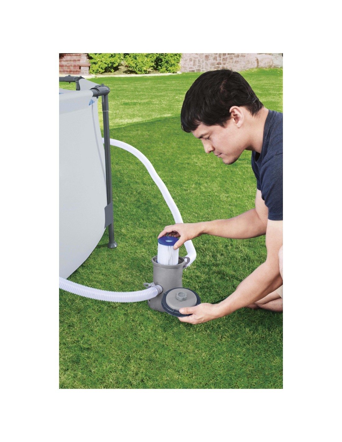 Instalacja pompy jest szybka, dzięki czemu można zacząć korzystać z basenu już w kilku prostych krokach. Pompa jest kompatybilna z wieloma modelami basenów nadziemnych. Do prawidłowego działania wymaga filtra wymiennego typu I.