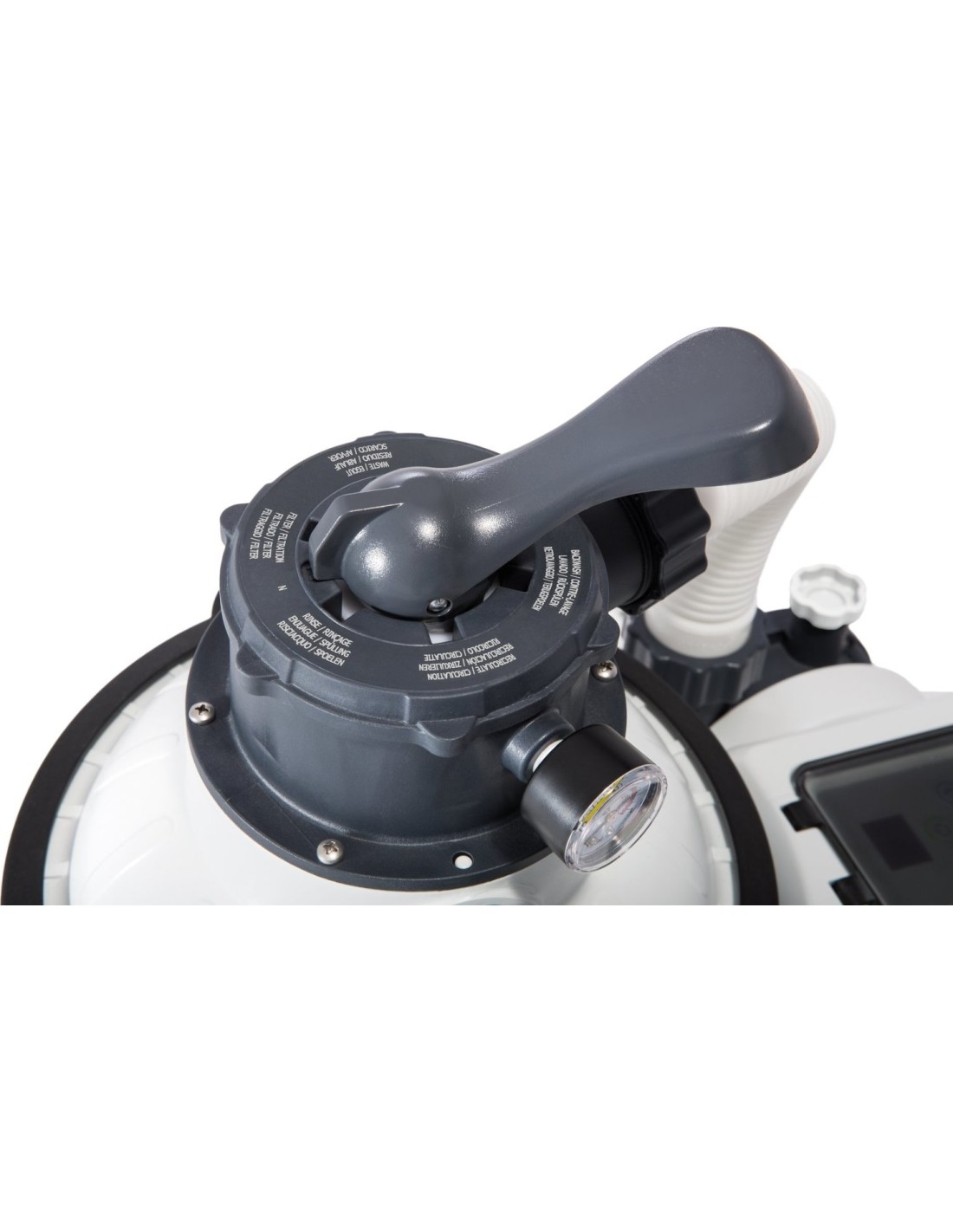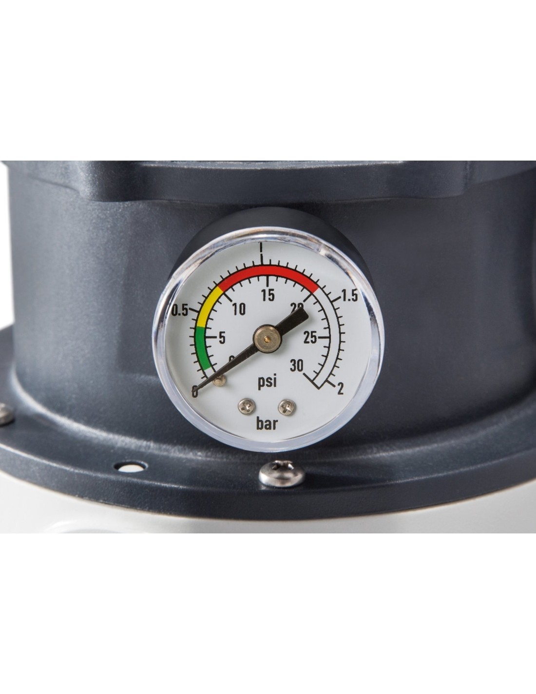 Pompa piaskowa wyposażona w mocny, wydajny silnik. Posiada w sobie ciśnieniomierz, 6 stopniowy zawór sterujący oraz wbudowany zegar-timer, dzięki któremu można nastawić czas jej działania.