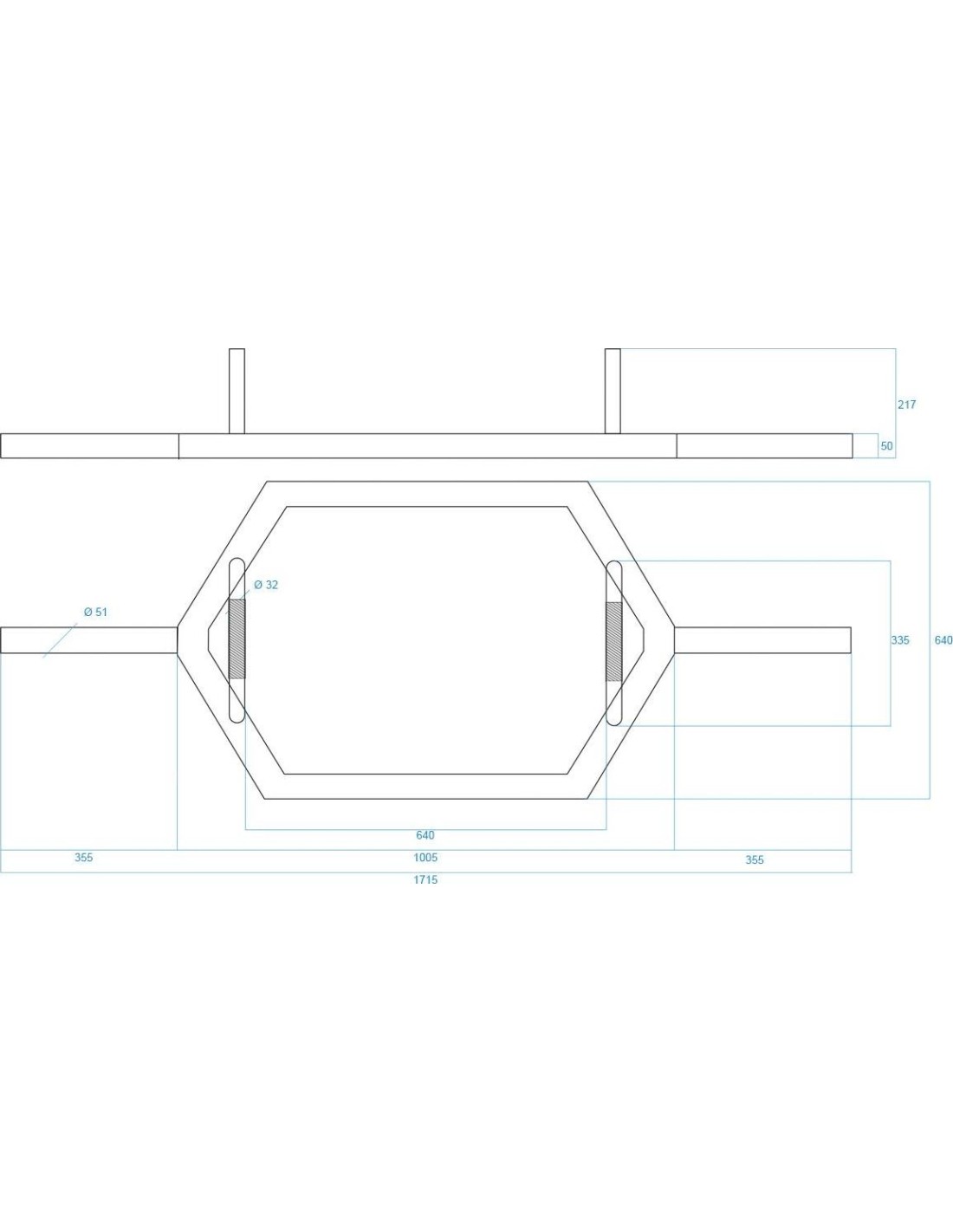 GHX02B HMS is a hexagonal Olympic bar designed for the strength training. Used for deadlifts. Thanks to its shape and arrangement of the handles during the workout the bar stays at the same position as our body, contrary to a casual barbell, where the bar stays in front of our legs. Such a position makes it easier to make a deadlift, in particular at the beginning of the adventure with this exercise. The bar is also perfect for shrugs and for a farmer’s walk because it does not block the movements when it is held. The GHX02B HMS cooperates with weights of 51 mm diameter. Using varied plates for the bar a user can adjust a workout for his/her needs. Specification: Material: chromed steel Grip: treated Weight diameter: 51 mm Grip diameter: 32 mm Overall length: 171.5 cm Width: 64 cm Internal width: 54 cm Span of the grips: 65 cm Maximal load: 450 kg Net weight 28 kg Remarks: Gwarancja 24 miesiące