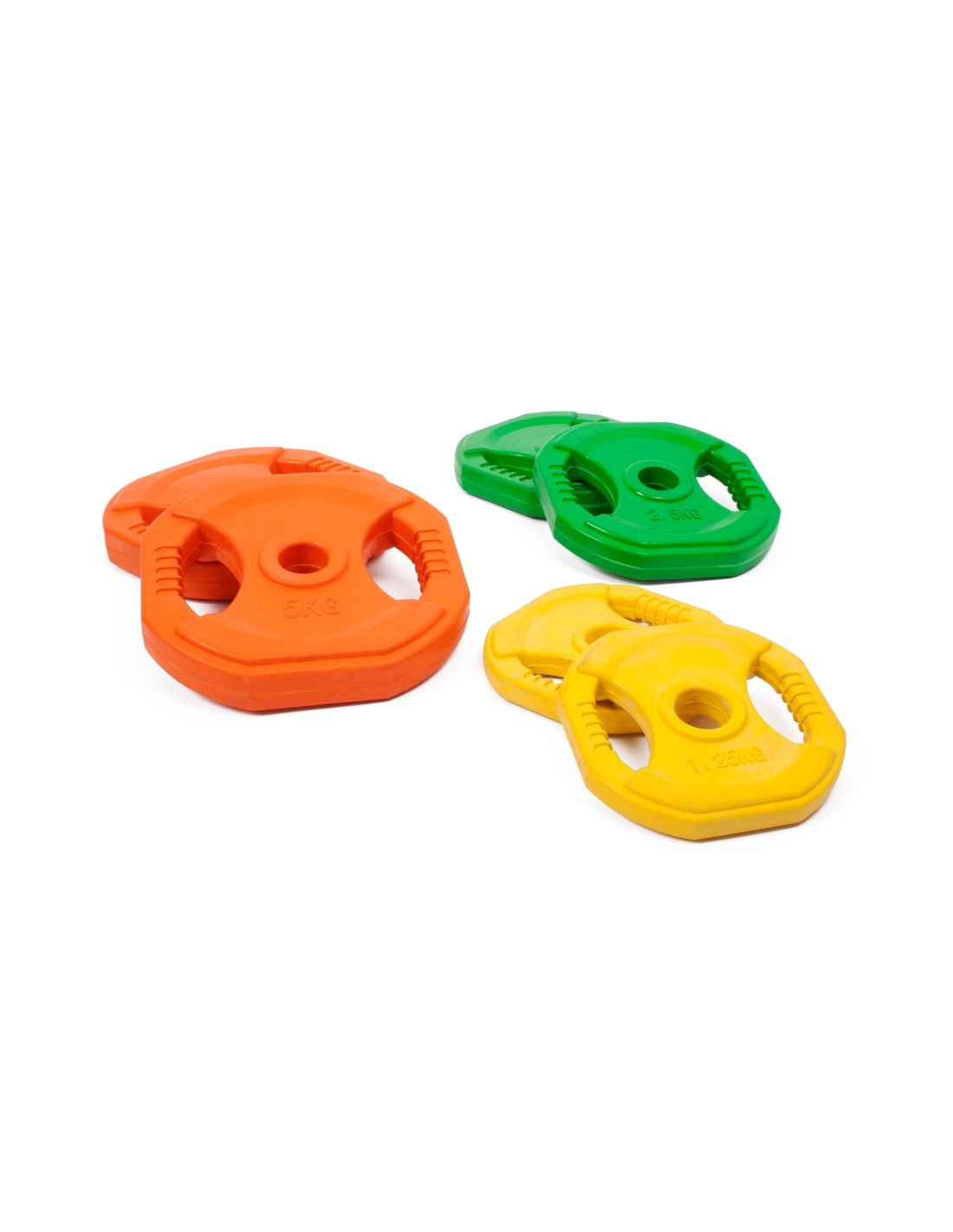 • Rubber plates: 2 x 5 kg, 2 x 2.5 kg, 2 x 1.25 kg