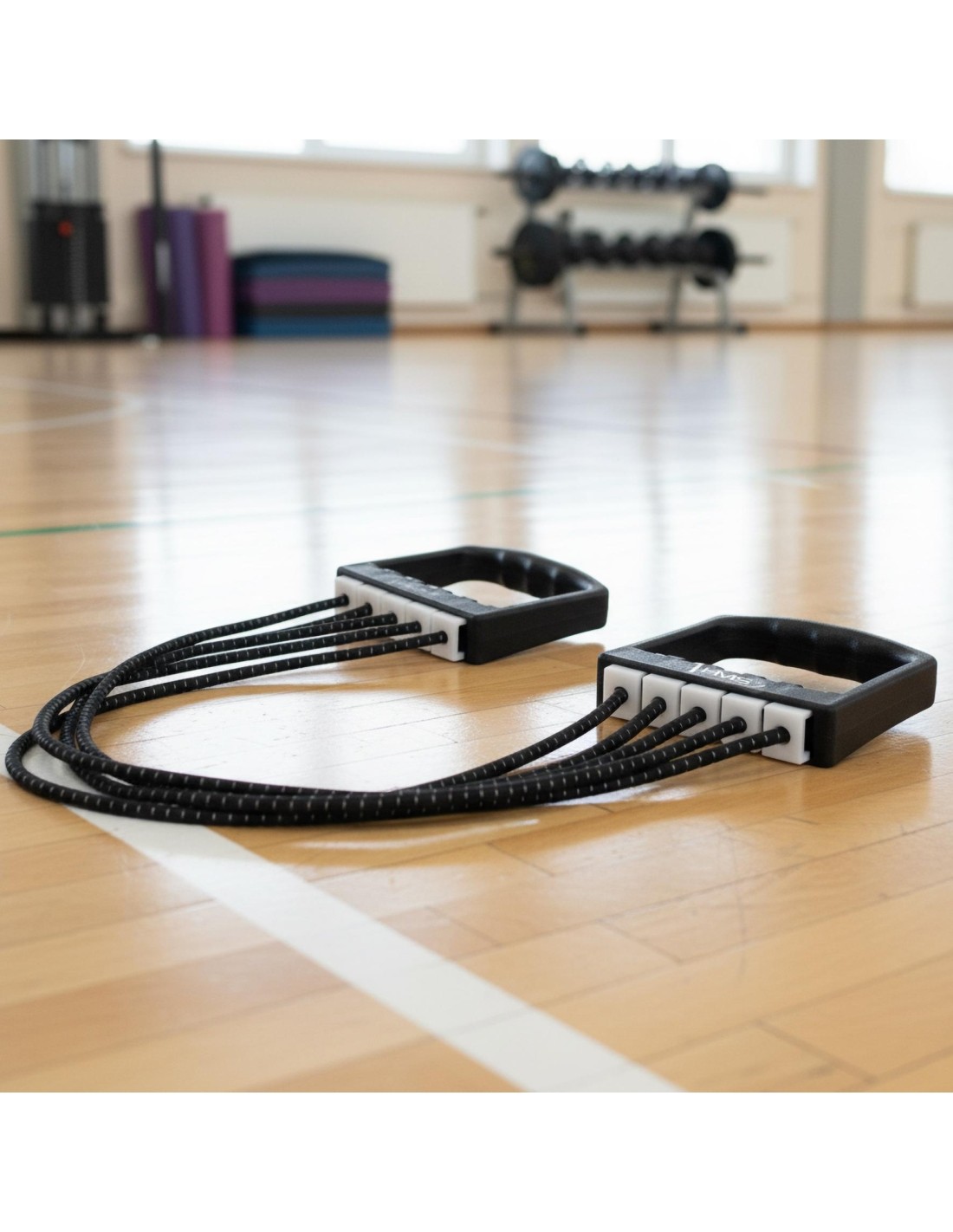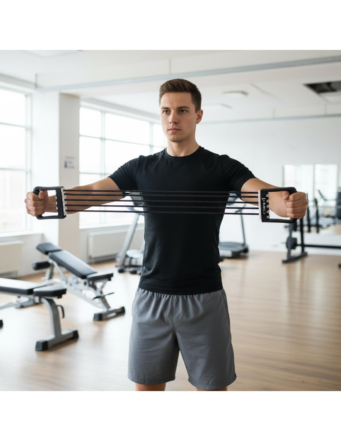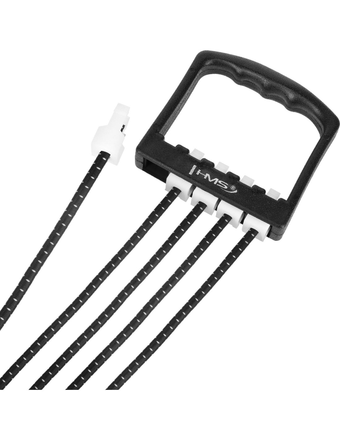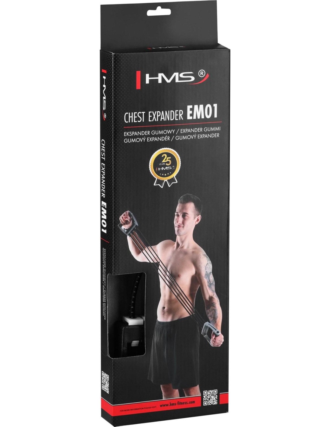 EM01 HMS - to przyrząd do ćwiczeń górnych partii mięśniowych. Składa się z pięciu lin zamocowanych do dwóch uchwytów wykonanych z wytrzymałego tworzywa. aciągi ekspandera powstały z specjalnej gumy. Materiał posiada zwiększoną wytrzymałość na rozciąganie. Siłę oporu reguluje się poprzez założenie odpowiedniej ilości lin. EM01 HMS jest skutecznym sposobem wzmocnienia i wysmuklenia ramion, klatki piersiowej, brzucha, pleców oraz miednicy. Ekspander może być stosowany do ćwiczeń ogólnorozwojowych oraz rehabilitacyjnych.