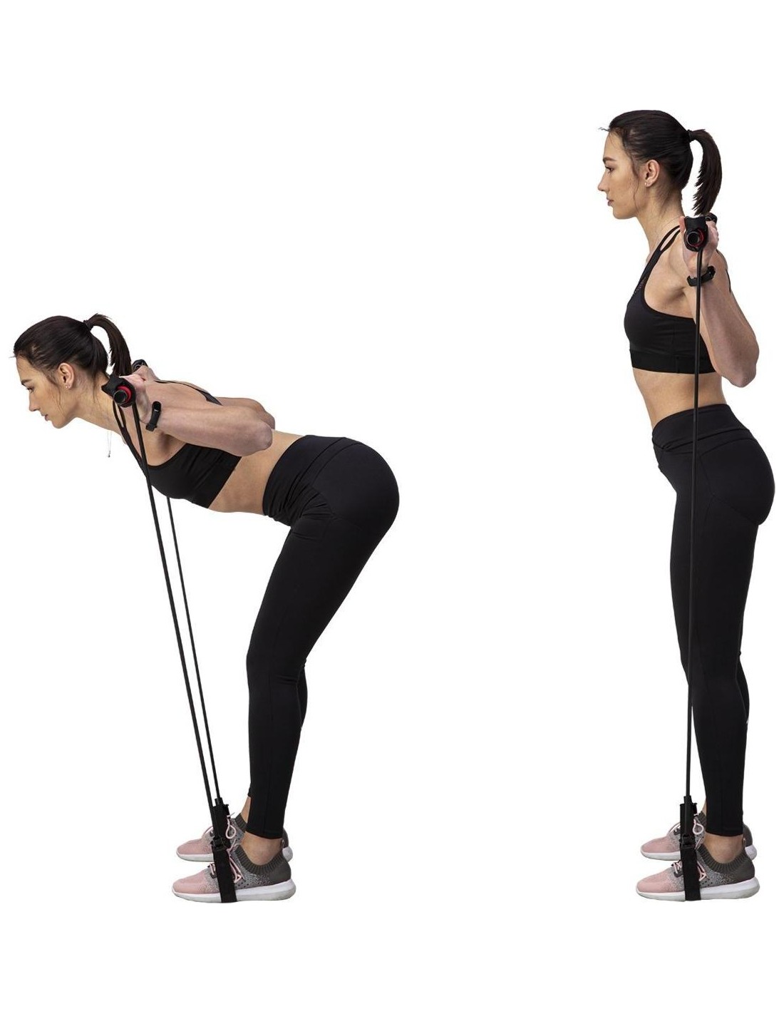 DC30 wykorzystamy, do treningu zarówno górnych, jak i dolnych partii mięśniowych. Znajdzie swoje zastosowanie, na każdym stopniu zaawansowania ćwiczącego. Przy jego pomocy, wykonamy także ćwiczenia powiększające mobilność, zakres ruchu w stawach oraz koordynację ruchową. Ćwiczenia możemy wykonywać, przez założenie gum na stopy i wykonując ruchy drążkiem, bądź też na odwrót, przytrzymując drążek nogami i rozciągać gumy.