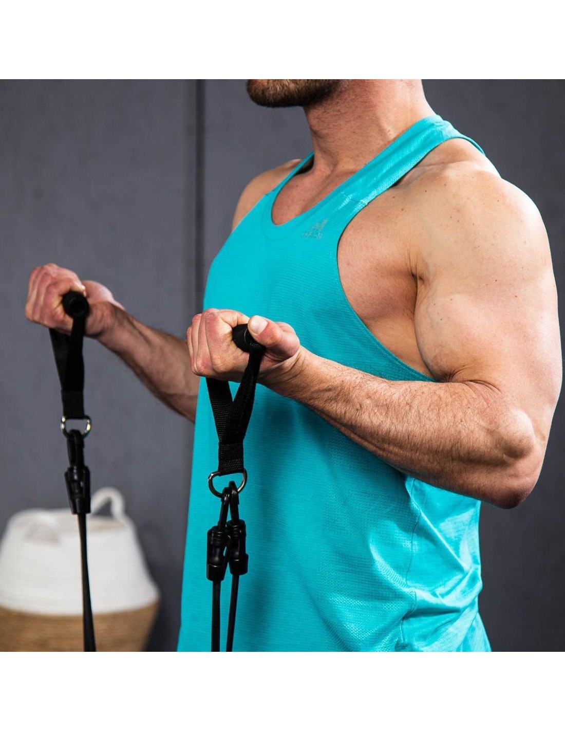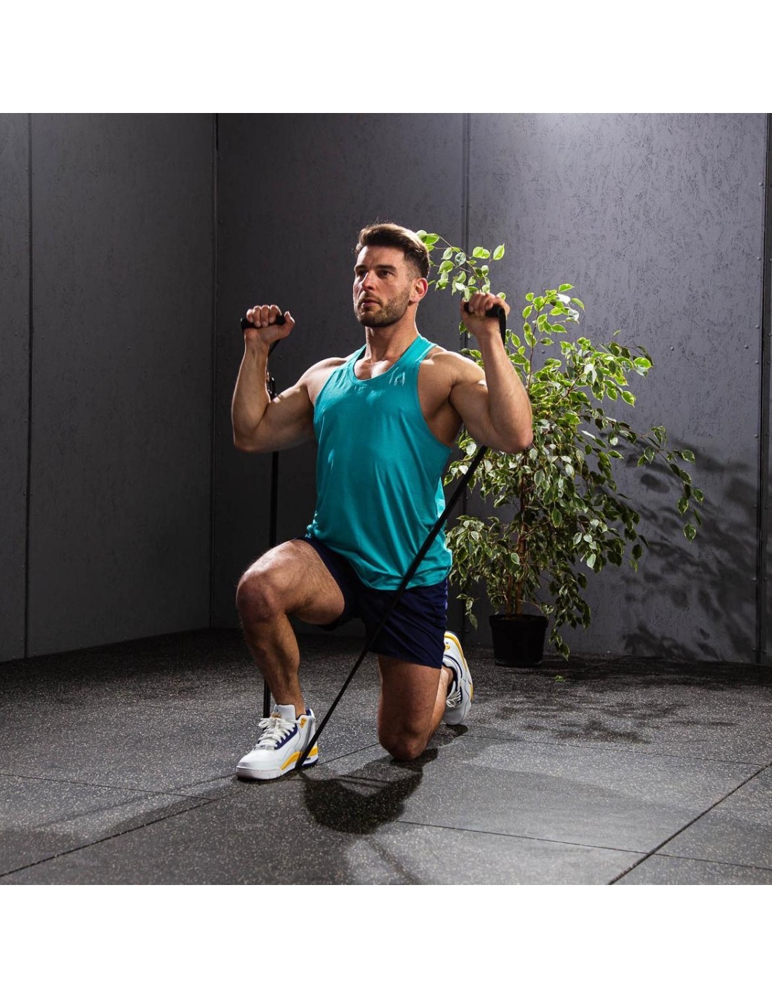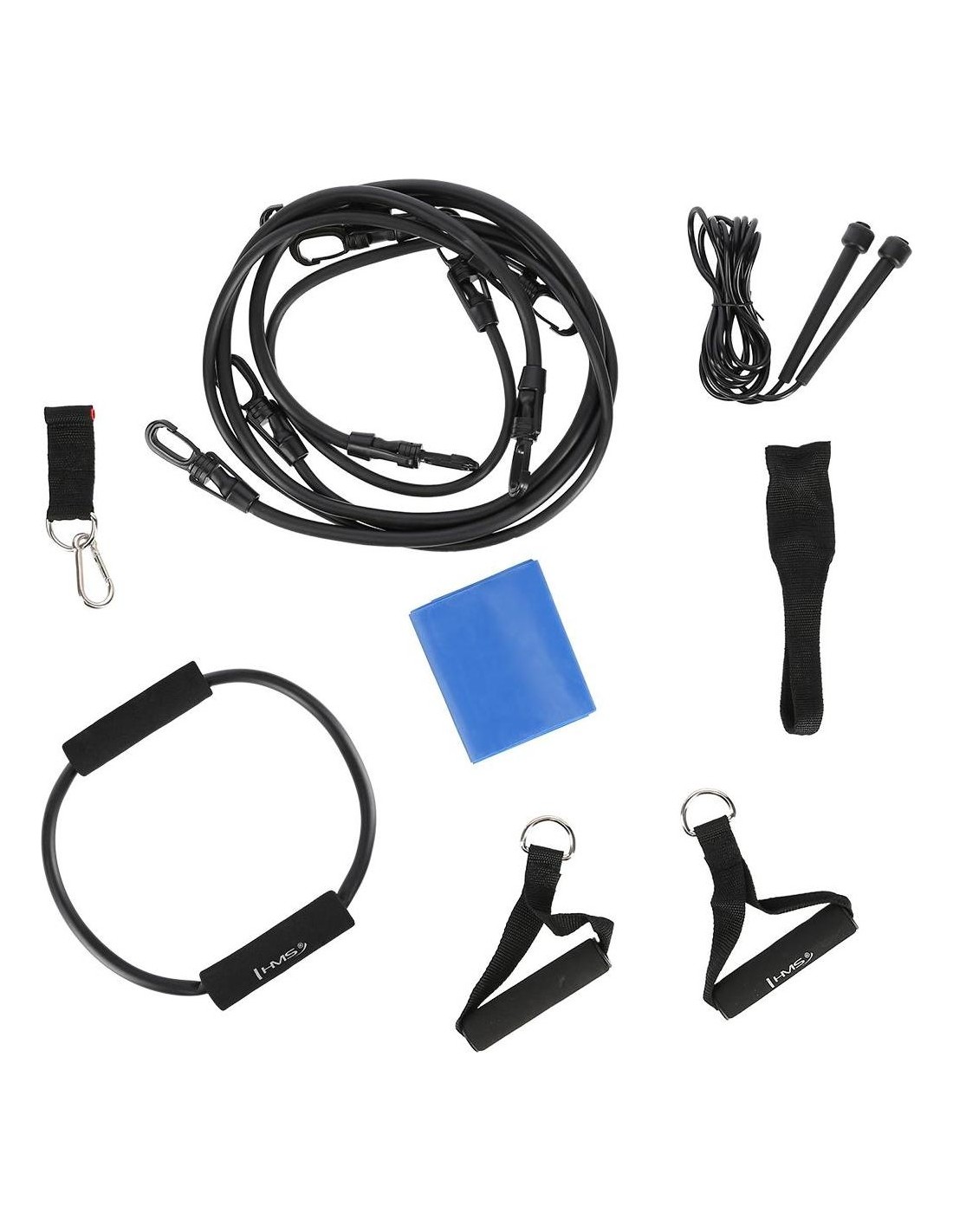 TX02 HMS - to zestaw do ćwiczeń. Produkt wykorzystuje masę ciała użytkownika do poprawienia jego sprawności i siły. Wysoka jakość, przemyślana konstrukcja i trwałość są gwarantem udanego treningu w każdych warunkach. W skład zestawu wchodzą cztery gumy oporowe, jedna guma elastyczna, jedna opaska oporowa, dwa piankowe uchwyty na ręce, jeden uchwyt na kostkę, jeden uchwyt pod drzwi oraz skakanka. Przyrząd to sposób na nowoczesny trening utrzymany w duchu CrossFitu. Poszczególna para linek ma inną sztywność co pozwala wybrać różną intensywność ćwiczeń oporowych. Na każdej z nich znajduje się uchwyt, który umożliwia realizację kompleksowego treningu siłowego wszystkich grup mięśni.