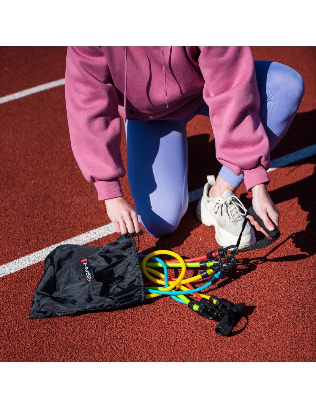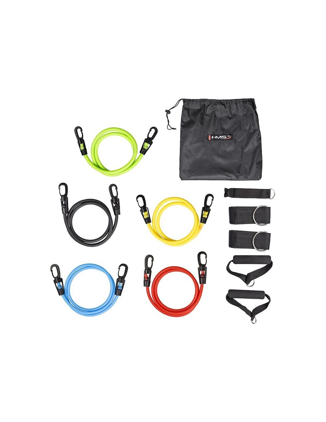 TX30 HMS - to zestaw gum i akcesoriów do ćwiczeń. Każda z nich ma zwiększoną wytrzymałość dzięki czemu są odporne na pęknięcia oraz zachowują swoje właściwości oporowe nawet po wielu miesiącach intensywnych treningów. Gumy wykorzystują masę ciała użytkownika do poprawienia jego sprawności i siły. Wysoka jakość, przemyślana konstrukcja i trwałość są gwarantem udanego treningu w każdych warunkach. W skład zestawu wchodzi 5 gum oporowych, dwa uchwyty na ręce, dwa uchwyty na kostkę oraz jeden uchwyt pod drzwi.