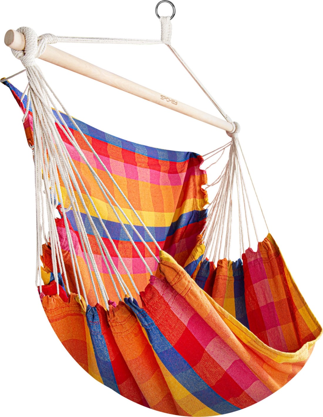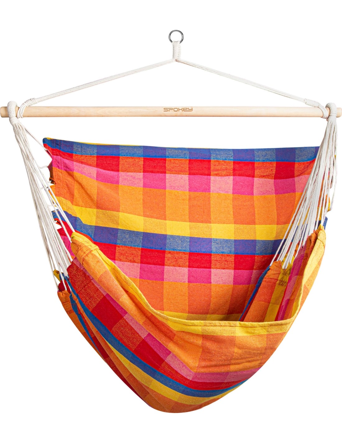 Do you dream of a moment of relaxation while enjoying delicious coffee with a book in your hand? Choose a convenient hammock that allows you to rest comfortably outdoors in the garden, terrace or balcony, and in the apartment, e.g. in the living room and bedroom. The Spokey BENCH DELUXE Brazilian chair can be hung both on a tree branch and on a properly mounted hook to the ceiling or beam. It is a model that takes up much less space than standard garden hammocks, and is also wider (140 cm), so that it can be used by two people at the same time.