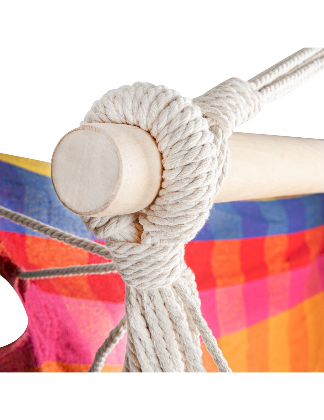 - it has a reinforced structure with a wooden beam, which ensures that the hammock is always safe and stable,