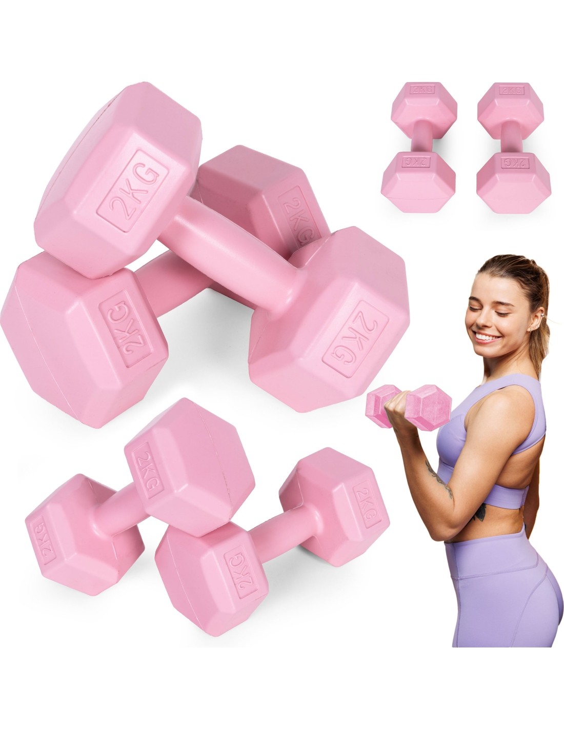 Hantle sześciokątne zestaw 2x2 kg ciężarki do ćwiczeń obciążniki fitness różowe ModernHome