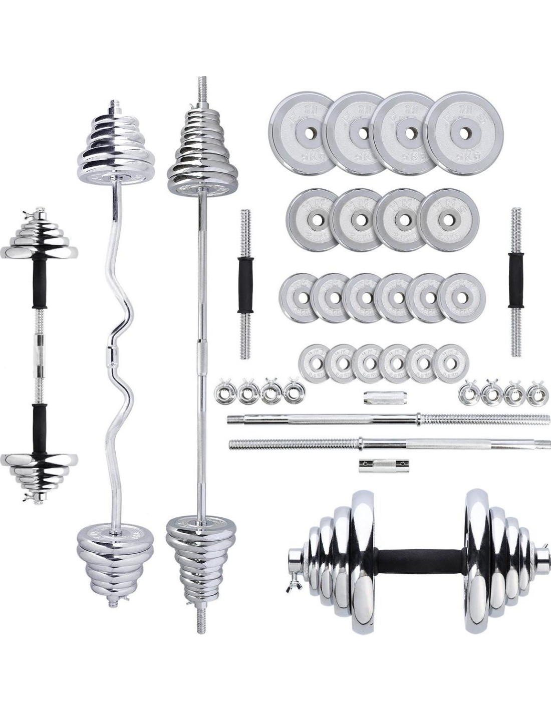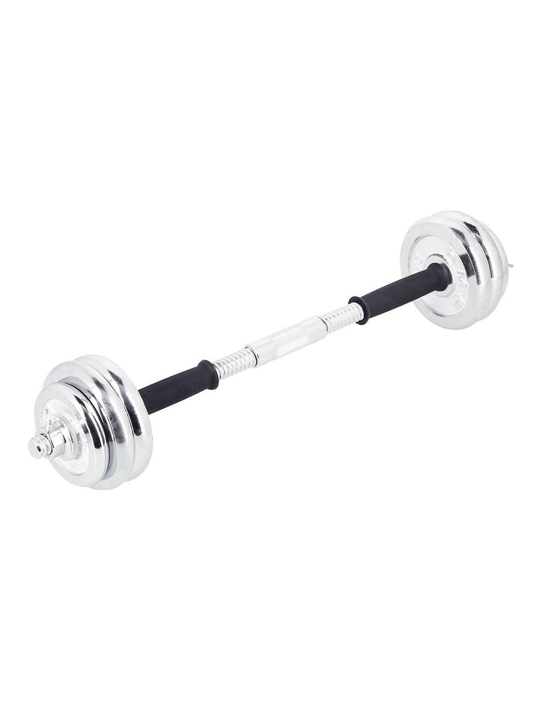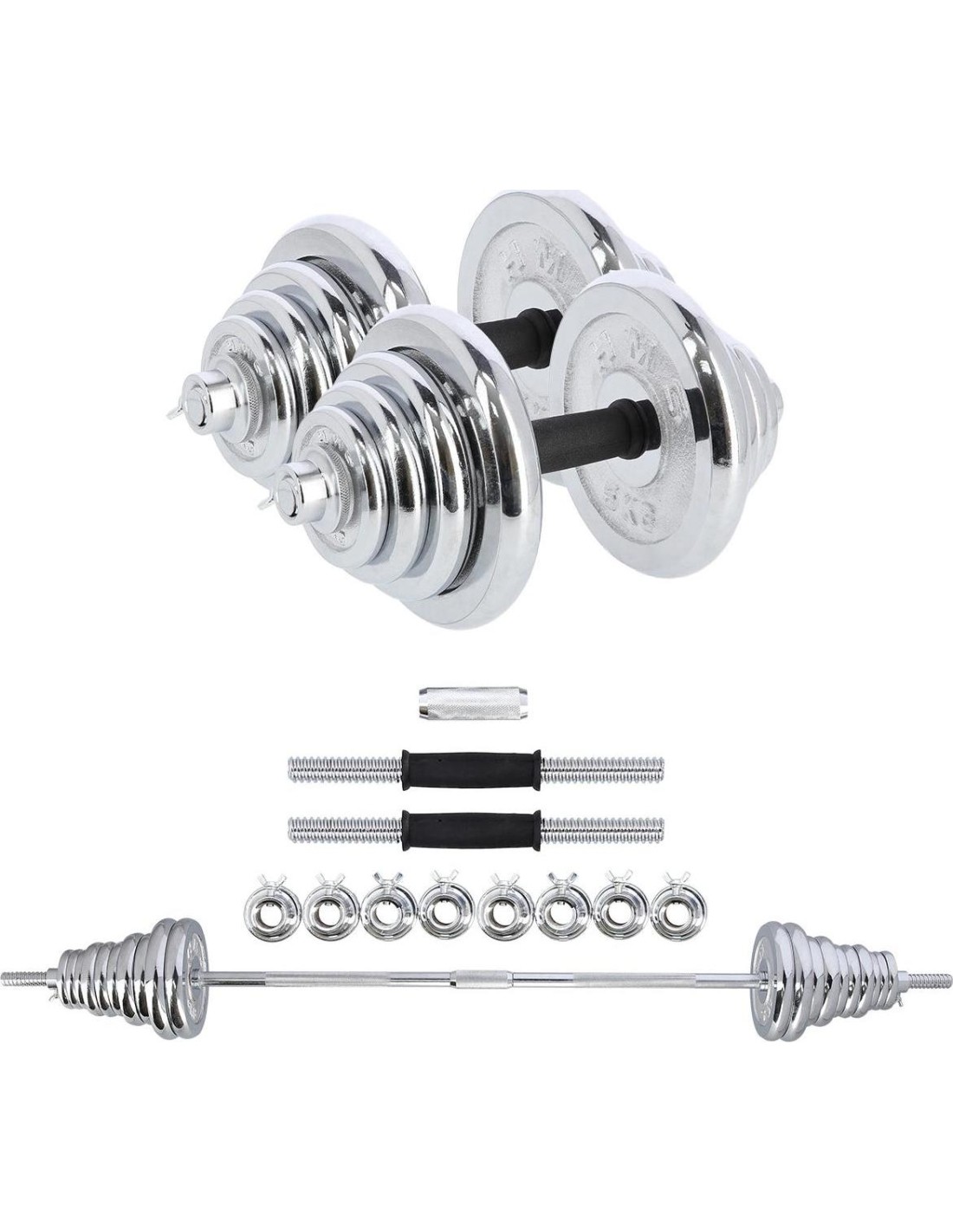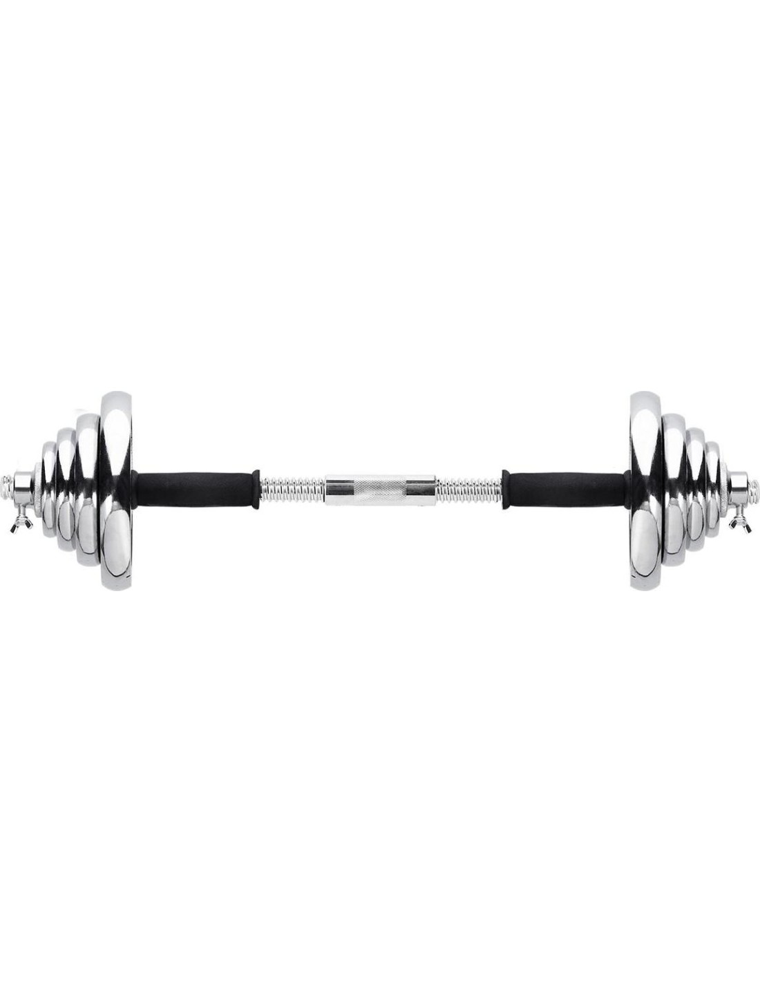 STC55 HMS, to zestaw dwóch sztangielek z wymiennym obciążeniem, skręcanego długiego gryfu, łamanego gryfu oraz możliwością złączenia dwóch krótkich gryfów w jeden średni. Mnóstwo konfiguracji, mnóstwo możliwości treningowych, a to wszystko w jednej walizce. Sztangielka z wymiennym obciążeniem, to klasyka, a zarazem niezbędnik każdej domowej siłowni. W połączeniu z gryfami daje niezliczone możliwości ćwiczeniowe. Wysokiej jakości chromowana stal daje gwarancje dużej wytrzymałości, a co za tym idzie możliwości użytkowania sprzętu przez lata. Zaciski oraz idealnie dopasowana średnica otworu talerzy, ułatwiają szybką zmianę obciążenia, a zarazem pewne i stałe ułożenie na gryfie. Zaciski są gwintowe, jednak posiadają dodatkowe wzmocnienie, w postaci dokręcanej śruby. Dzięki temu, obciążenie w żaden sposób nie przesuwa się podczas ćwiczeń. W skład zestawu wchodzą dwa krótkie gryfy, długi skręcany gryf, gryf łamany, średni gryf, który powstaje po połączeniu dwóch krótkich, osiem zacisków i łącznie 20 talerzy obciążeniowych. Całość znajduje się w wygodnej walizce. Łączna waga zestawu to 55 kg, dlatego dla łatwiejszego transportu, walizka posiada kółka, co pomaga w przemieszczaniu się ze sprzętem. Połączenie sztangielek z gryfami, umożliwia przeprowadzenie kompleksowego treningu każdej grupy mięśniowej. Ćwicząc sztangą rozwiniemy swoją siłę i wytrzymałość, sztangielki wprowadzą do tego element niestabilności co pozwoli mocniej zaangażować mięśnie stabilizujące. Wykorzystując do tego gryf łamany i średni, zaangażujemy mięśnie pod różnym kątem, co uczyni trening bardziej efektywnym. Ćwicząc w ten sposób bez problemu zbudujemy stalowe mięśnie i idealną sylwetkę. Produkt jest odpowiedni zarówno dla zaawansowanych jak i początkujących użytkowników. Zacznij ćwiczyć już dziś, STC55 HMS to idealna propozycja dla domowej siłowni.