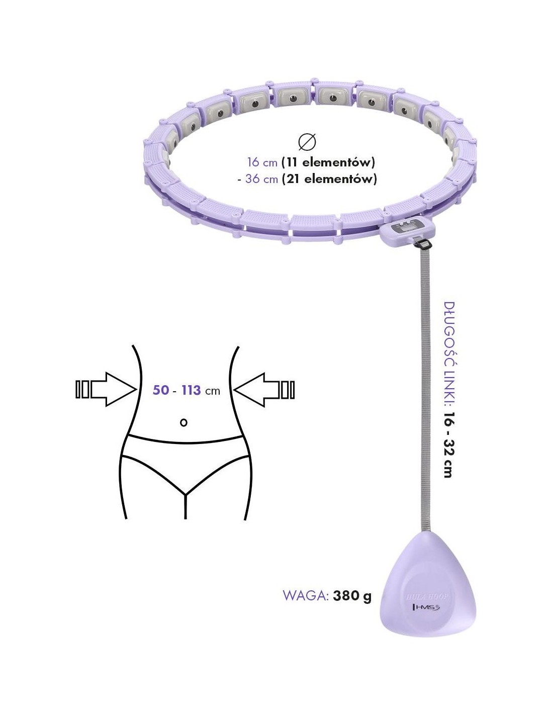 HHM14 HULA HOOP FIOLETOWY MAGNETYCZNY Z OBCIĄŻNIKIEM + LICZNIK HMS