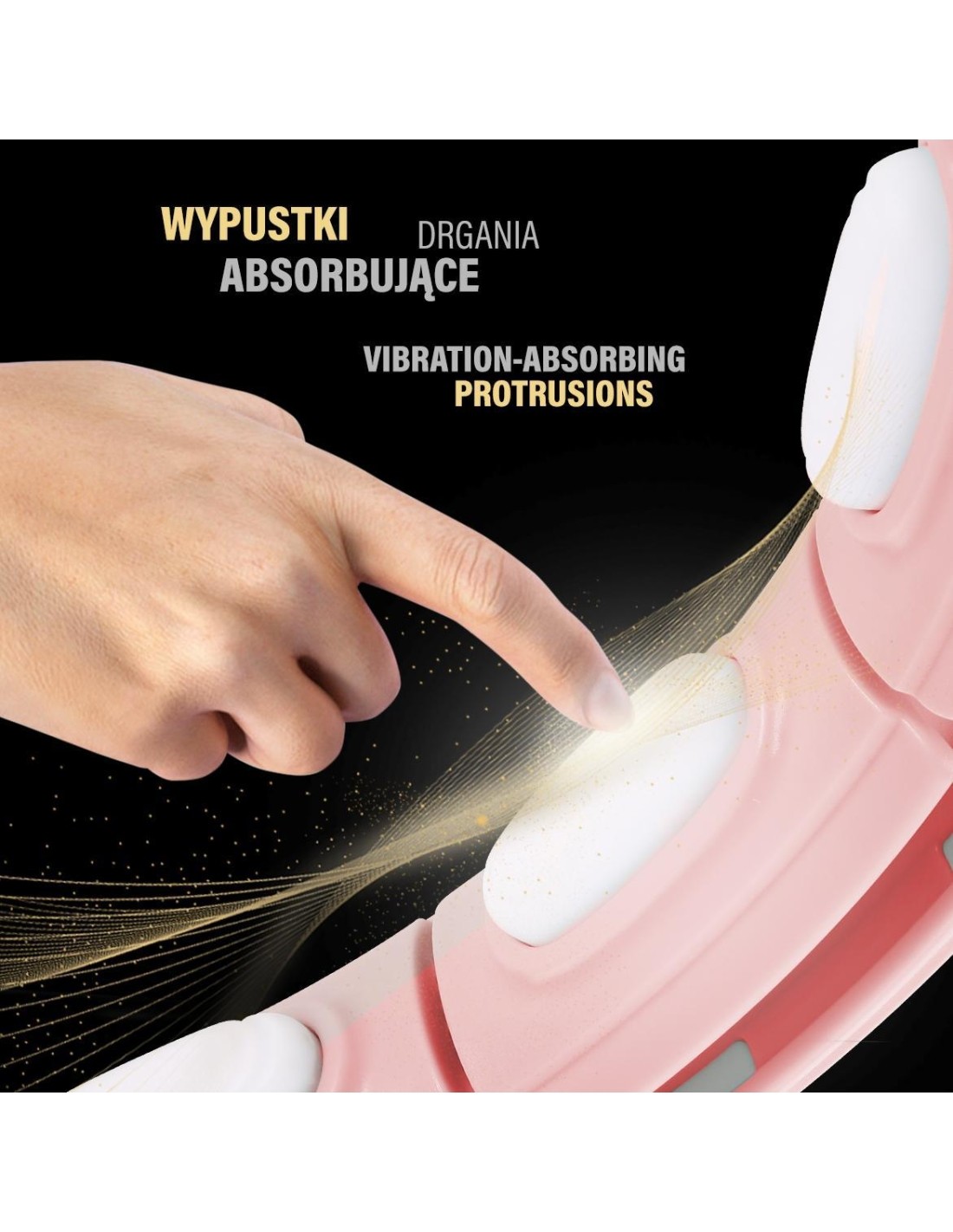 Dzięki 360-stopniowemu ruchowi sprężyny umieszczone w głowicach na obwodzie pętli doskonale amortyzują przeciążenia i dopasowują się do ciała, co zapewnia dodatkowy efekt masażu, dając przyjemne uczucie. Trójwymiarowa metoda masażu szybko stymuluje mięśnie. Wbudowane specjalnie zaprojektowane wypustki amortyzują wstrząsy, zapewniając komfortowy trening. Dozuj intensywność wibracji poprzez prędkość obrotów. Przede wszystkim trening z HHM15 wyszczupla brzuch i wysmukla talię. Przyczynia się również do redukcji tkanki tłuszczowej z okolic ud i pośladków. Dodatkowo pomaga wzmocnić obręcz barkową i ramiona. Kolejną zaletą, dzięki wzmocnieniu mięśni brzucha i tułowia, jest widoczna poprawa postawy użytkownika. Zaledwie pół godziny ciągłego treningu z HHM15 to odpowiednik godziny pływania i trzech godzin biegania! Specyfikacja Materiał: PVC, ABS, PP Kolor: różowy Regulacja obwodu: 12 - 16 elementów średnica wewnętrzna: 25 cm - 35 cm średnica zewnętrzna: 34 cm - 44 cm średnica pojedynczego elementu 4,5 cm talia: 78,5 cm - 110 cm Waga ładunku: 400g. Regulowana linka z obciążeniem: 20cm - 38cm Funkcje wyświetlacza LCD: czas, kalorie, liczba powtórzeń, prędkość obrotowa Wygodne zapięcie na klips Łożyska kulkowe, stal nierdzewna Amortyzacja wstrząsów: TAK Uwagi: Nie do użytku komercyjnego. Gwarancja: 24 miesiące.