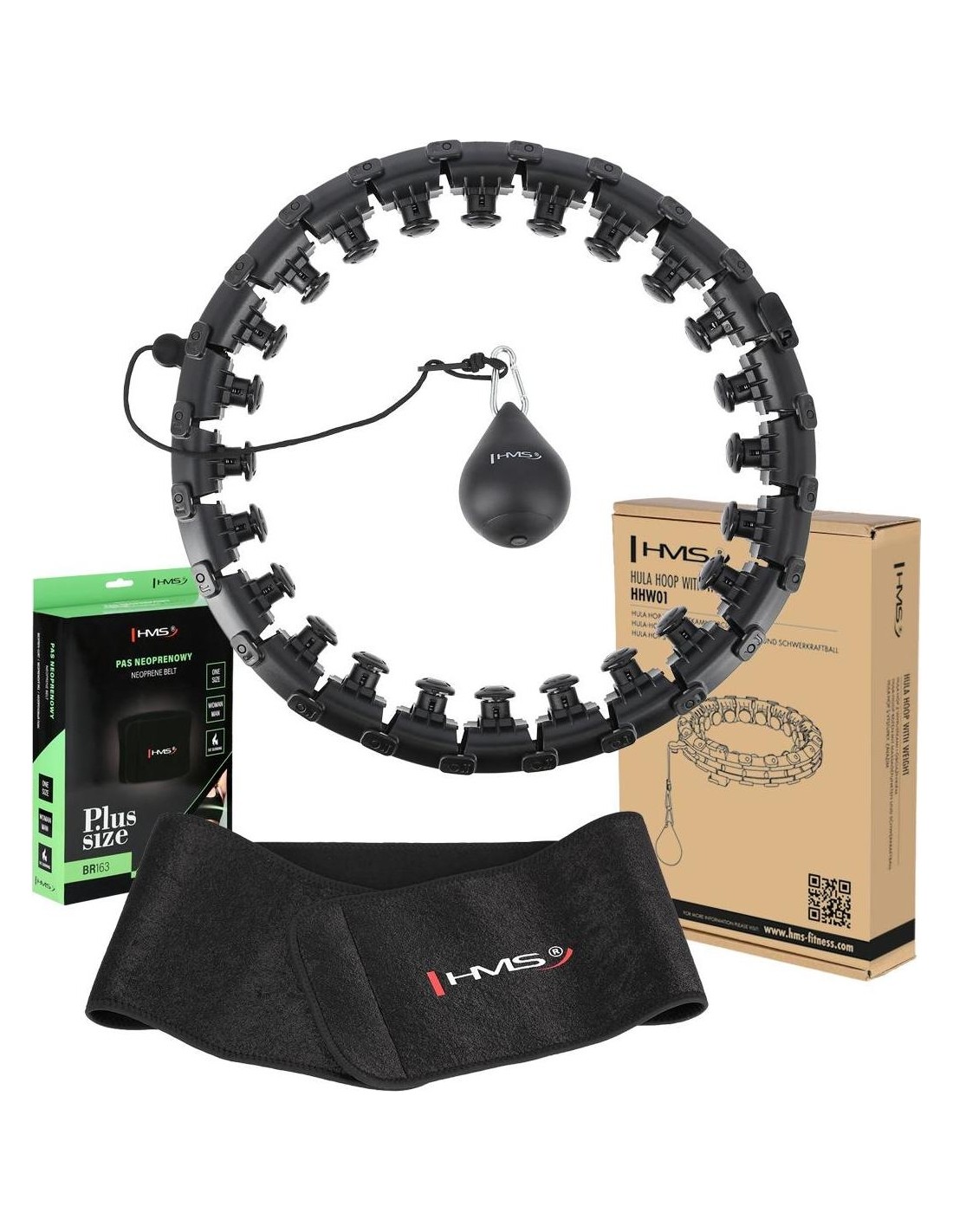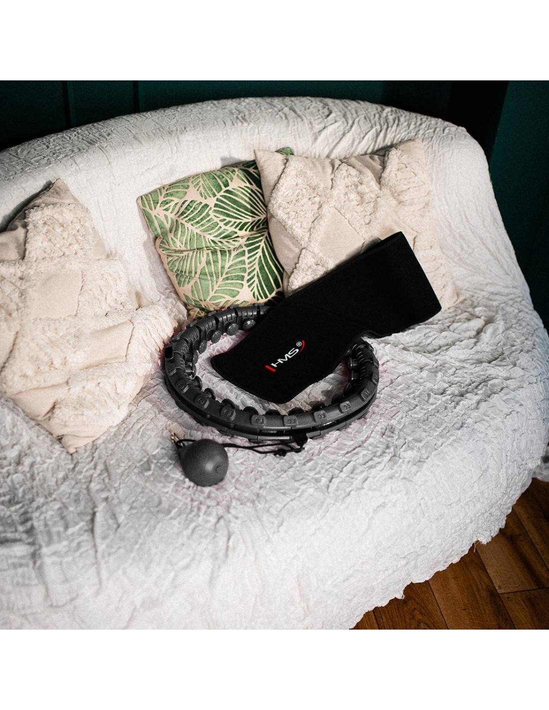 ZESTAW HULA HOOP PLUS SIZE HHW12 CZARNY Z OBCIĄŻNIKIEM HMS + WSPORNIK TALII BR163 CZERWONY