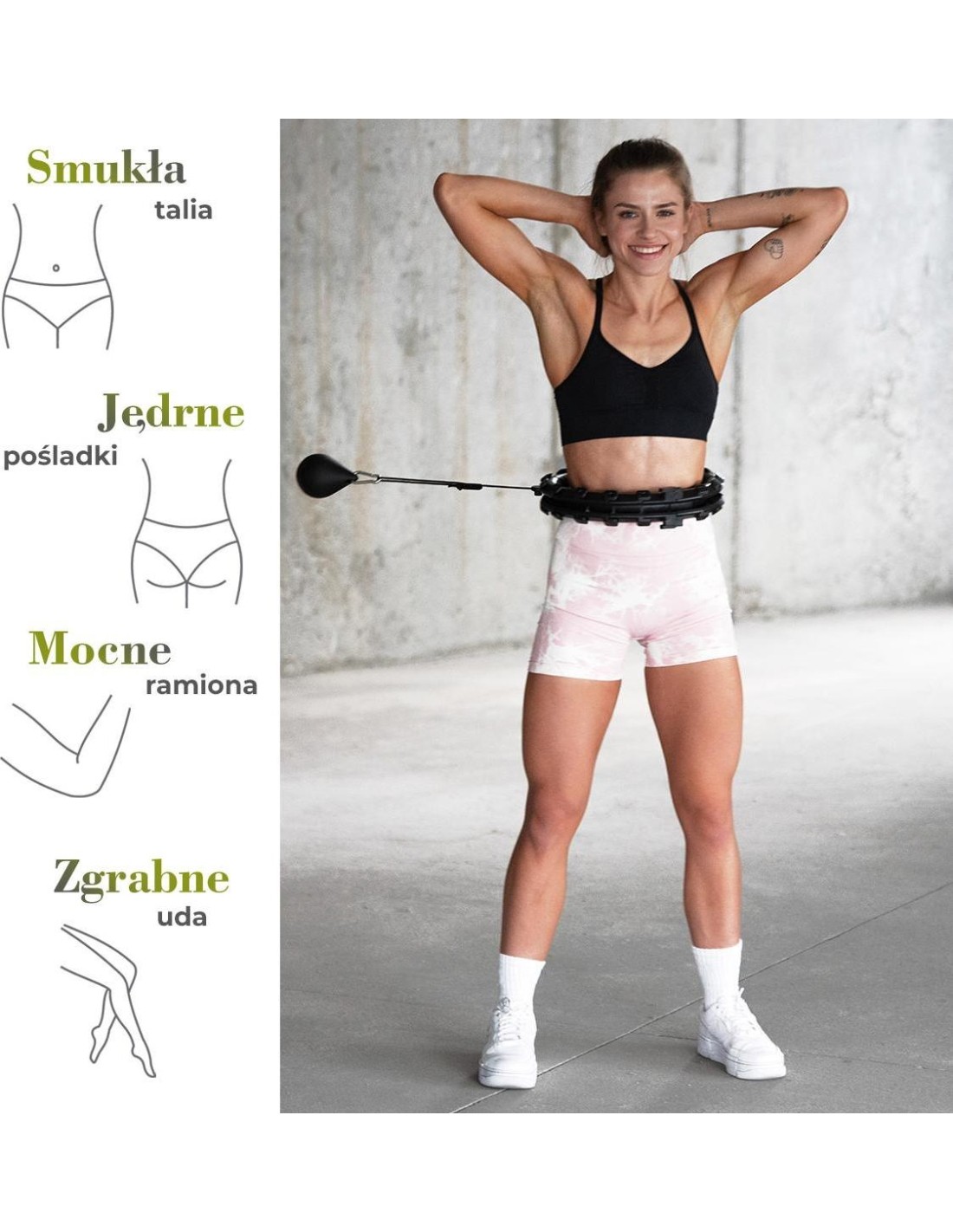 ZESTAW HULA HOOP PLUS SIZE HHW12 CZARNY Z OBCIĄŻENIEM HMS + PODPARCIE TALII BR163 CZERWONY HHW12 HMS Plus Size to regulowane hula-hoop z wypustkami pochłaniającymi wibracje i piłką grawitacyjną do ćwiczeń fitness. Umożliwia jednoczesny trening i masaż talii w zakresie 360 stopni. Jest idealny m.in. do wzmocnienia i ujędrnienia gorsetu mięśniowego. Dzięki regulowanemu obwodowi HHW12 nigdy nie spadnie podczas ćwiczeń, dlatego domowy trening cardio może być długi i przyjemny, co gwarantuje jeszcze lepsze efekty! W zestawie z pasem wyszczuplającym BR163 jeszcze szybciej osiągniesz wymarzoną sylwetkę. Rozmiar regulowany od XS do XXL! Dla kogo przeznaczony jest HHW12 Plus Size? HHW12 to idealny wybór dla osób o obwodzie talii powyżej 105 cm. Zwiększona możliwość regulacji HHW12 pozwoli trenować osobom o obwodzie talii od 48 do nawet 125 cm. Dzięki tak szerokiemu zakresowi regulacji sprzęt doskonale sprawdzi się również jako sprzęt rodzinny, na którym ćwiczyć będą mogli zarówno dorośli, jak i dzieci. Jak działa HHW12 Plus Size? Działanie HHW12 jest bardzo proste i intuicyjne. Jest to zamknięta pętla, która posiada szynę z przymocowaną kulą grawitacyjną (obciążnikiem). Podczas wykonywania okrężnych ruchów biodrami zaczyna działać siła odśrodkowa, która porusza piłką grawitacyjną po okręgu, wprowadzając mięśnie brzucha i tułowia w stan napięcia. Trening i masaż w jednym Poprzez wykonywany ruch 360 stopni, sprężyny znajdujące się w głowicach rozmieszczonych na całym obwodzie pętli doskonale amortyzują przeciążenia i dopasowują się do ciała, co powoduje dodatkowy efekt masażu, zapewniając ciału przyjemne odczucia. Trójwymiarowa technika masażu szybko stymuluje mięśnie. Wbudowane wypustki o specjalnie zaprojektowanej konstrukcji amortyzują wstrząsy, zapewniając komfortowy trening. Regulacja obwodu W szybki i wygodny sposób możesz zmniejszyć lub zwiększyć rozmiar koła, po prostu odłączając lub łącząc tyle elementów, ile potrzebujesz. HHW12 posiada łącznie 28 elementów. Rozmiar można ustawić od 14 do 28 sztuk, tj. obwód talii od 48 cm do 125 cm (średnica pętli: od 26 cm do 51 cm). Dzięki temu urządzenie nigdy nie spadnie podczas treningu, więc mogą z niego korzystać nawet początkujący. Regulacja paska Dodatkowym atutem jest możliwość zmiany długości pasa do piłki grawitacyjnej. Wynosi ona od 24 cm do 40 cm. Im dłuższy pasek, tym większa siła odśrodkowa podczas ćwiczeń, czyli większy ciężar i większa trudność rotacji. Komfort użytkowania Urządzenie posiada konstrukcję wykonaną z wysokiej jakości PVC. Szyna zamontowana jest na łożyskach kulkowych wykonanych ze stali nierdzewnej. Wszystko to razem sprawia, że rotacja jest elastyczna i nieprzerwana, co dodatkowo potęguje uczucie satysfakcji podczas treningu. Dodatkowo piłka grawitacyjna pokryta jest miękką gumą, a jej wnętrze wypełnione jest piaskiem, co zwiększa bezpieczeństwo ćwiczącego i otoczenia. Kompaktowy rozmiar i łatwa instalacja Pętla otwierana jest za pomocą klipsów z magnesem. Następnie, aby połączyć kolejne elementy, należy wsunąć jeden element w drugi tak, aby występy pasowały do odpowiednich otworów. Przy redukcji elementów należy chwycić jedną ręką odpowiedni element i ścisnąć w taki sposób, aby wyciągnąć wypustki z otworów. Następnie wsuwamy szynę z kulką grawitacyjną w pętlę, zamykamy klipsy magnesem, regulujemy długość paska i gotowe. Z pasem wyszczuplającym efekty przyjdą szybciej! Twój trening będzie bardziej efektywny, jeśli w jego trakcie będziesz używać pasa wyszczuplającego BR163. Takie połączenie jeszcze szybciej wyrzeźbi Twoją sylwetkę. Stosowanie pasa zwiększa potliwość podczas treningu, dzięki czemu pozbywamy się nie tylko wody z organizmu, ale także toksyn, soli i niektórych metali. BR163 zapewnia również większy komfort, co pozwoli na wydłużenie treningu. Pomaga wymodelować sylwetkę, zredukować cellulit i ujędrnić skórę. Pas wyszczuplający BR163 Dzięki elastycznemu neoprenowi i zapięciu na rzep ściągacz idealnie dopasowuje się do ciała, gwarantując pełen komfort. Może być stosowany zarówno przez kobiety, jak i mężczyzn. Ułatwia odprowadzanie potu, dzięki czemu pas będzie idealnie przylegał do ciała przez cały czas. Pas posiada otwory wentylacyjne odprowadzające pot i może być noszony przez wiele godzin bez ryzyka otarć skóry. Zapewnia optymalny przepływ powietrza i wspomaga mikrokrążenie. Uniwersalny rozmiar paska Dzięki zastosowaniu mieszanki neoprenu i poliestru, mankiet zapinany jest na rzep na całej długości. Takie zapięcie pozwala na używanie go przez osoby o rozmiarach od XS do XXL. Raz zakupiony pas będzie mógł nam służyć nawet po utracie wielu zbędnych kilogramów. Korzyści z treningu z hula hoop Przede wszystkim trening z HHW12 wyszczupli brzuch i wysmukli talię. Przyczyni się również do redukcji tkanki tłuszczowej w okolicach ud i pośladków. Dodatkowo pomoże wzmocnić obręcz barkową i ramiona. Kolejną zaletą poprzez wzmocnienie mięśni brzucha i tułowia będzie wyraźna poprawa postawy ćwiczącego. Efekty ćwiczeń Szczupła talia Płaski brzuch Redukcja cellulitu Smukłe ramiona Jędrne uda i pośladki Poprawiony przepływ krwi Poprawiona postawa ciała Specyfikacja: Materiał: PVC, ABS Kolor: czarny Regulacja obwodu: 14 - 28 elementów średnica wewnętrzna 15 cm - 40 cm średnica zewnętrzna 26 cm - 51 cm średnica jednego elementu 5,5 cm Talia: 46 cm - 125 cm Waga ładunku: 400 g. Regulacja pasa z obciążeniem: 24 cm - 40 cm Wygodne zapięcie na klips z magnesem Łożyska kulkowe, stal nierdzewna Amortyzacja wstrząsów: TAK Waga hula-hoop: 1375 g. Wymiary w opakowaniu: wysokość 44,5 cm x szerokość 31,5 cm x głębokość 8 cm Specyfikacja paska: Kolor: czarno-czerwony Materiał: neopren 70%, poliester 30% Rozmiar: uniwer