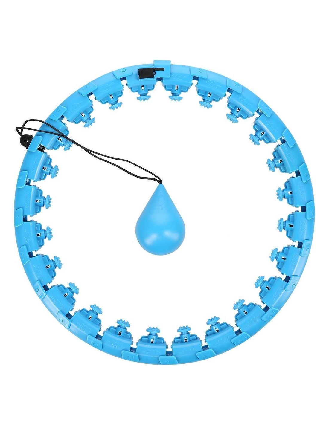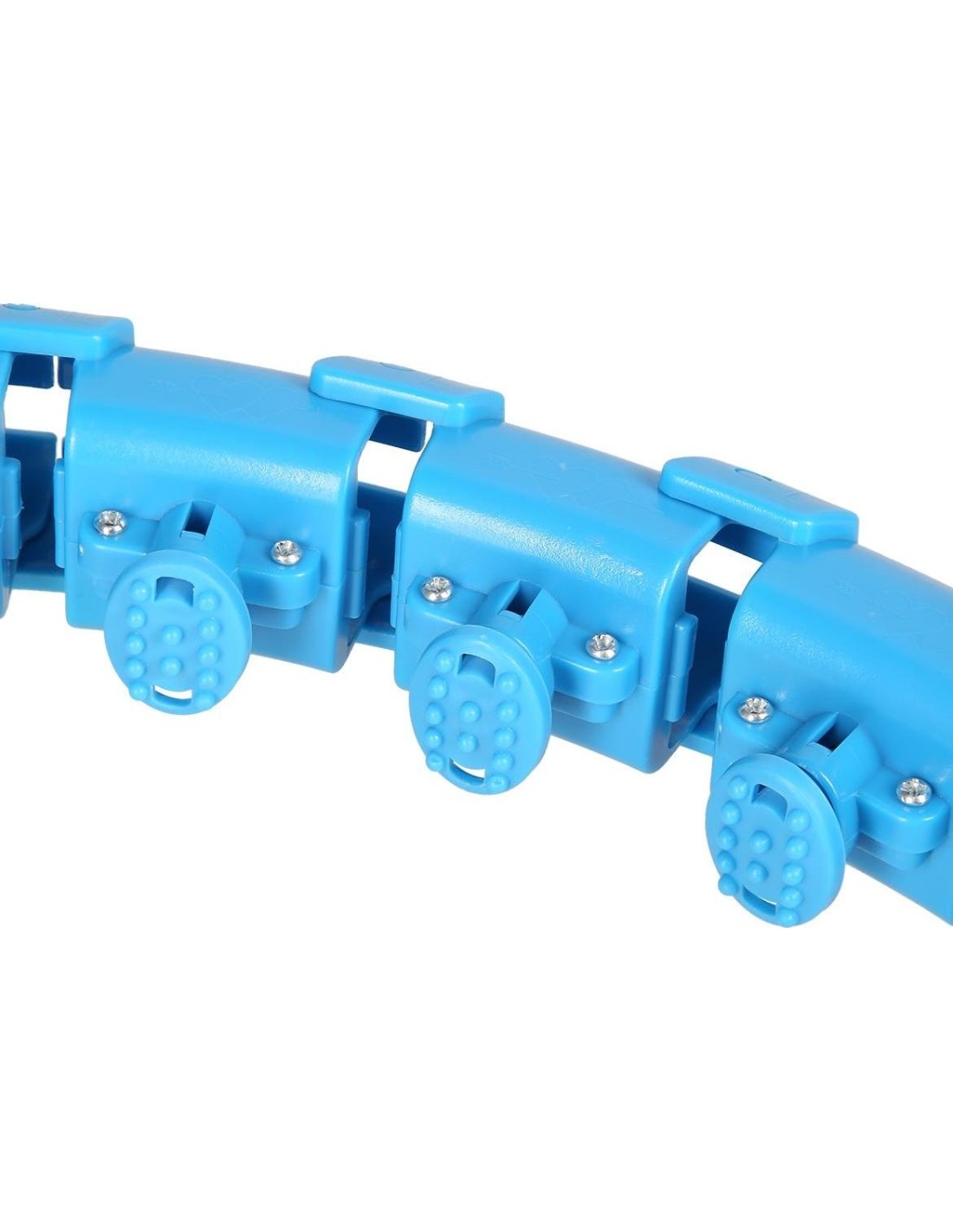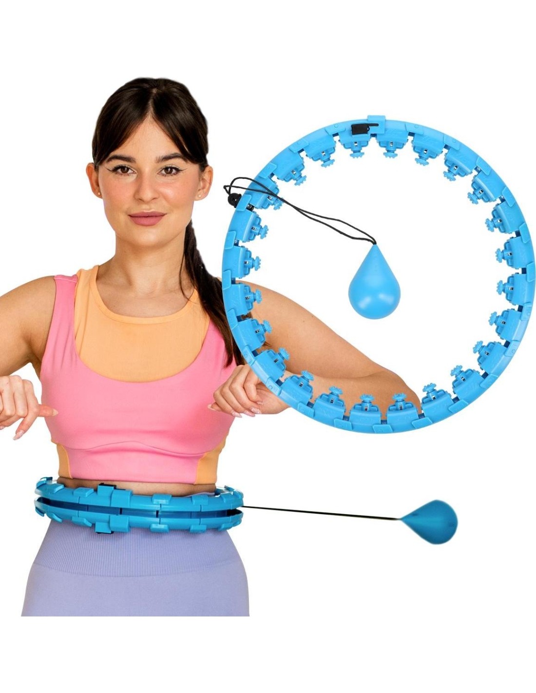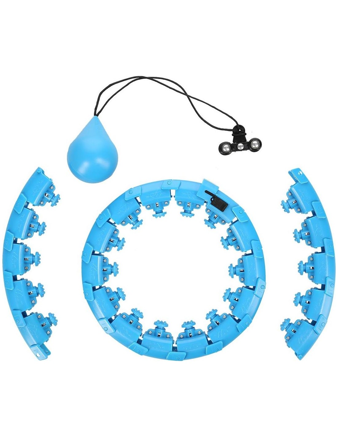fH01 HMS is a new quality hula-hoop on the market. A device with a 360-degree loop and massage simultaneously! Hence, cardio training shall be long and enjoyable, and this ensures even faster and better results! The device is addressed to both children and adults. How does the FH01 work? The way the FH01 works is very simple and intuitive. It is a closed loop that has a rail with an attached load. As you make circular movements with your hips the centrifugal force begins to act; it moves the load around the circle making the abdominal muscles and torso tensed. Note: the clamp should be tightly closed before use. Workout and massage in one: By performing the 360-degree movement springs in the heads situated around the perimeter of the loop perfectly cushion the loads and adapt to the body, which causes an additional massage effect providing the body with a pleasant feeling. Wide range of adjustment of the device: FH01 comprises 24 elements totally. The size can be set from 14 to 24 elements, that is, waist circumference from 50cm to 104cm. Belt adjustment with load : Another advantage is the ability to change the length of the load belt. It ranges from 14cm to 30cm. The longer the belt is, the greater the centrifugal force during a workout and hence, greater weight and higher difficulty of rotations. Comfort of use: The device has a structure made of high-quality PVC. The rail is set on ball bearings made of the stainless steel. All of these together make the rotation flexible and uninterrupted which further enhances the satisfaction during a workout. In addition, the load is covered with a soft rubber increasing safety for a user and others. Easy installation: The loop is opened with magnet clips. Then, in order to connect the subsequent elements you need to slide one element into the other so that the tabs go into the corresponding holes. When reducing the elements, grab an element with one hand and squeeze in such a way as to slide the tabs out of the holes. Then insert the rail with the load into the loop, close the clips on the magnet, adjust the length of the belt and that's it. Convenient transportation: Due to the ability to easily disassemble all components the device easily fits into a backpack or a gym bag. Benefits of training with hula-hoop : First of all, training with FH01 will slim the abdomen and slenderize the waist. It will also contribute to reduction of the fat from around the thighs and glutes. In addition, it will strengthen the shoulder girdle and arms. Another advantage, due to strengthening the abdominal muscles and the trunk is clear improvement in the posture of a user. Just half an hour of continuous training with FH01 is equivalent to one hour of swimming and three hours of running! Specification: Material: PVC Color: blue Circuit adjustment: 14 - 24 elements (diameter 26cm - 45cm) Waist: 50cm - 104cm Weight of the load: 320g. Belt adjustment with load: 14cm - 30cm Convenient clip fastening Ball bearings, stainless steel Remarks: Not intended for commercial use Guarantee 24 months