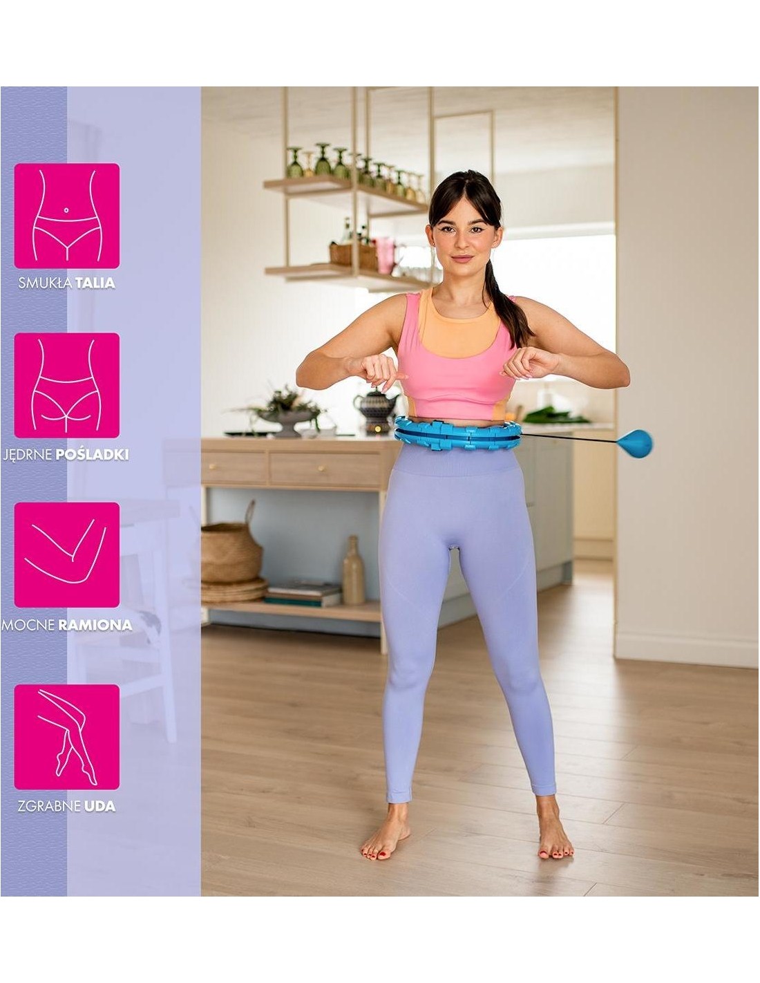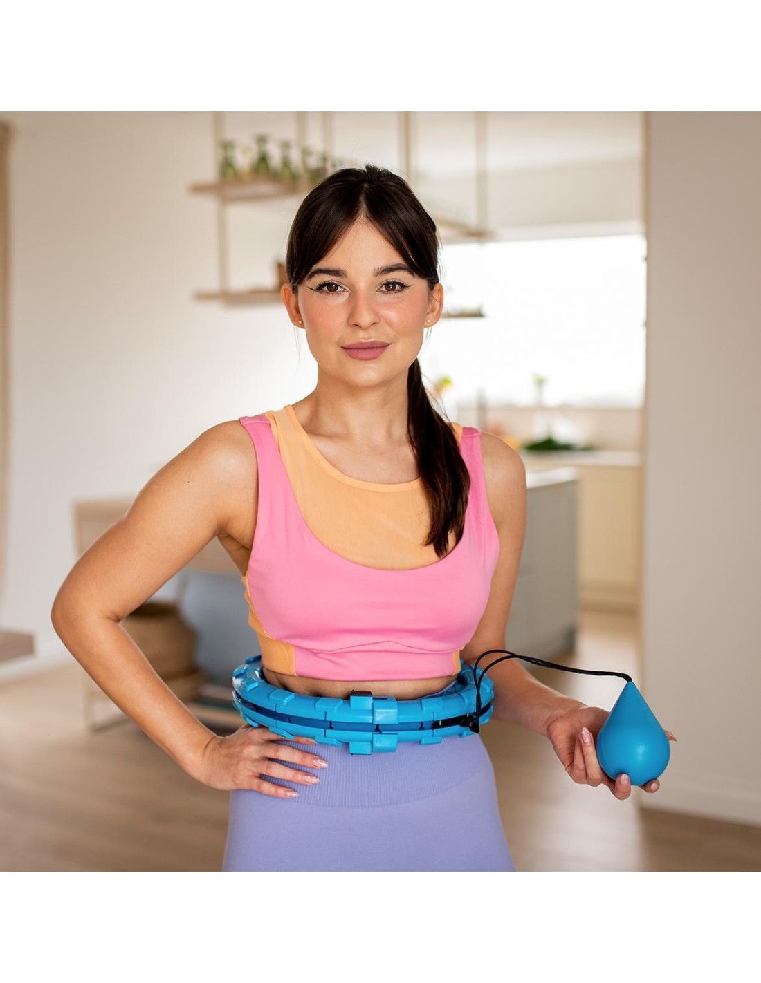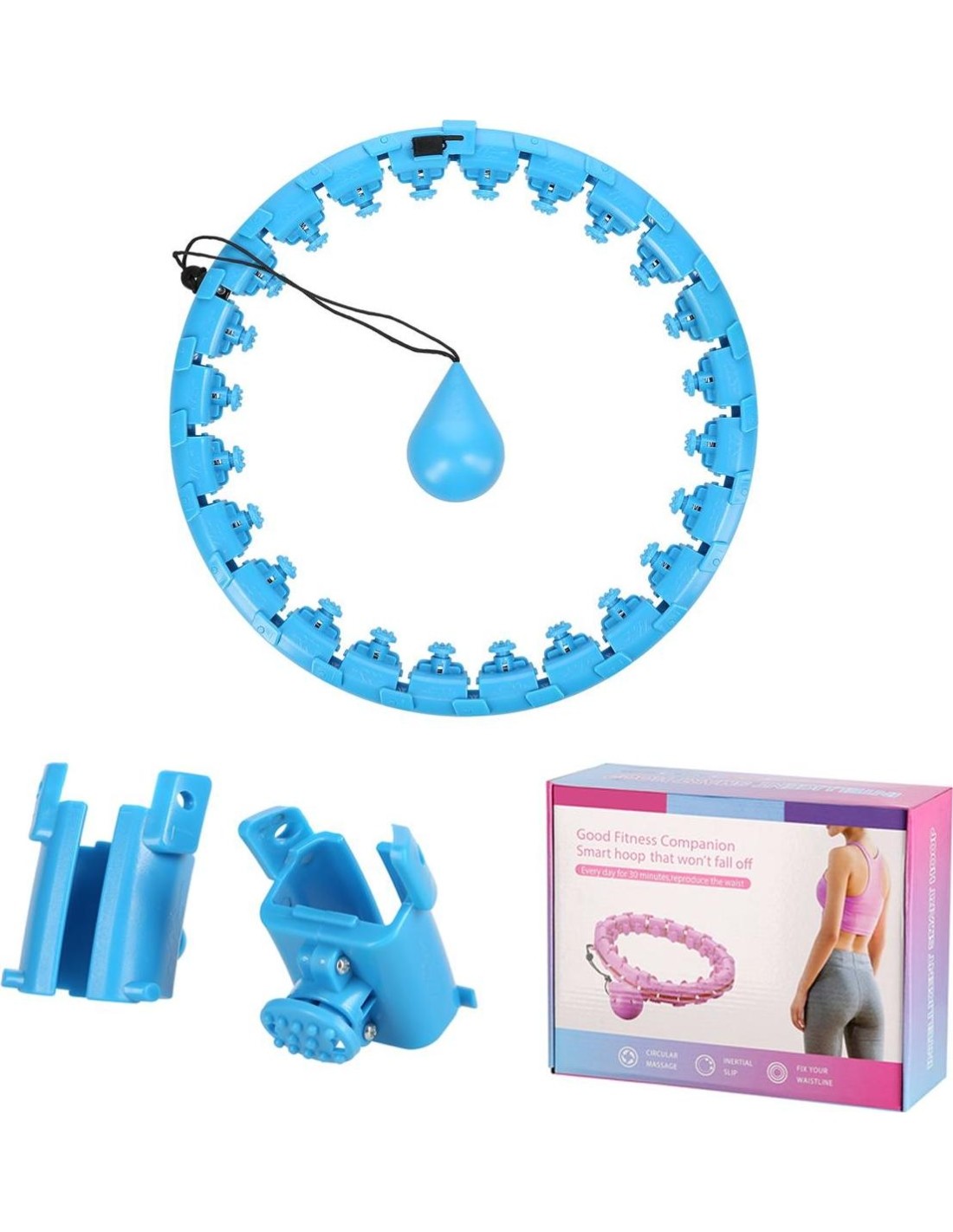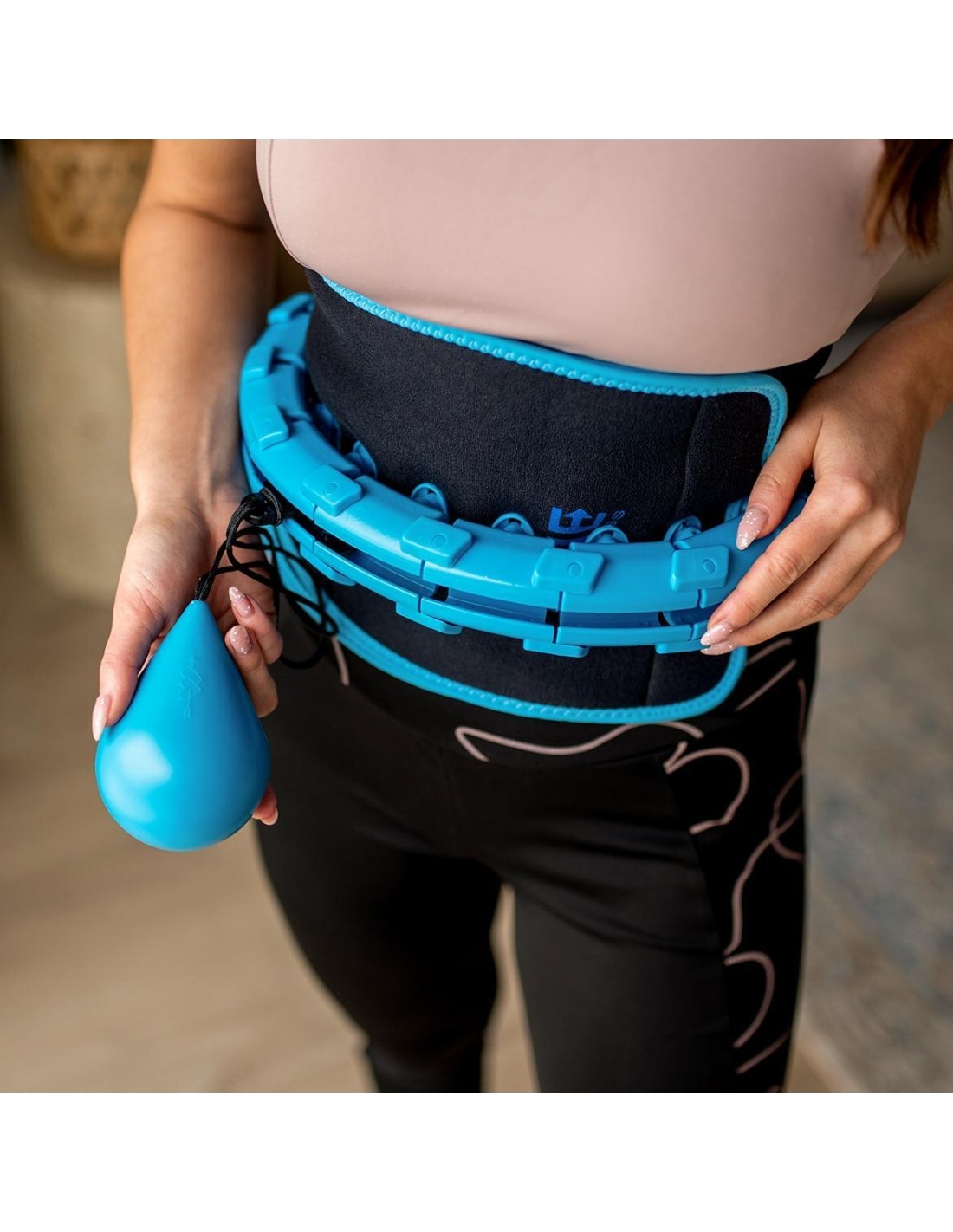 fH01 HMS is a new quality hula-hoop on the market. A device with a 360-degree loop and massage simultaneously! Hence, cardio training shall be long and enjoyable, and this ensures even faster and better results! The device is addressed to both children and adults. How does the FH01 work? The way the FH01 works is very simple and intuitive. It is a closed loop that has a rail with an attached load. As you make circular movements with your hips the centrifugal force begins to act; it moves the load around the circle making the abdominal muscles and torso tensed. Note: the clamp should be tightly closed before use. Workout and massage in one: By performing the 360-degree movement springs in the heads situated around the perimeter of the loop perfectly cushion the loads and adapt to the body, which causes an additional massage effect providing the body with a pleasant feeling. Wide range of adjustment of the device: FH01 comprises 24 elements totally. The size can be set from 14 to 24 elements, that is, waist circumference from 50cm to 104cm. Belt adjustment with load : Another advantage is the ability to change the length of the load belt. It ranges from 14cm to 30cm. The longer the belt is, the greater the centrifugal force during a workout and hence, greater weight and higher difficulty of rotations. Comfort of use: The device has a structure made of high-quality PVC. The rail is set on ball bearings made of the stainless steel. All of these together make the rotation flexible and uninterrupted which further enhances the satisfaction during a workout. In addition, the load is covered with a soft rubber increasing safety for a user and others. Easy installation: The loop is opened with magnet clips. Then, in order to connect the subsequent elements you need to slide one element into the other so that the tabs go into the corresponding holes. When reducing the elements, grab an element with one hand and squeeze in such a way as to slide the tabs out of the holes. Then insert the rail with the load into the loop, close the clips on the magnet, adjust the length of the belt and that's it. Convenient transportation: Due to the ability to easily disassemble all components the device easily fits into a backpack or a gym bag. Benefits of training with hula-hoop : First of all, training with FH01 will slim the abdomen and slenderize the waist. It will also contribute to reduction of the fat from around the thighs and glutes. In addition, it will strengthen the shoulder girdle and arms. Another advantage, due to strengthening the abdominal muscles and the trunk is clear improvement in the posture of a user. Just half an hour of continuous training with FH01 is equivalent to one hour of swimming and three hours of running! Specification: Material: PVC Color: blue Circuit adjustment: 14 - 24 elements (diameter 26cm - 45cm) Waist: 50cm - 104cm Weight of the load: 320g. Belt adjustment with load: 14cm - 30cm Convenient clip fastening Ball bearings, stainless steel Remarks: Not intended for commercial use Guarantee 24 months